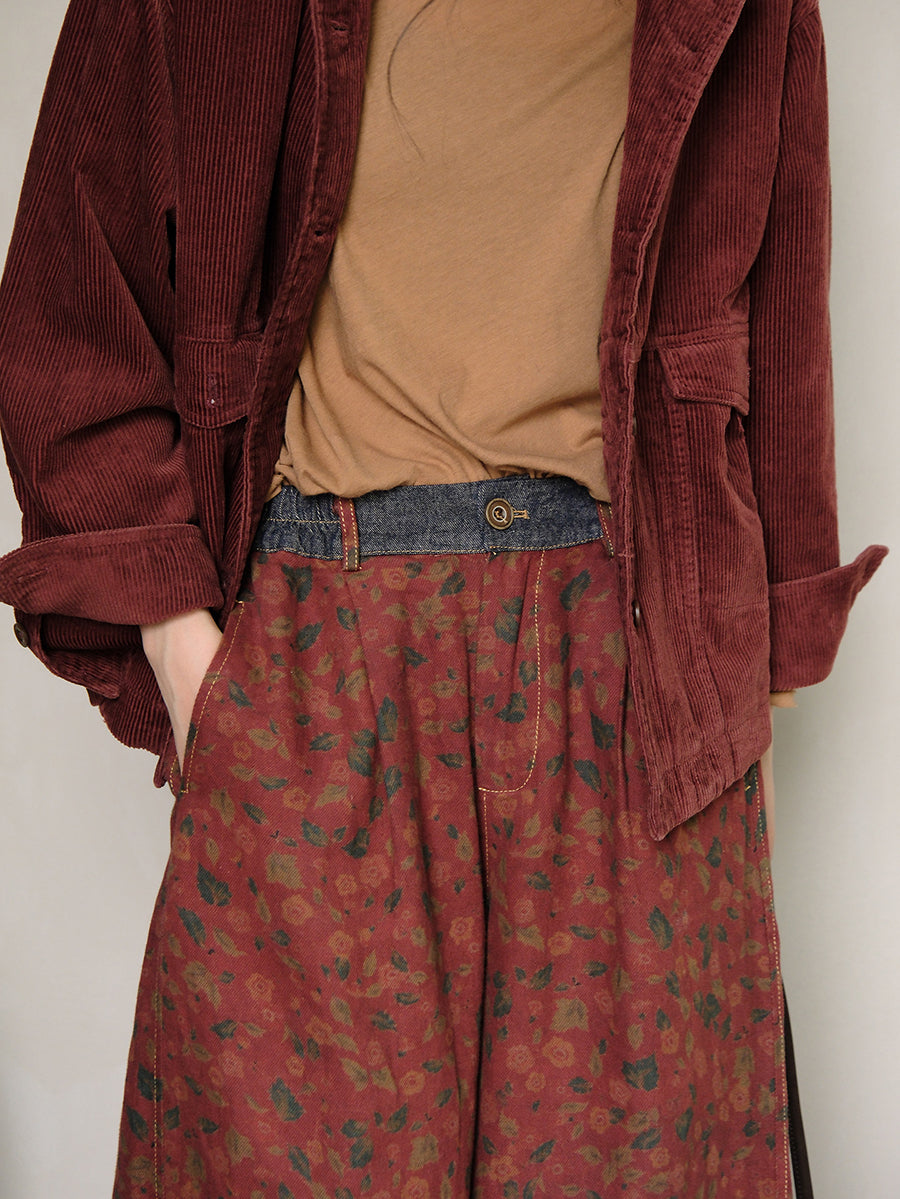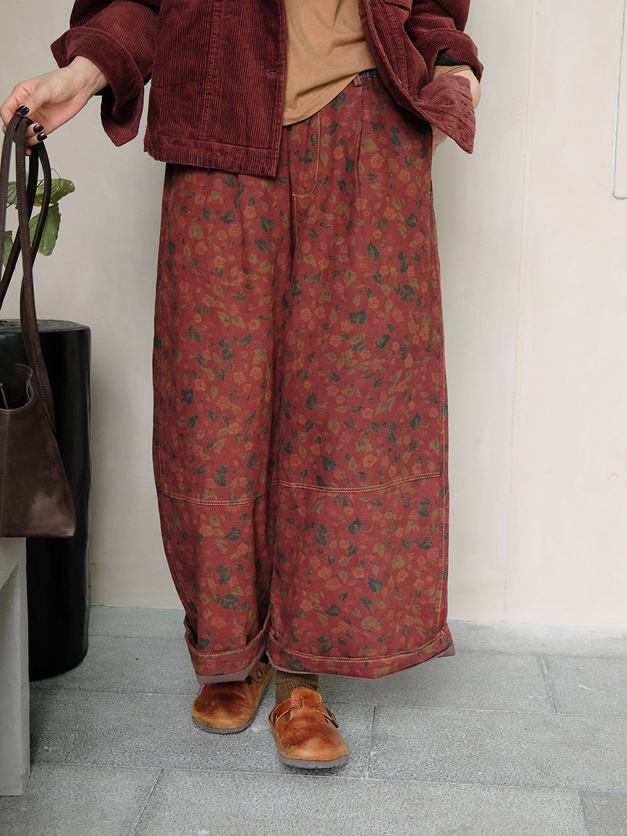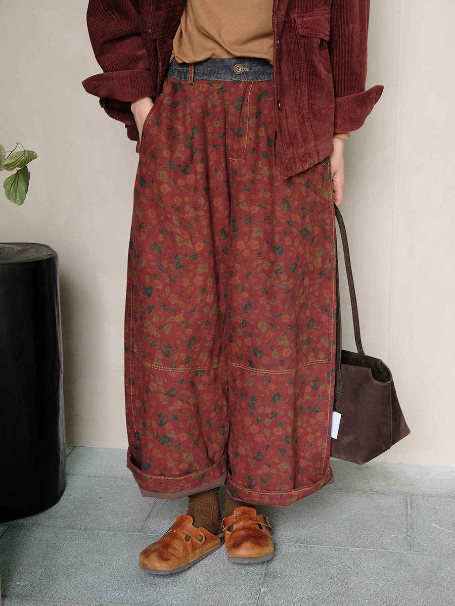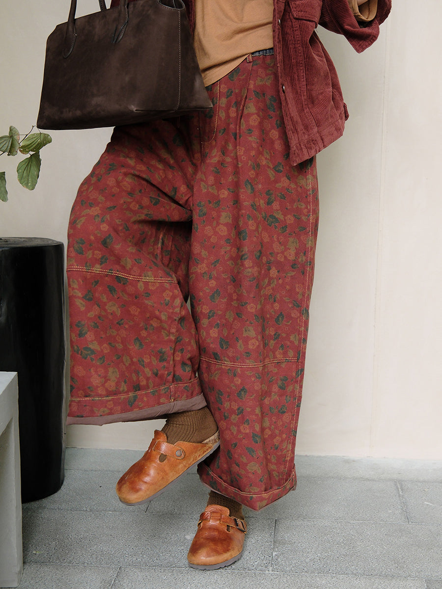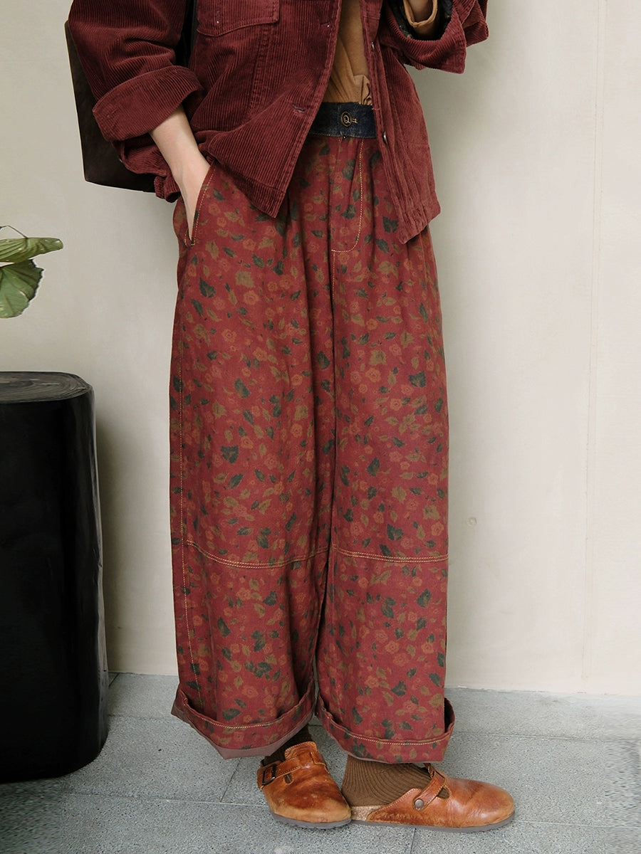 レディース 冬用 アーティスティックフローラルワイドレッグパンツ