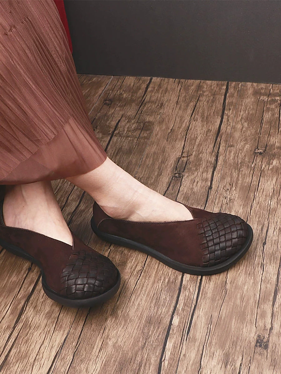 レディース 夏用 本革フラットシューズ