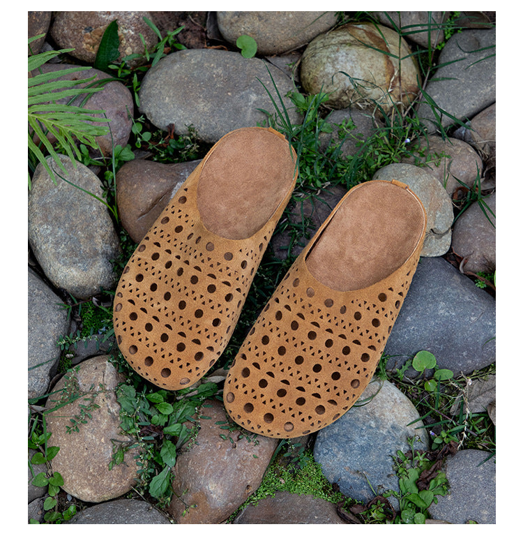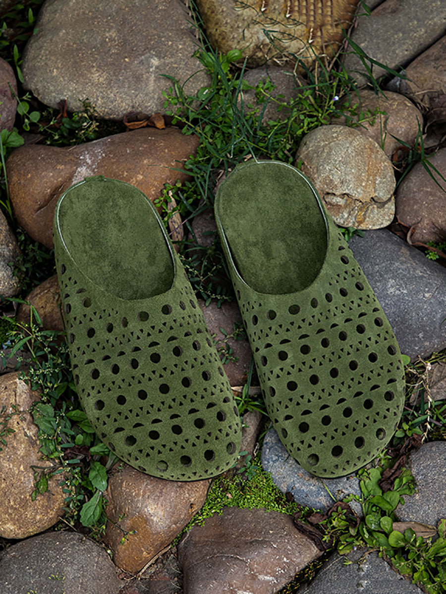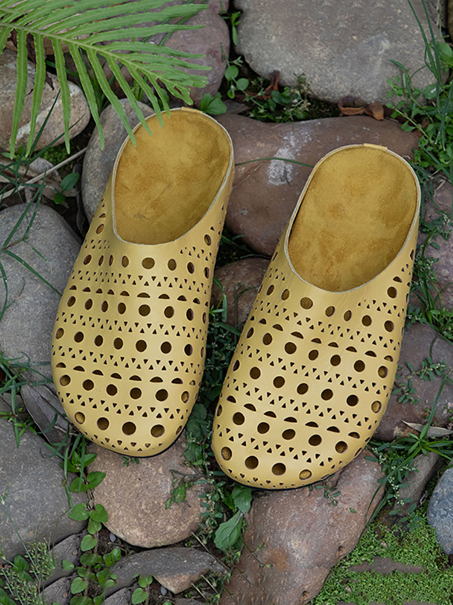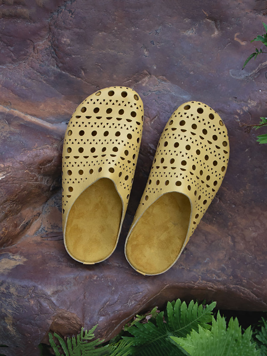 レディース 夏用 中空デザイン 本革スリッパ