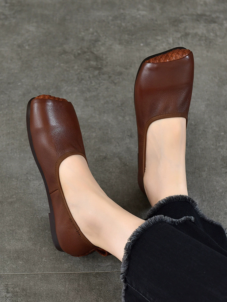 レディース 夏用 ヴィンテージ 本革 フラットシューズ