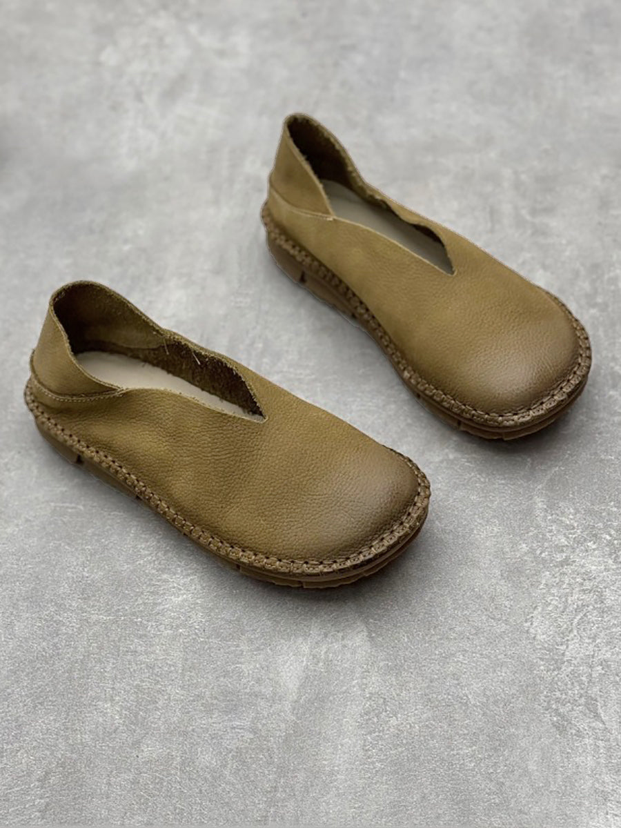 Women Summer Vintage Solid Leather Soft Flat Shoes