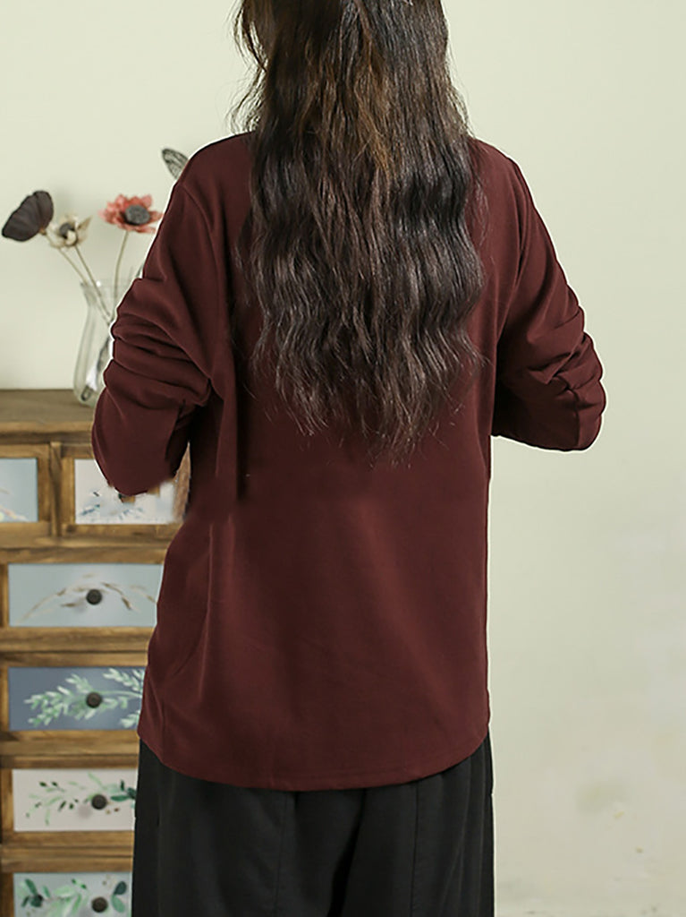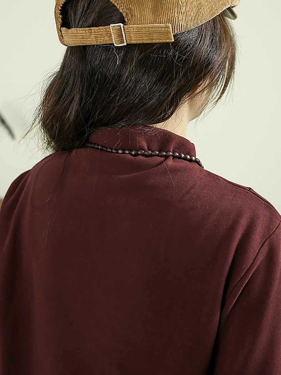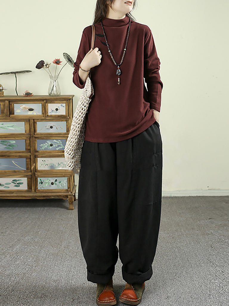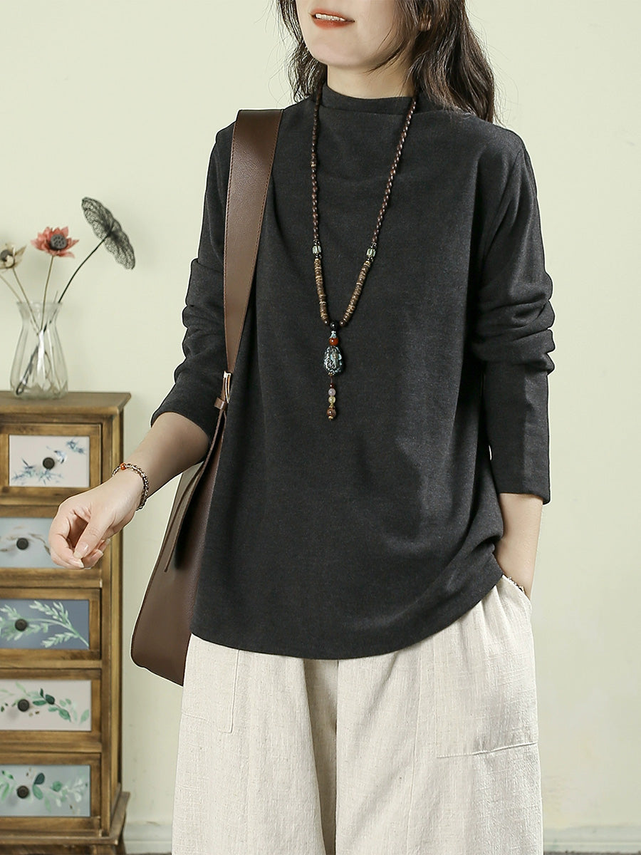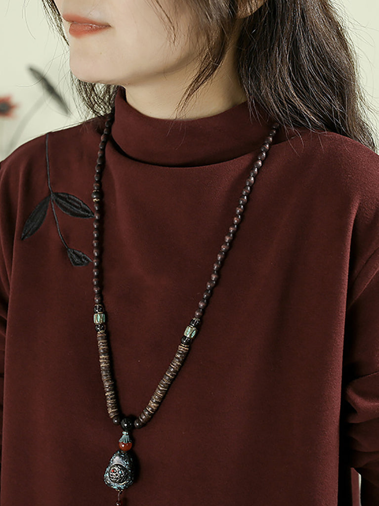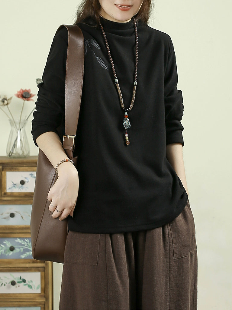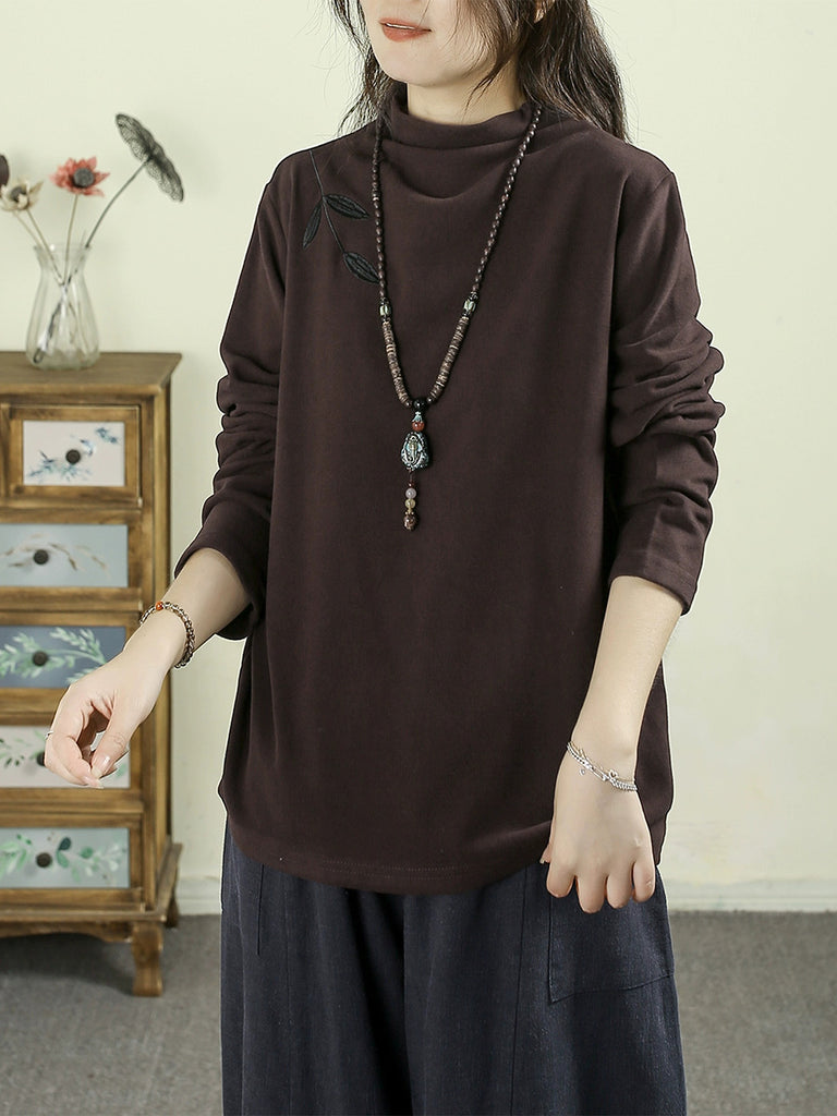 レディース 秋 カジュアル 刺繍 ハーフタートルネック ベース ブラウス
