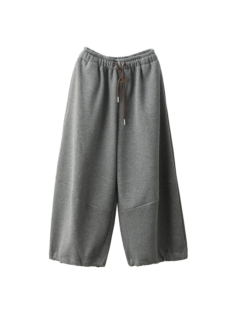 レディース 秋 カジュアル ピュアカラー 裏起毛 ワイドレッグパンツ