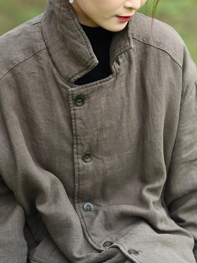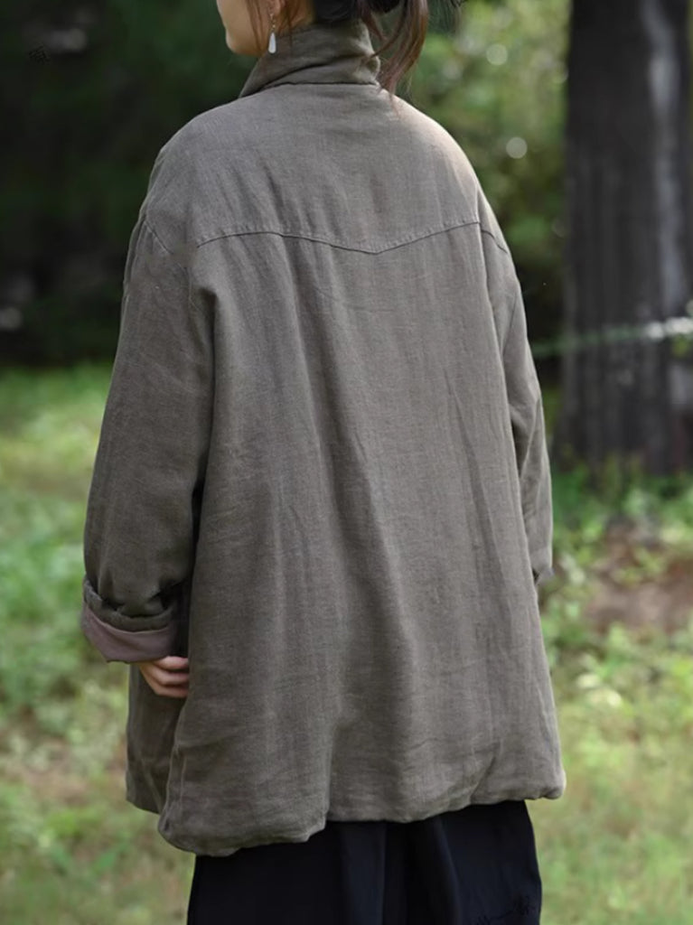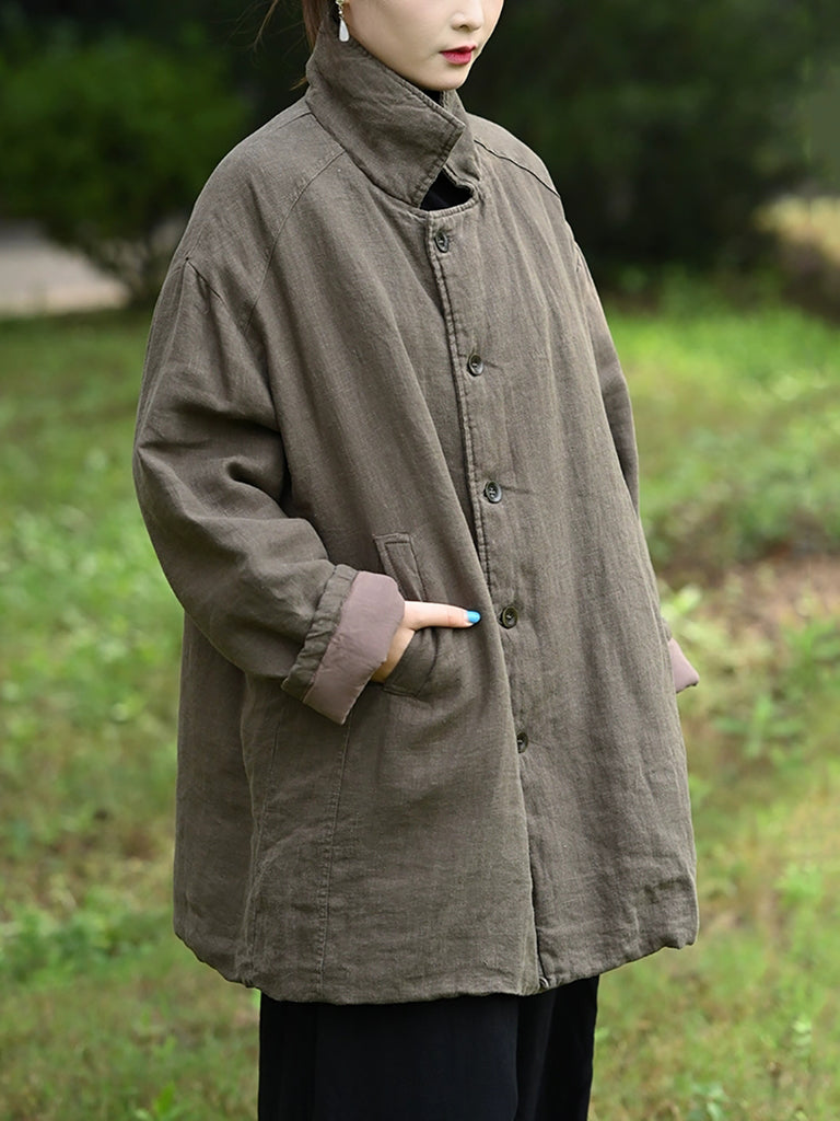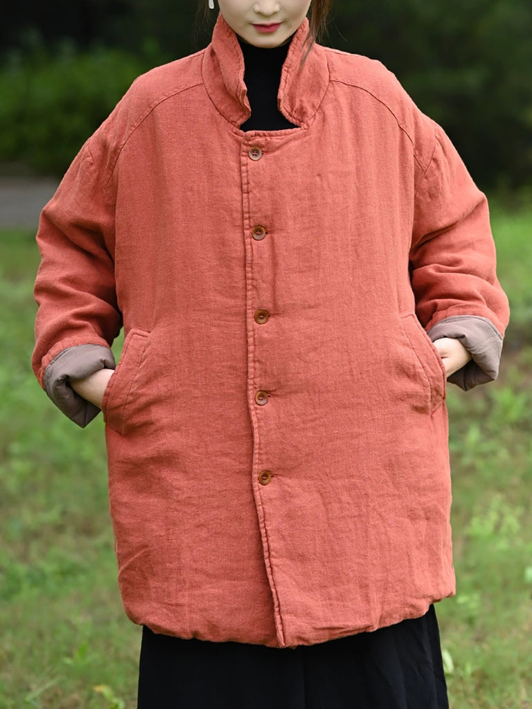 レディース 冬 レトロ ピュアカラー ターンダウンカラー パッド入りジャケット