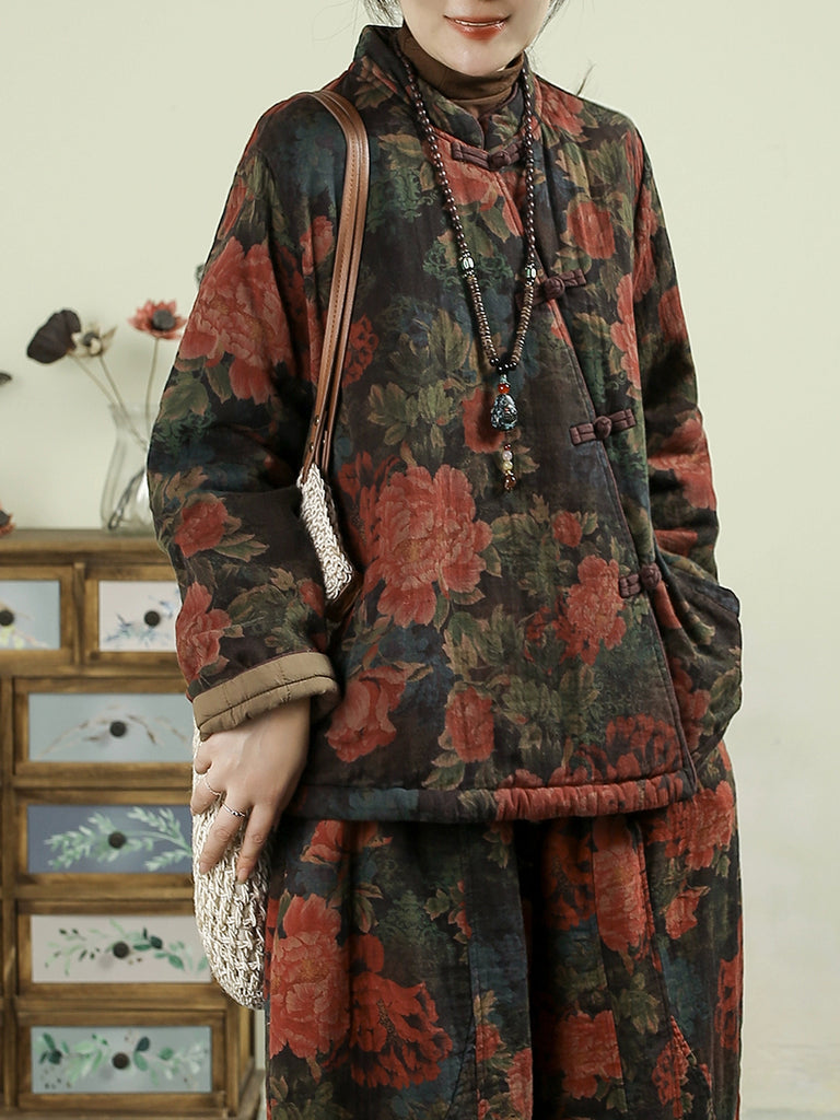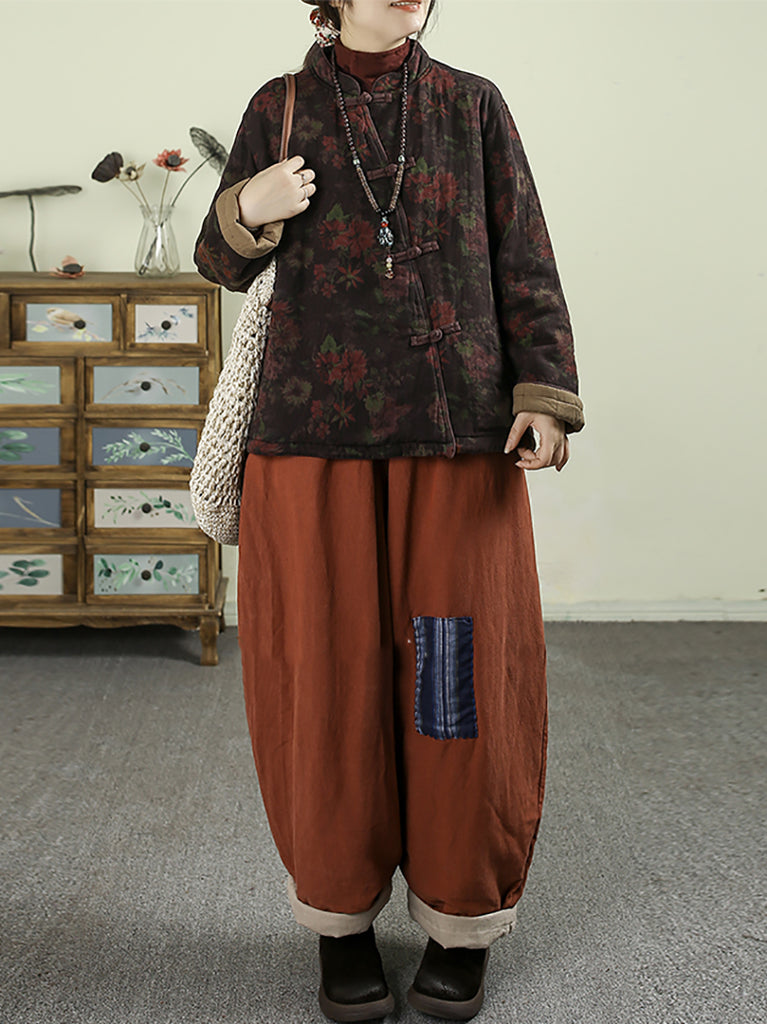 レディース エスニック 秋花柄 スタンドカラー コットンコート
