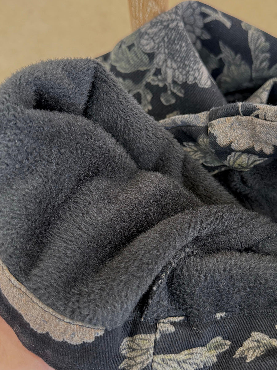 レディース 冬 レトロフラワー フリース裏地 ハーレムパンツ