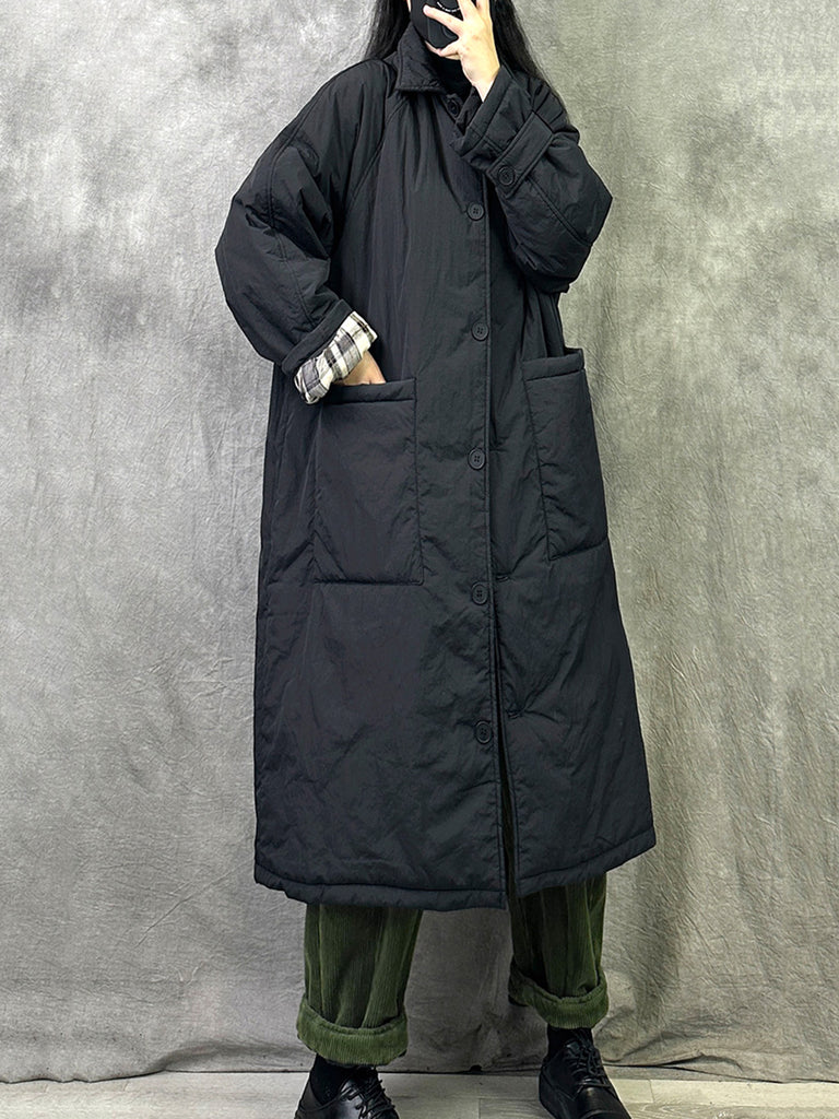 レディース 冬用 ピュアカラー ターンダウンカラー ロング丈 パッド入りコート