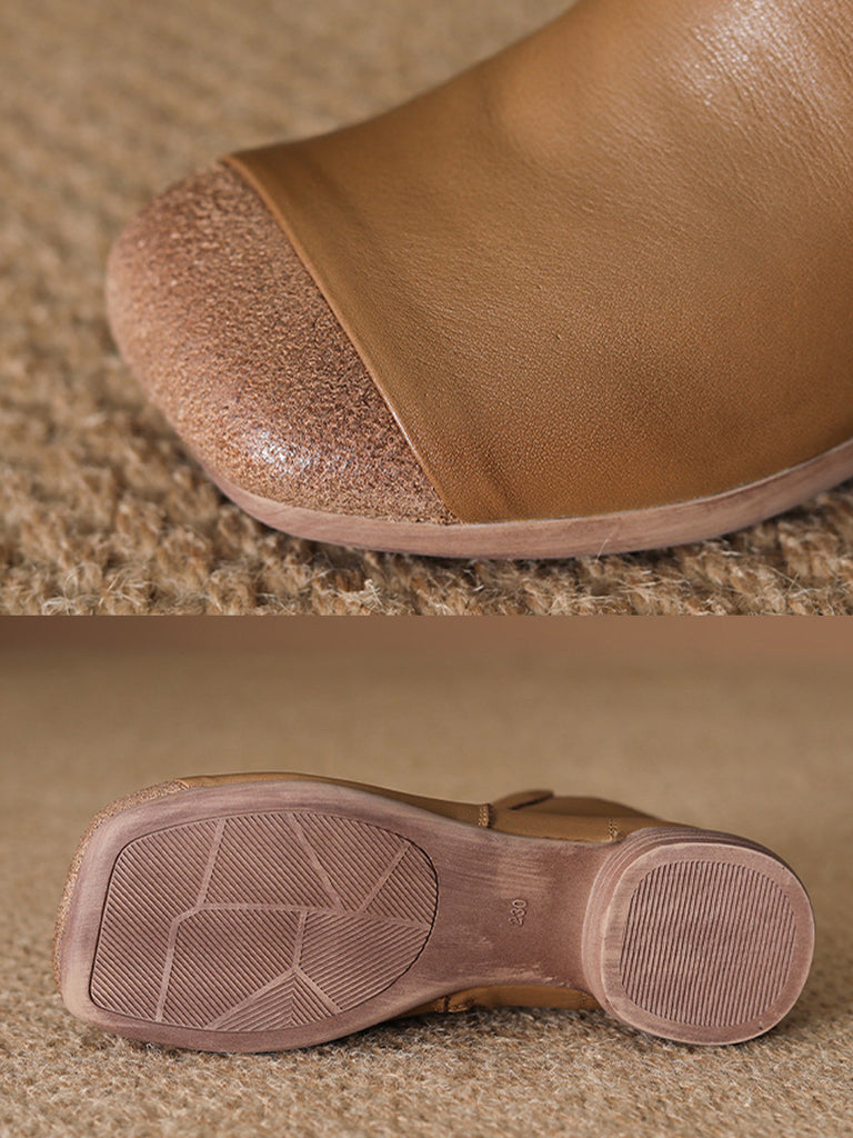 レディース ヴィンテージ 本革 ローヒール アンクルブーツ