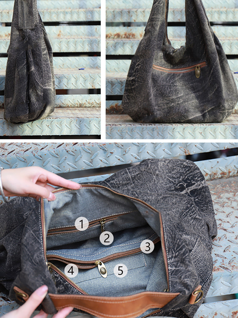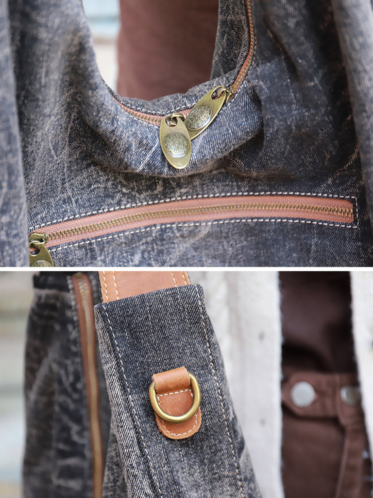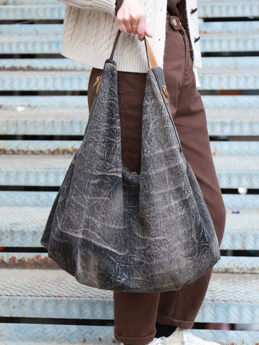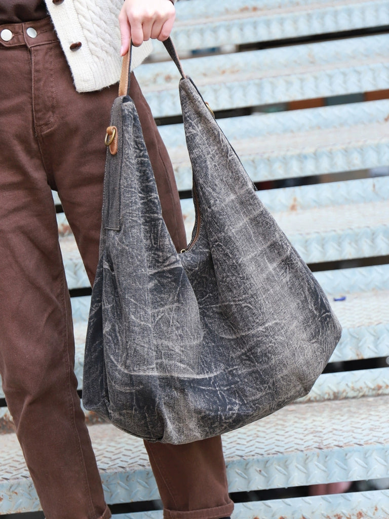 レディース ヴィンテージウォッシュドデニムショルダーバッグ