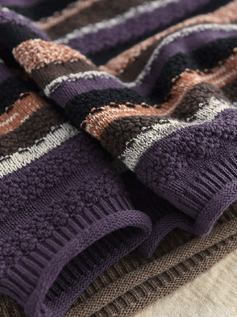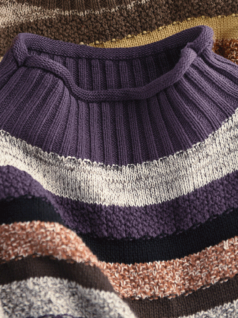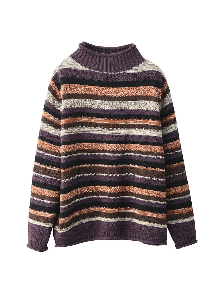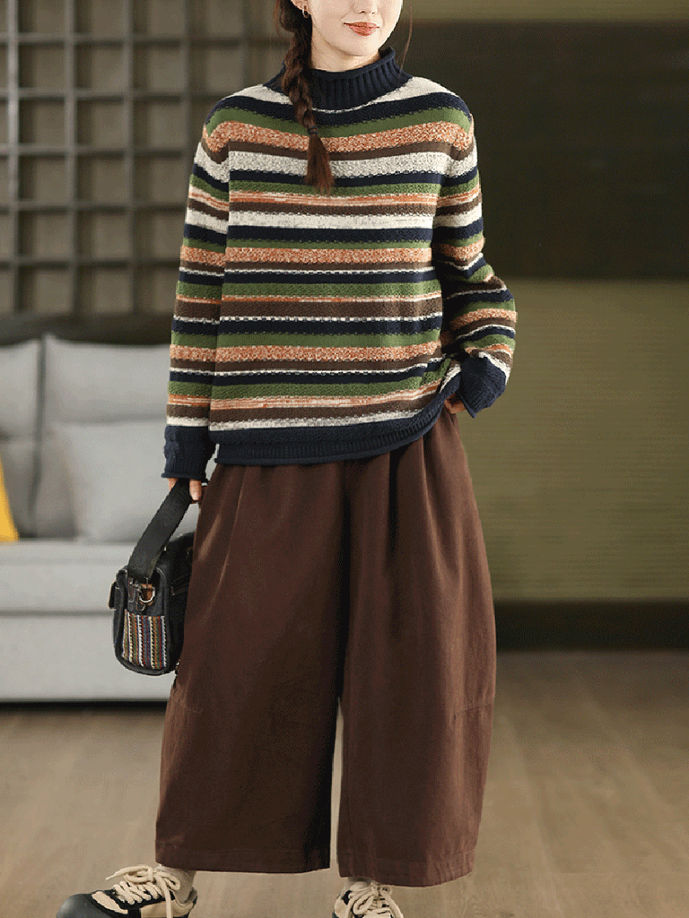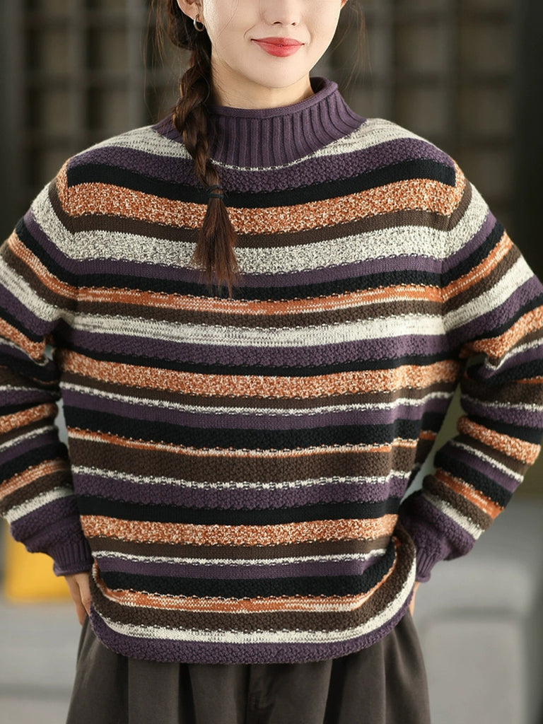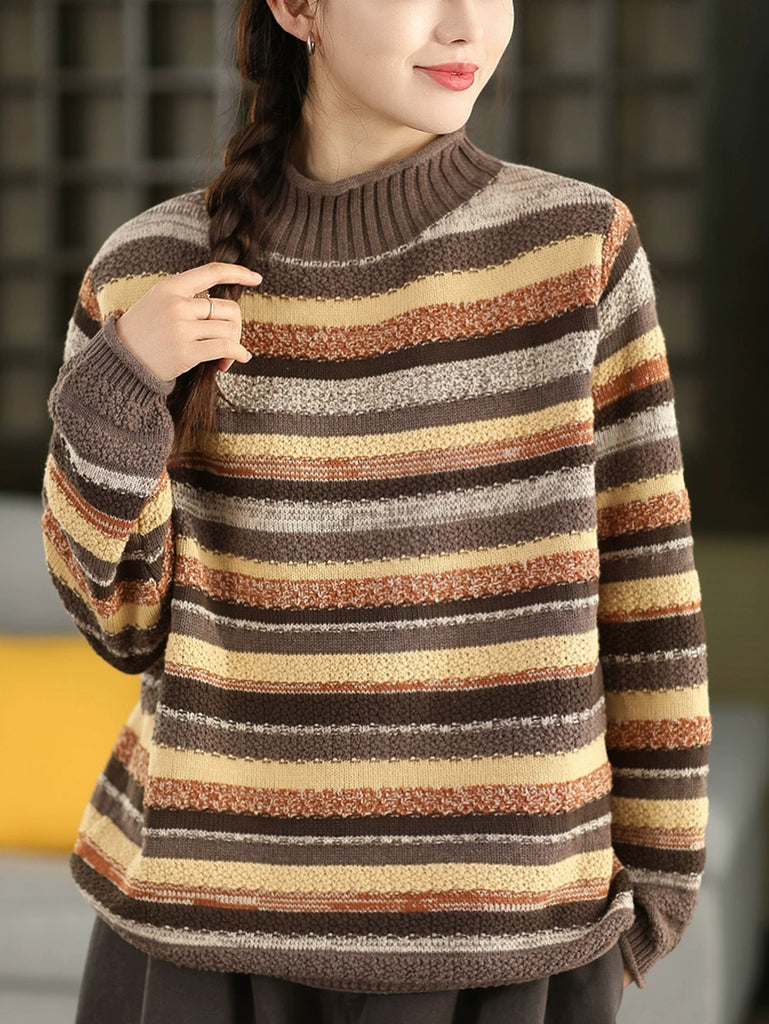 レディース ヴィンテージ 秋 ストライプ ハーフタートルネック セーター
