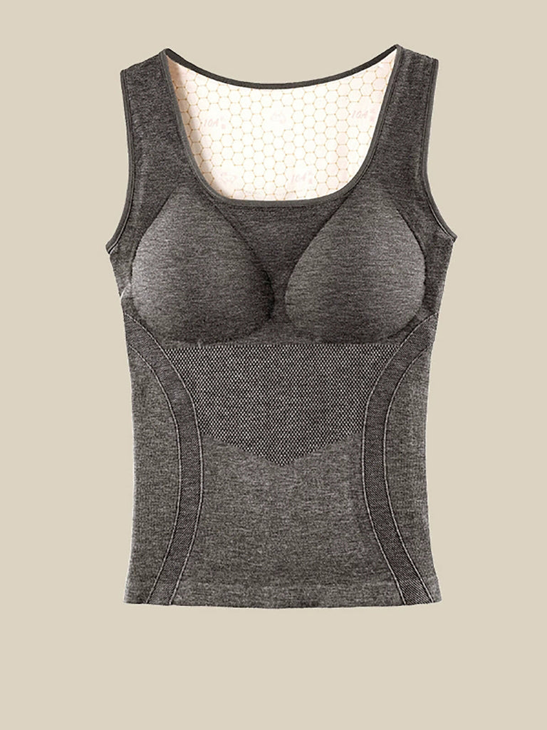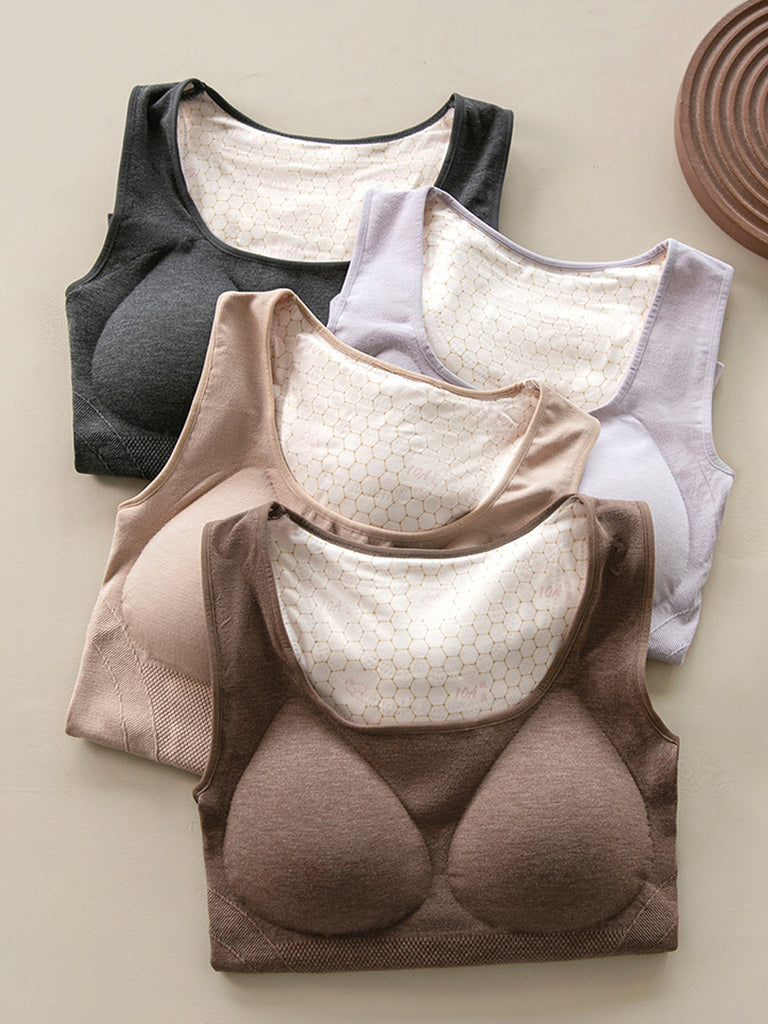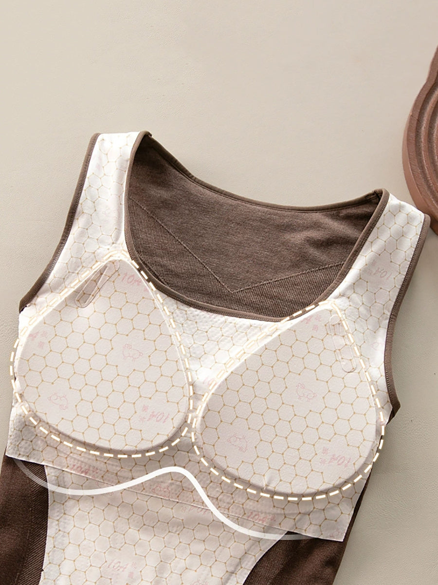 レディース 冬用 暖かい 純色 バーパッド付き ベースベスト