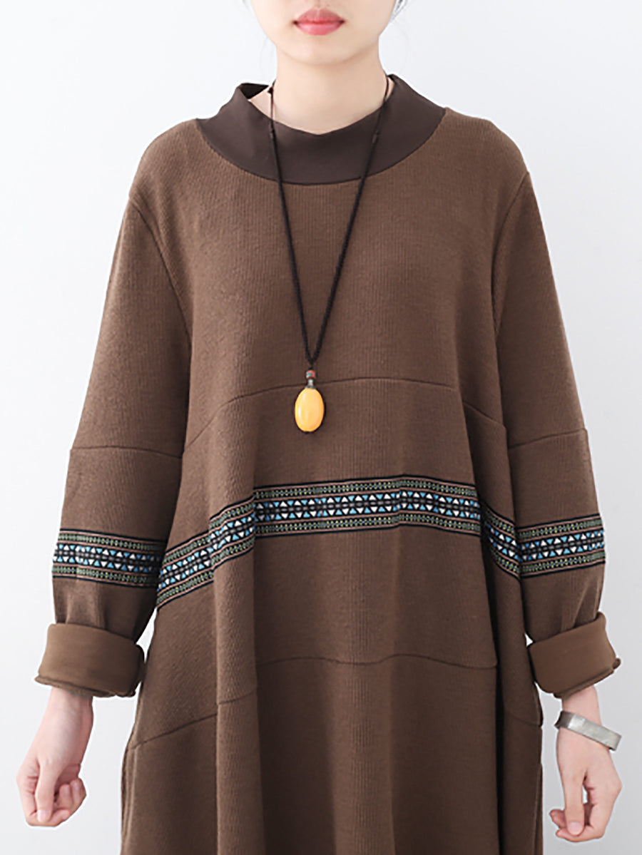 Women Casual Autumn Colorblock Half Turtleneck Spliced Dress
