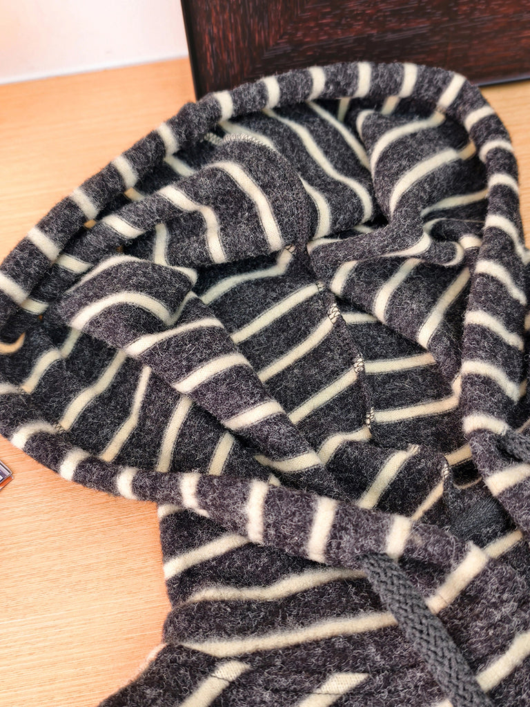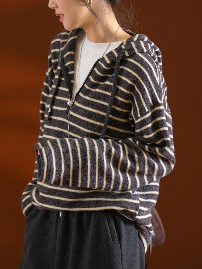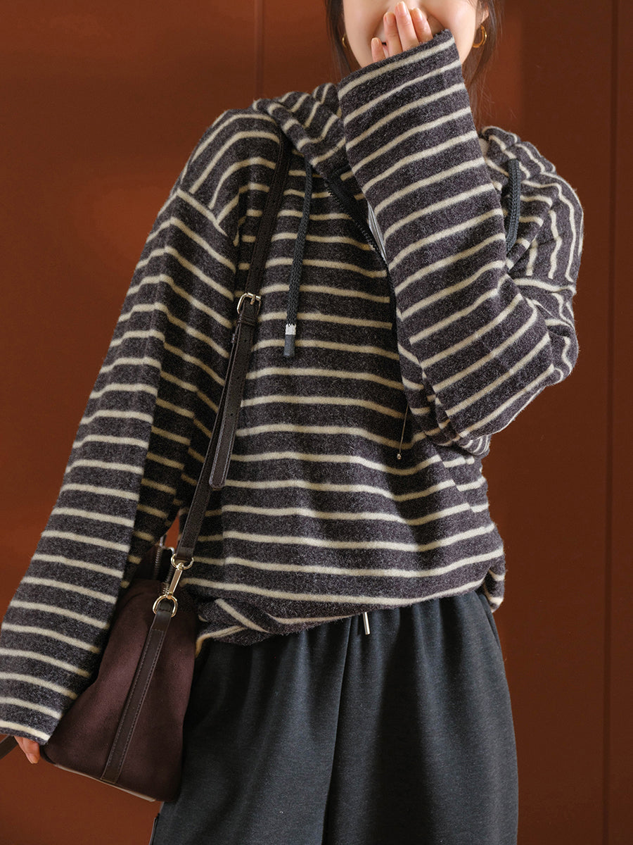 レディース 秋 ヴィンテージ ストライプ フード付きセーター