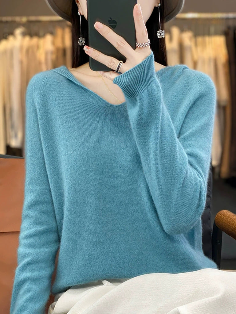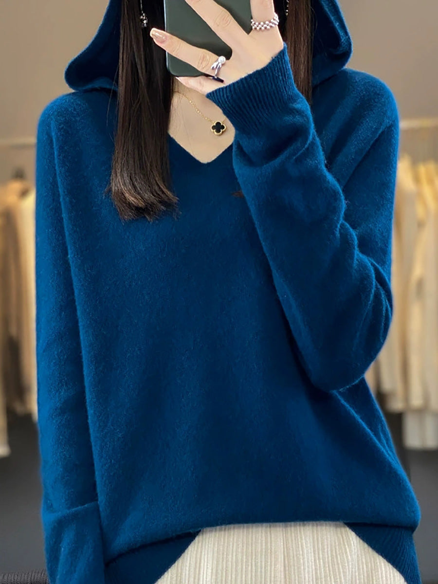 レディース 秋 カジュアル 純色 ニット フード付き セーター