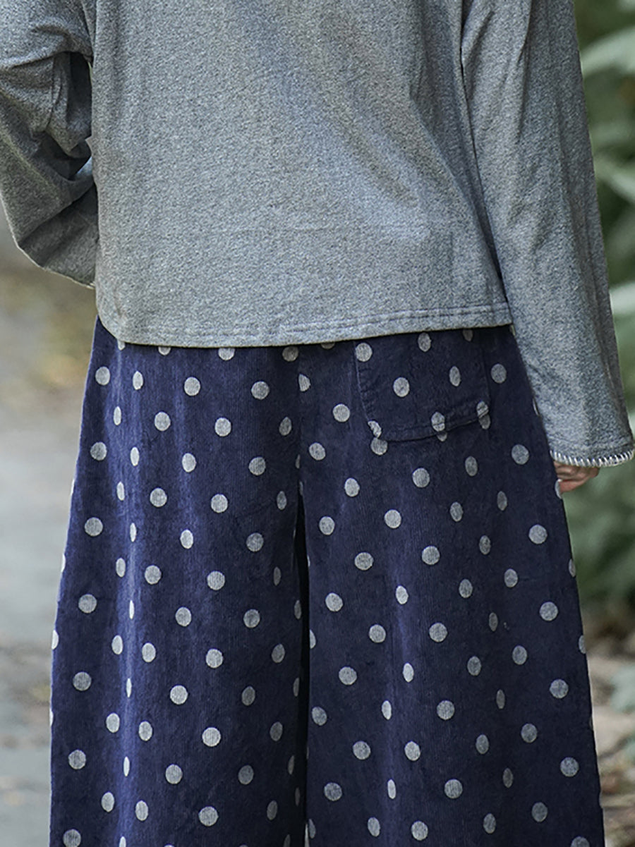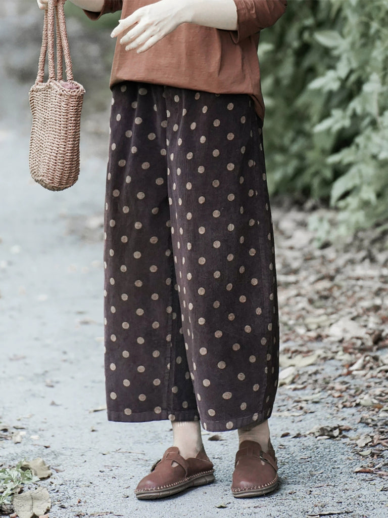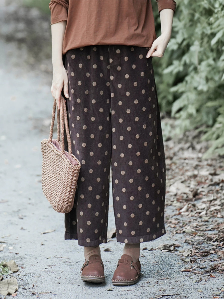 レディース 冬 レトロ ドット ワイドレッグ コットンパンツ