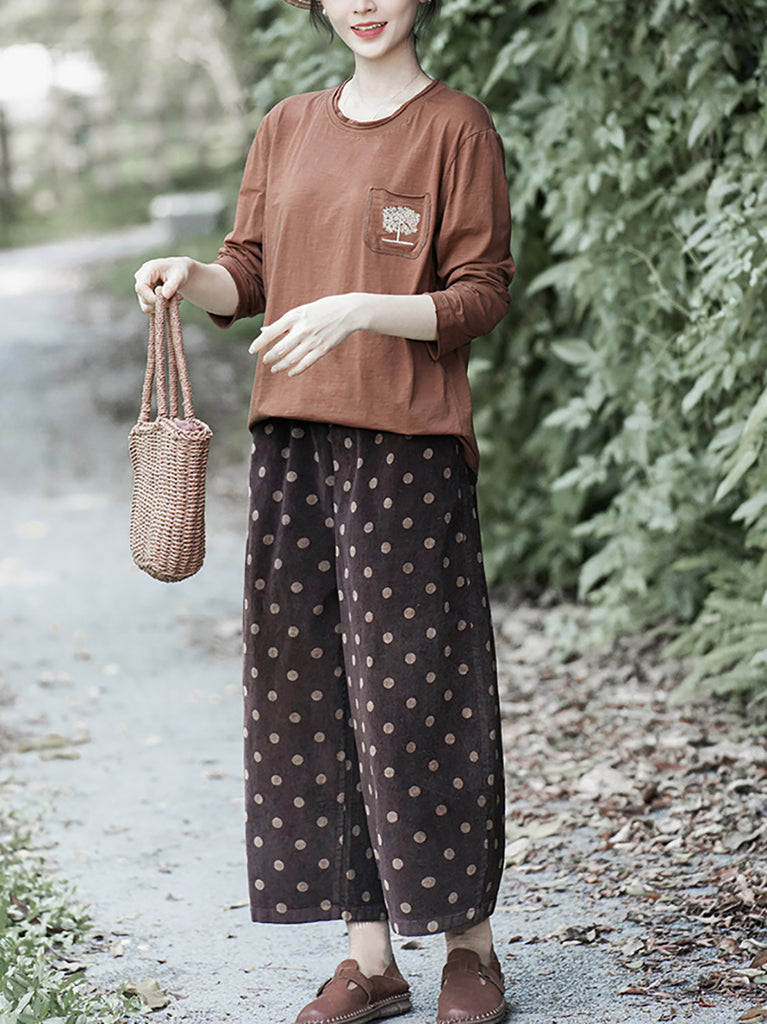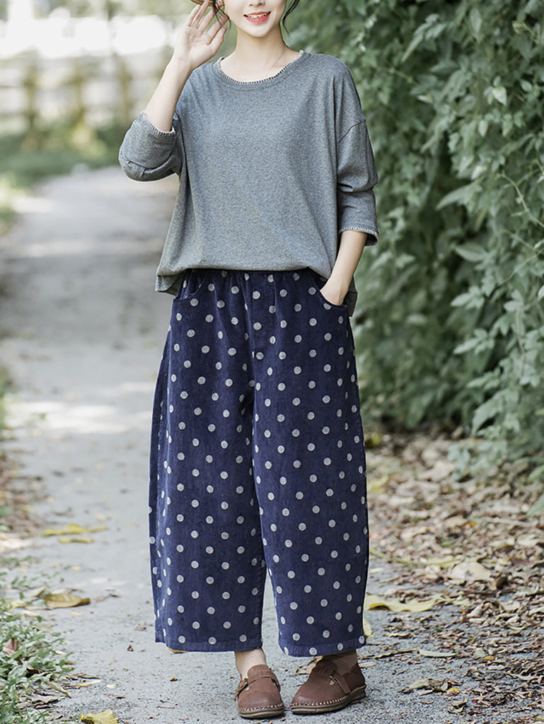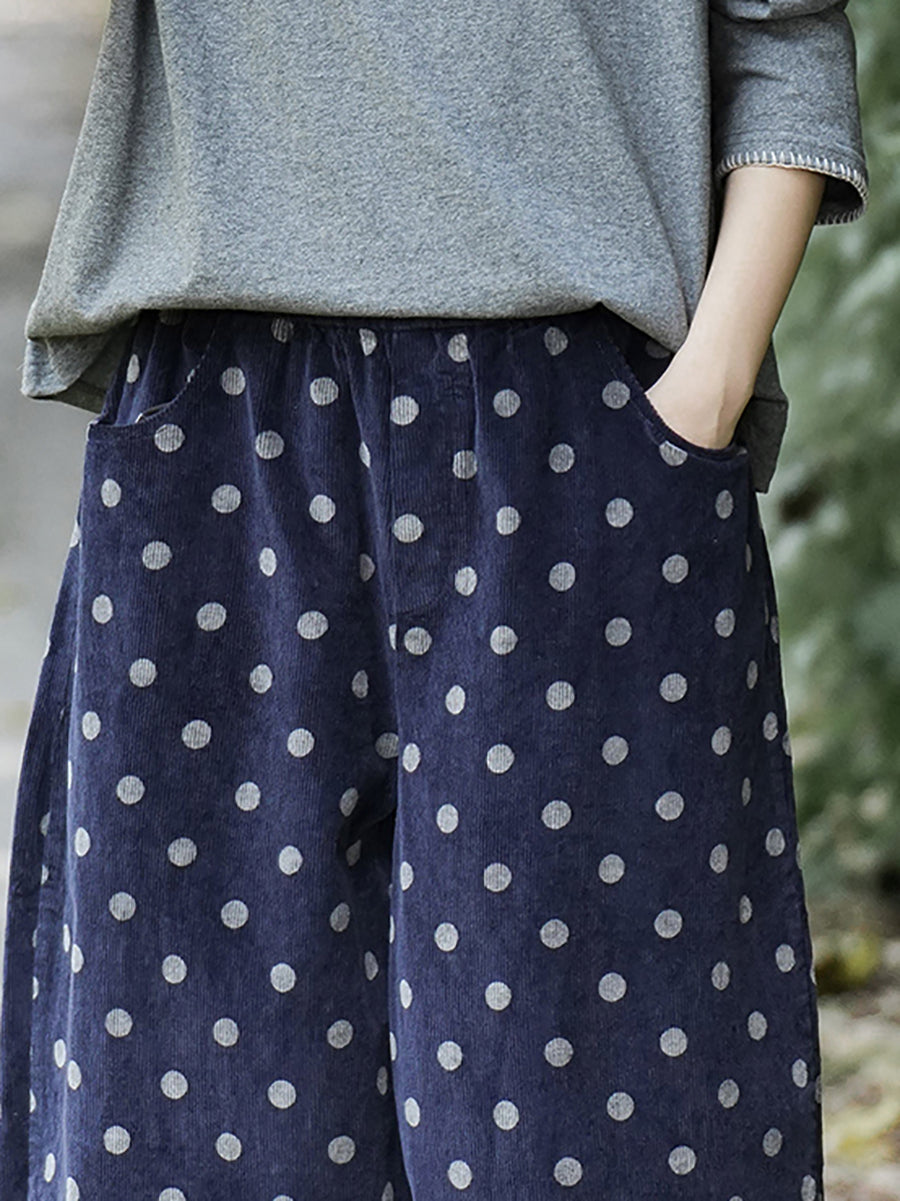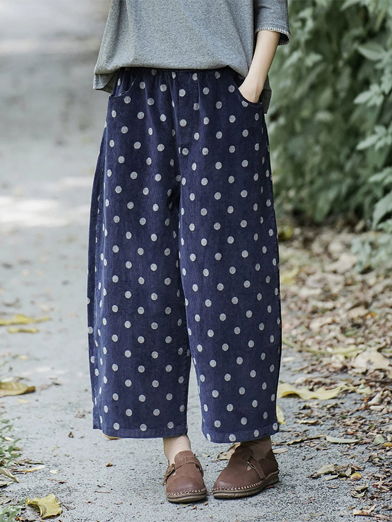 レディース 冬 レトロ ドット ワイドレッグ コットンパンツ