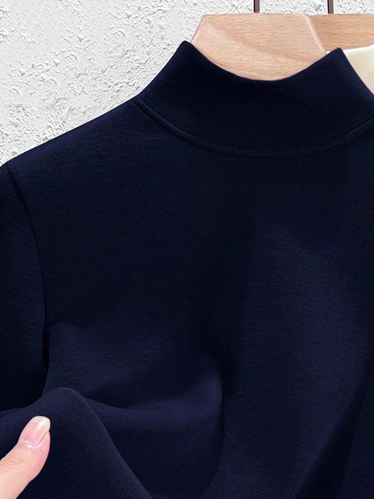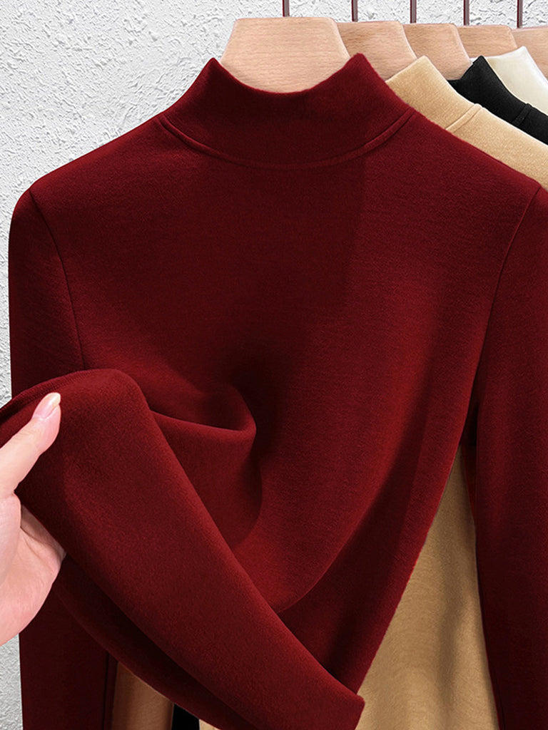 レディース 秋 カジュアル フリース裏地 ハーフタートルネック ベースブラウス