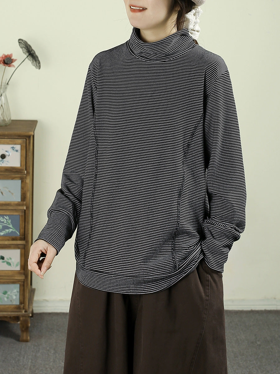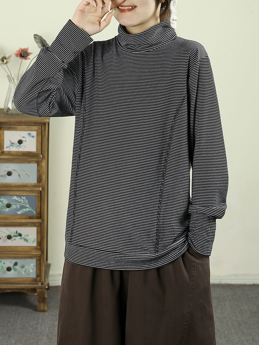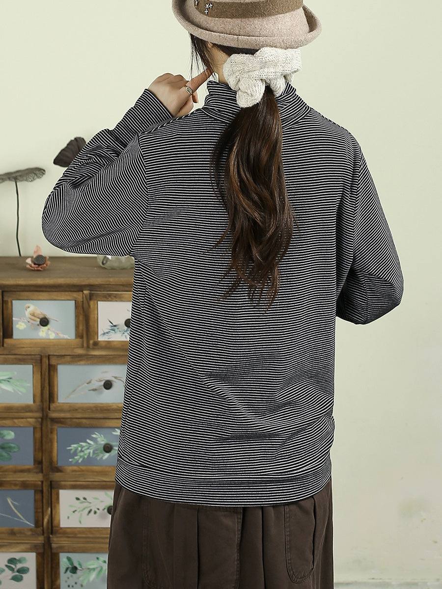 レディース 冬 ヴィンテージ ストライプ タートルネック ブラウス