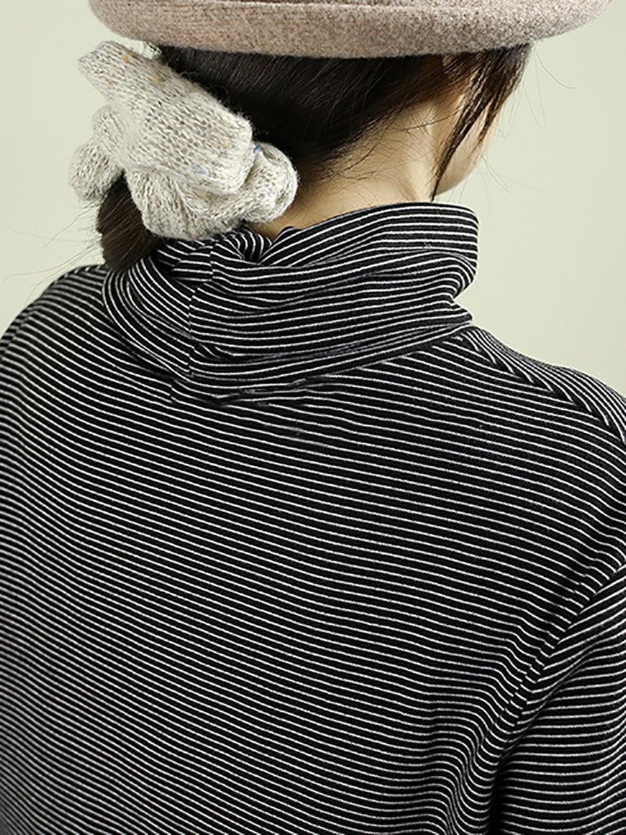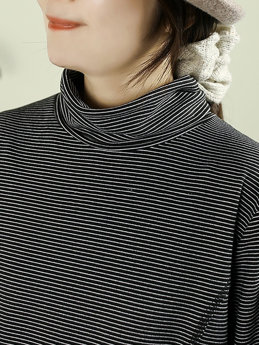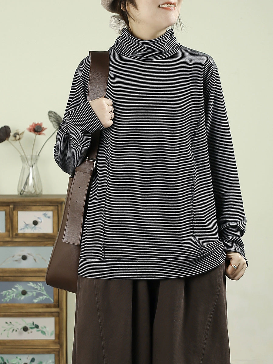 レディース 冬 ヴィンテージ ストライプ タートルネック ブラウス