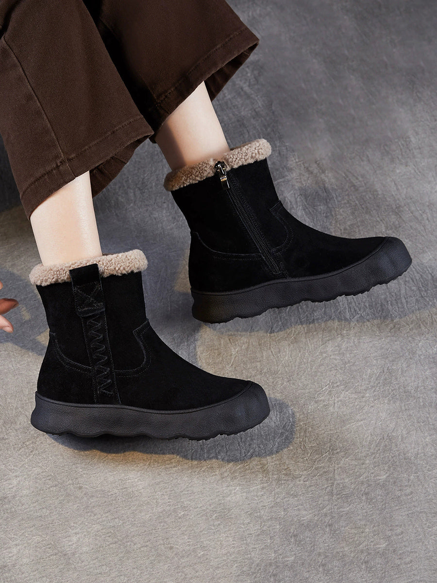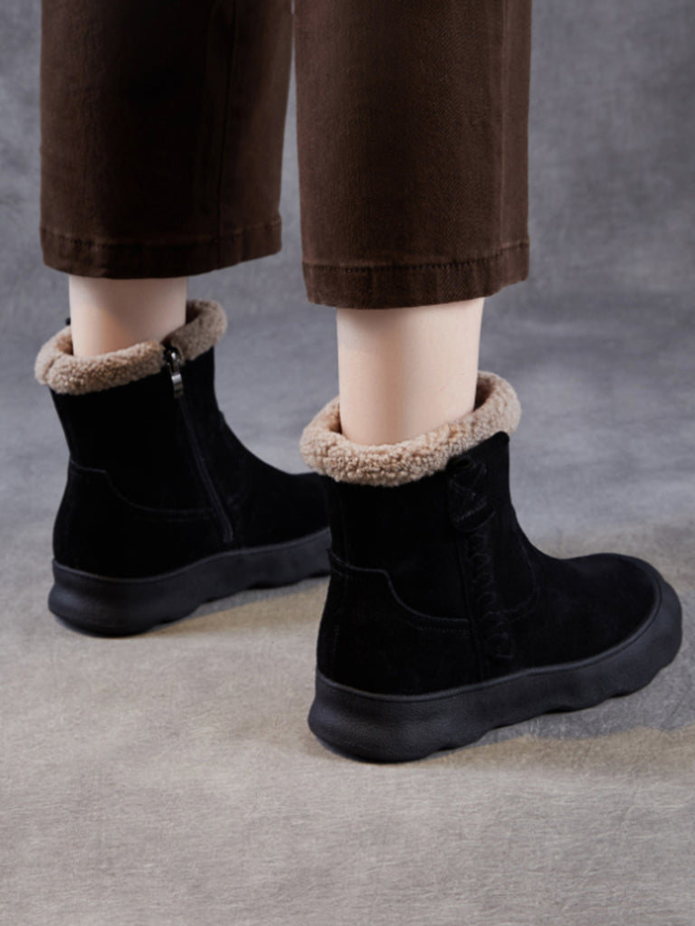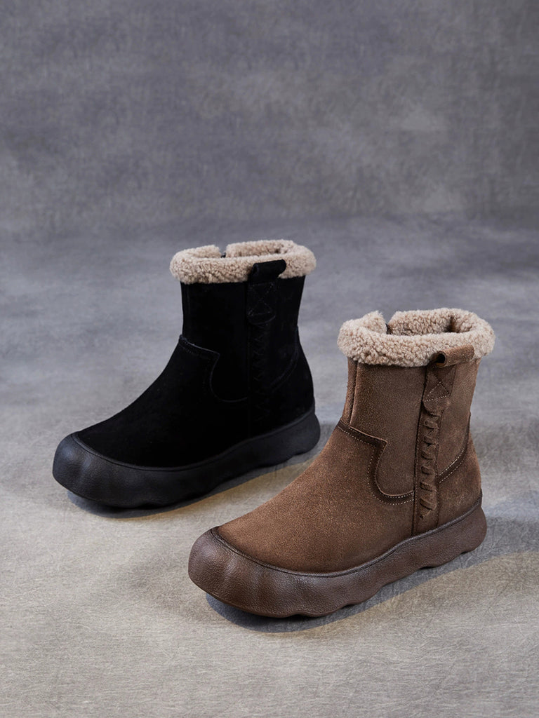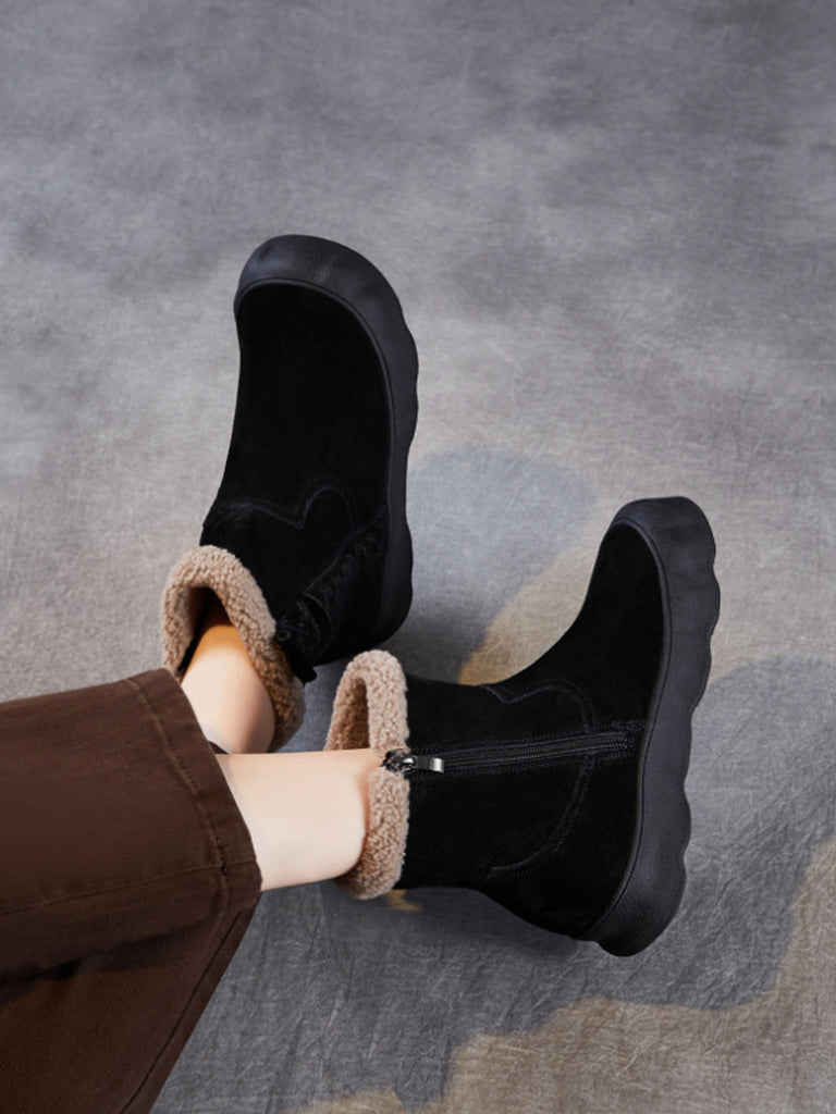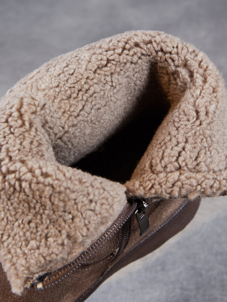 レディース 冬用 ヴィンテージ スエードレザー フリース裏地ブーツ