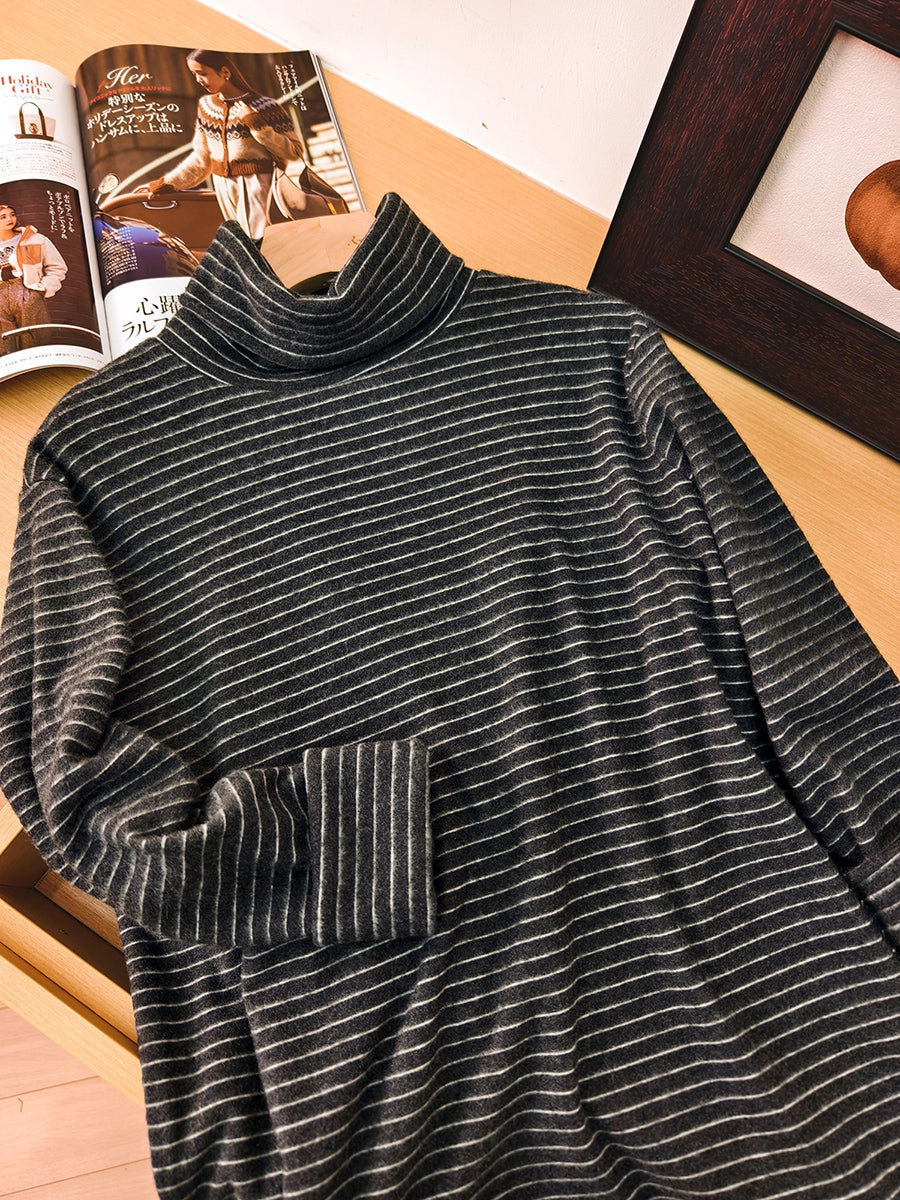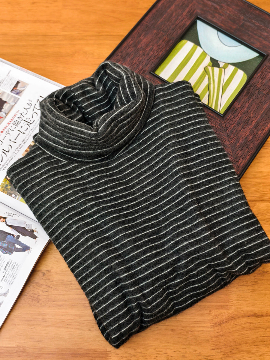 レディース 冬 カジュアル ストライプ タートルネック ブラウス
