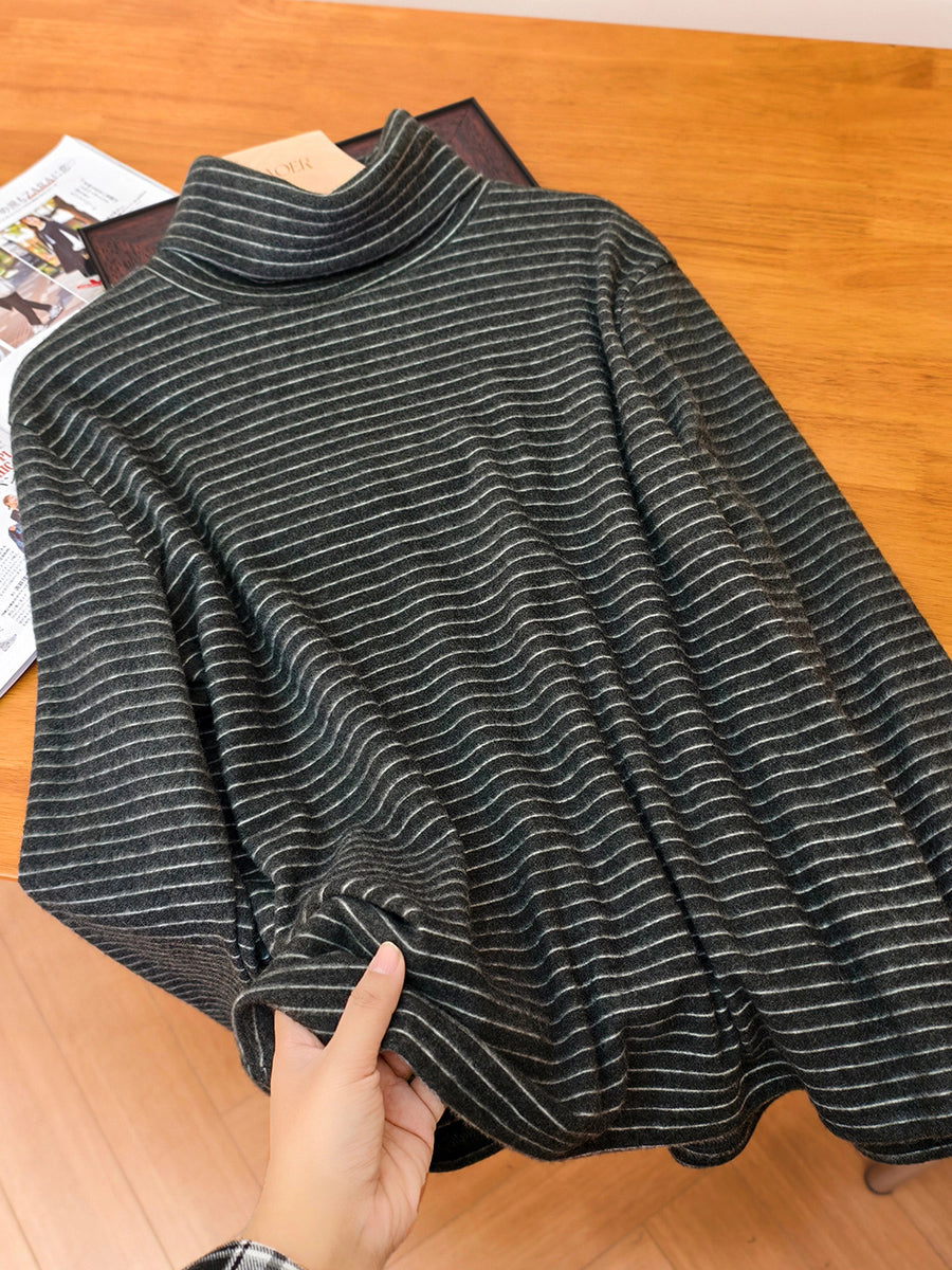 綿62.5%、ポリエステル33.5%、スパンデックス4%のプレミアムブレンド素材を使用したこの冬の必需品は、快適さと耐久性を兼ね備えています。クラシックなストライプ柄は洗練されたタートルネックと完璧に調和し、長袖でしっかりと体をカバーします。リラックスしたカジュアルなデザインで、秋から冬まで快適に着用でき、どんな季節のワードローブにも活躍する万能アイテムです。