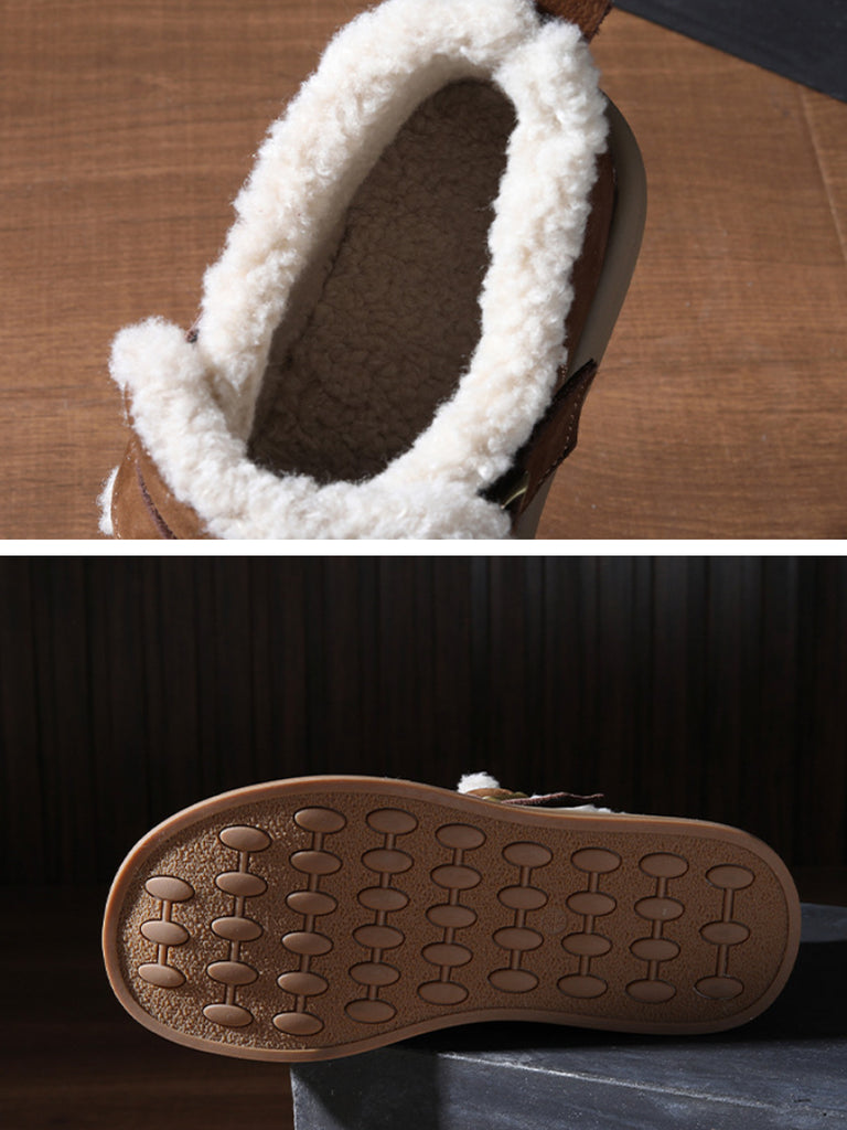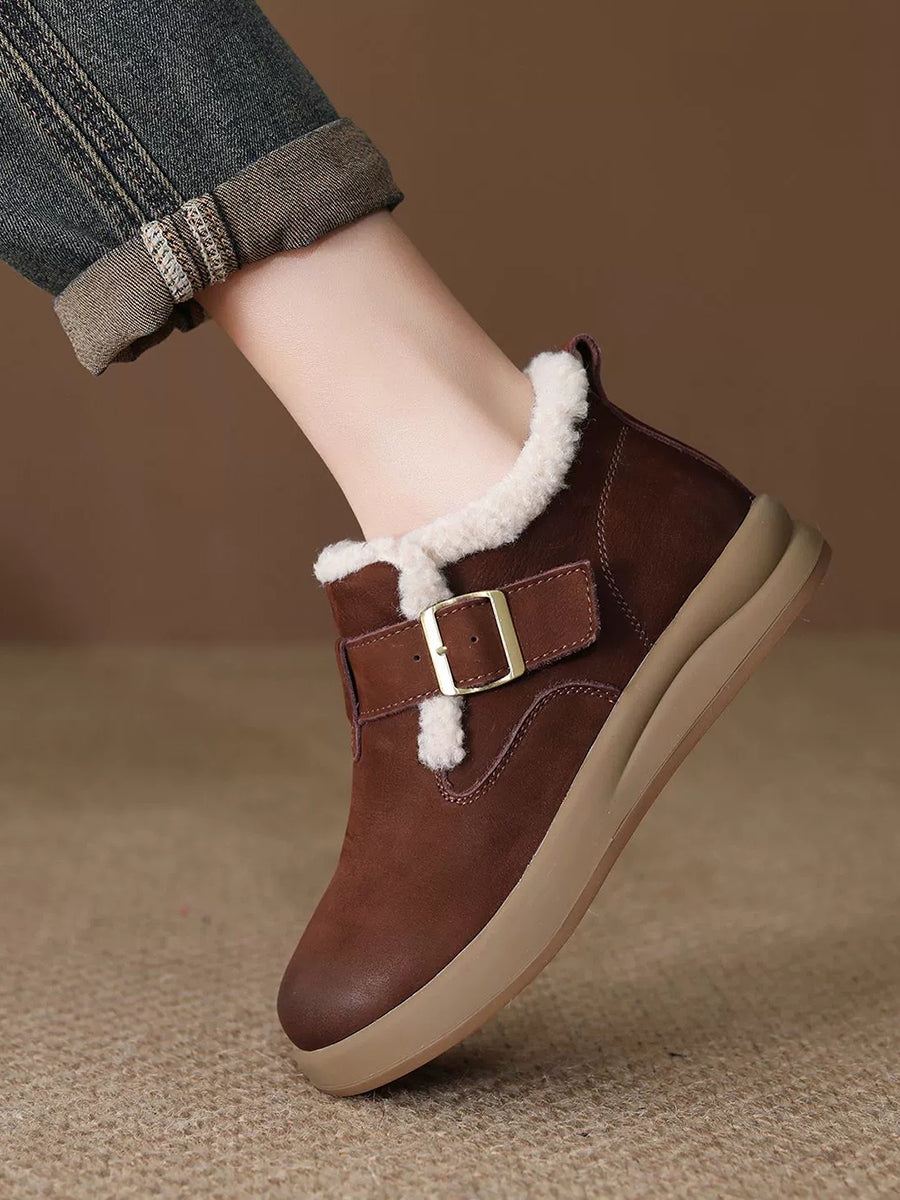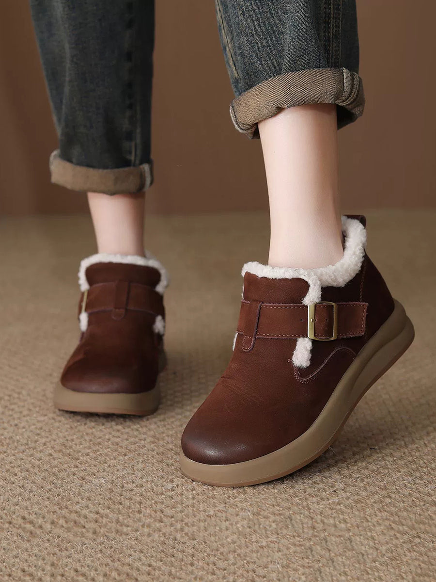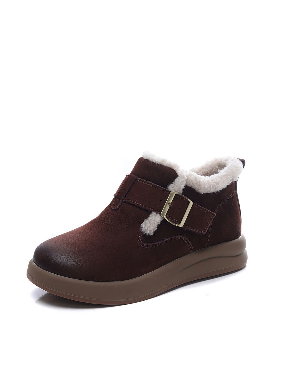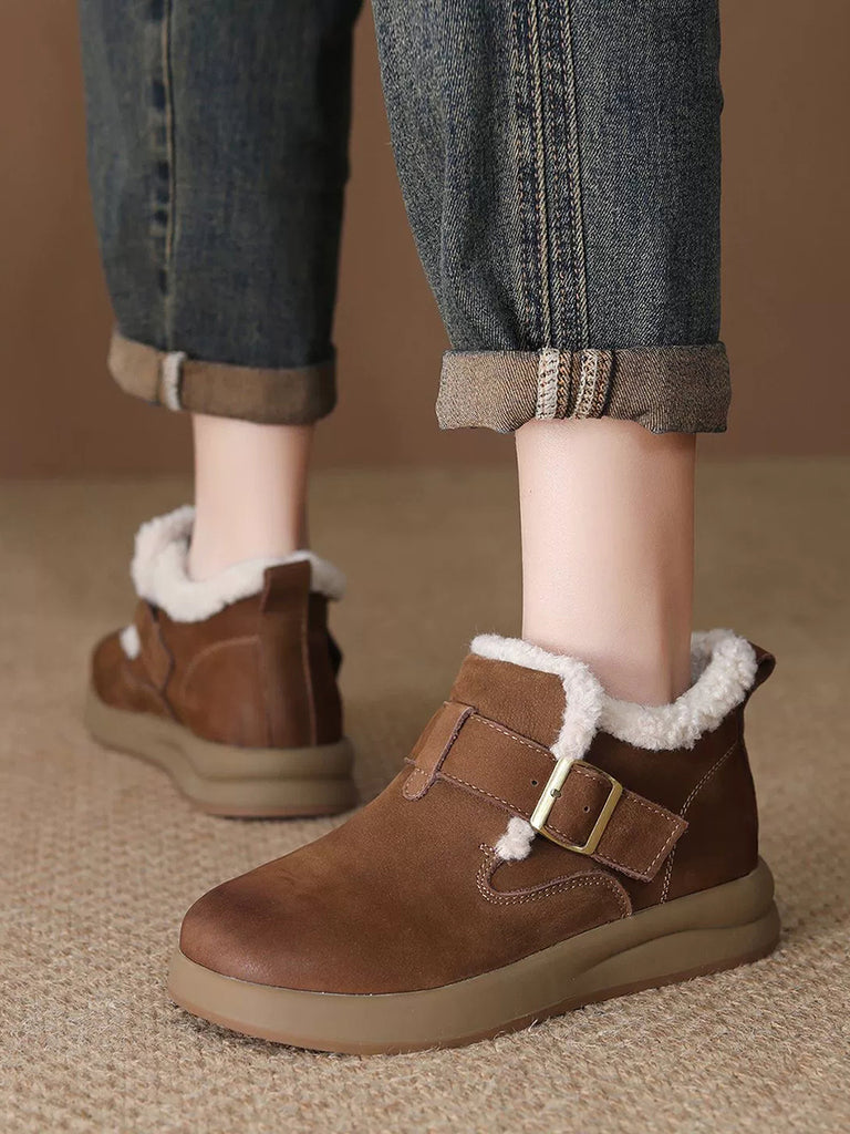 レディース 冬用 ピュアカラー レザー フリース裏地ブーツ
