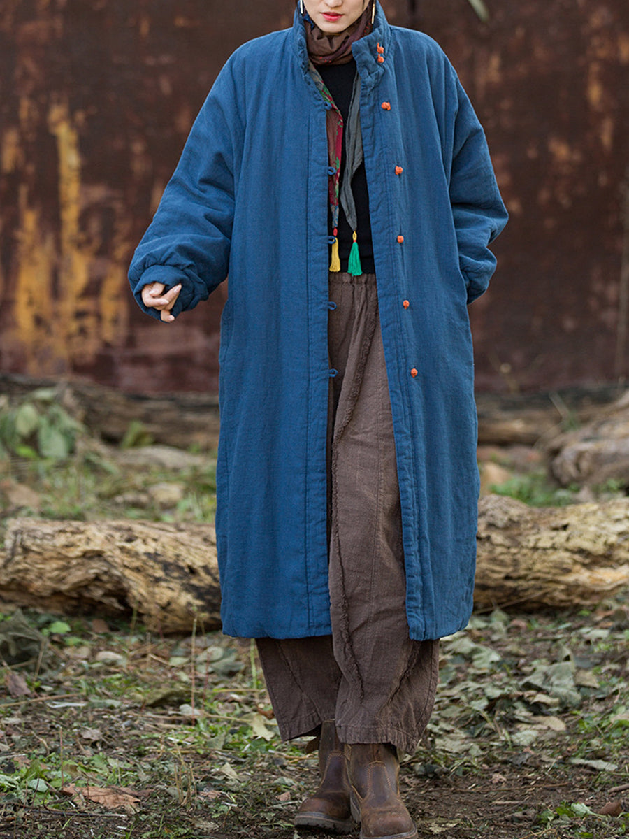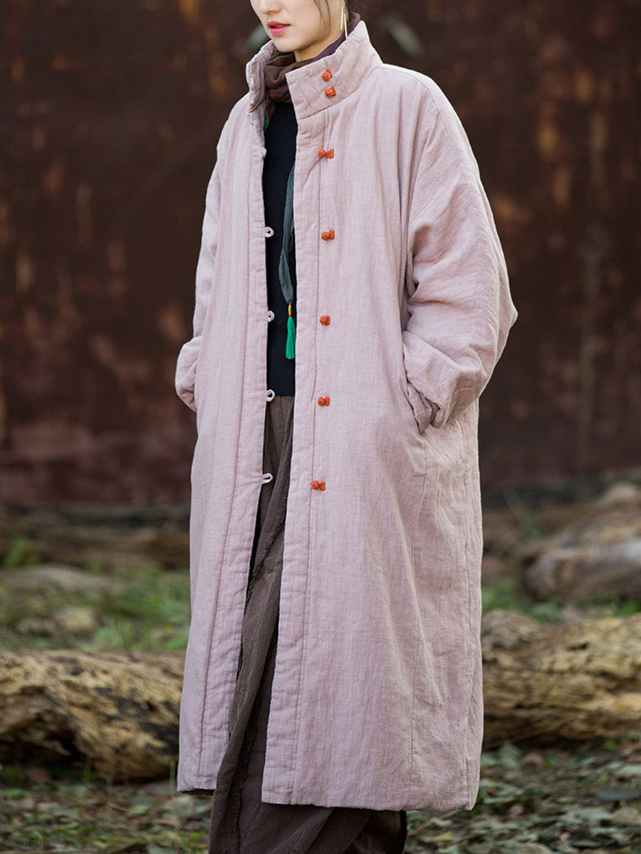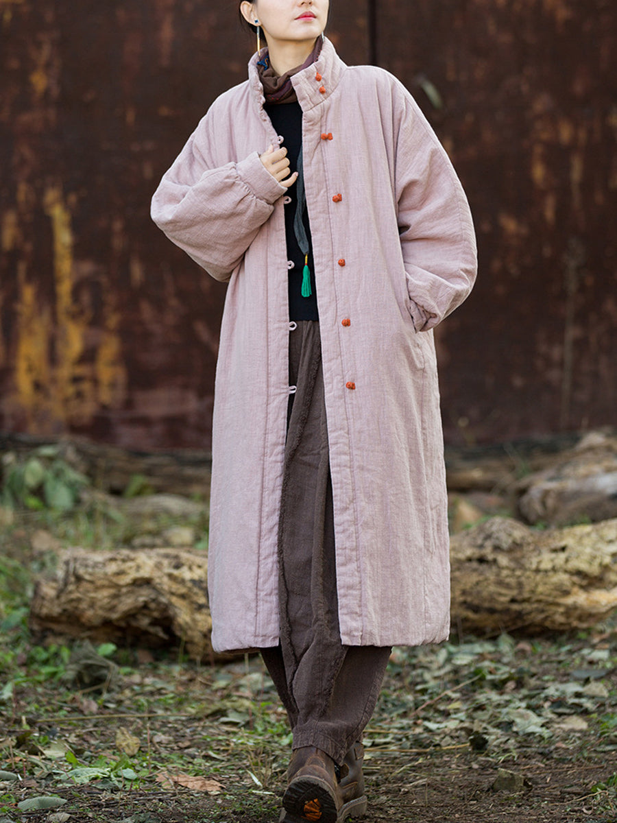 レディース 冬用 純色 スタンドカラー パッド入り オーバーコート