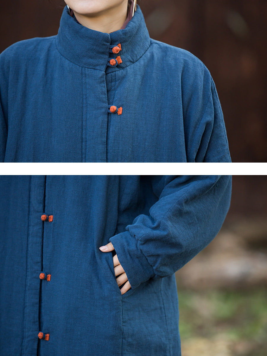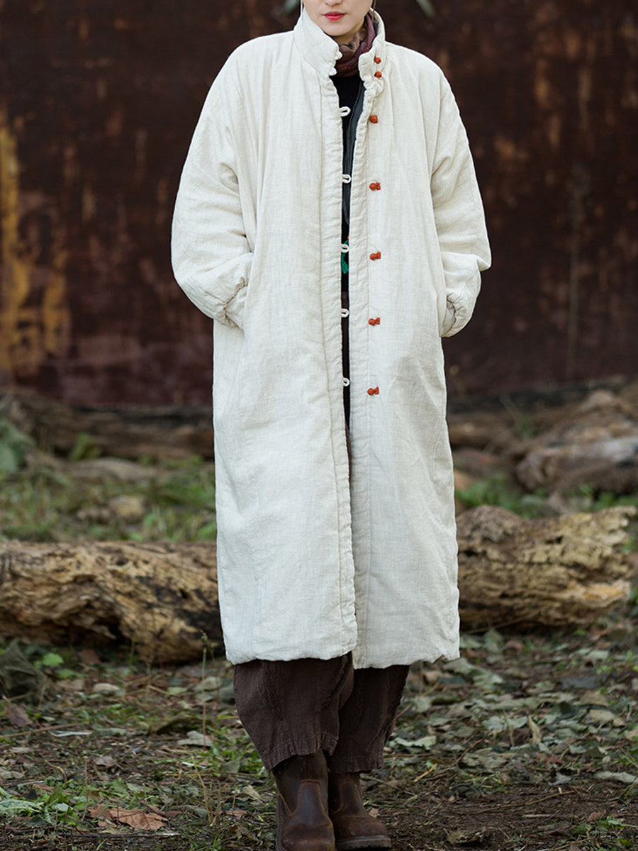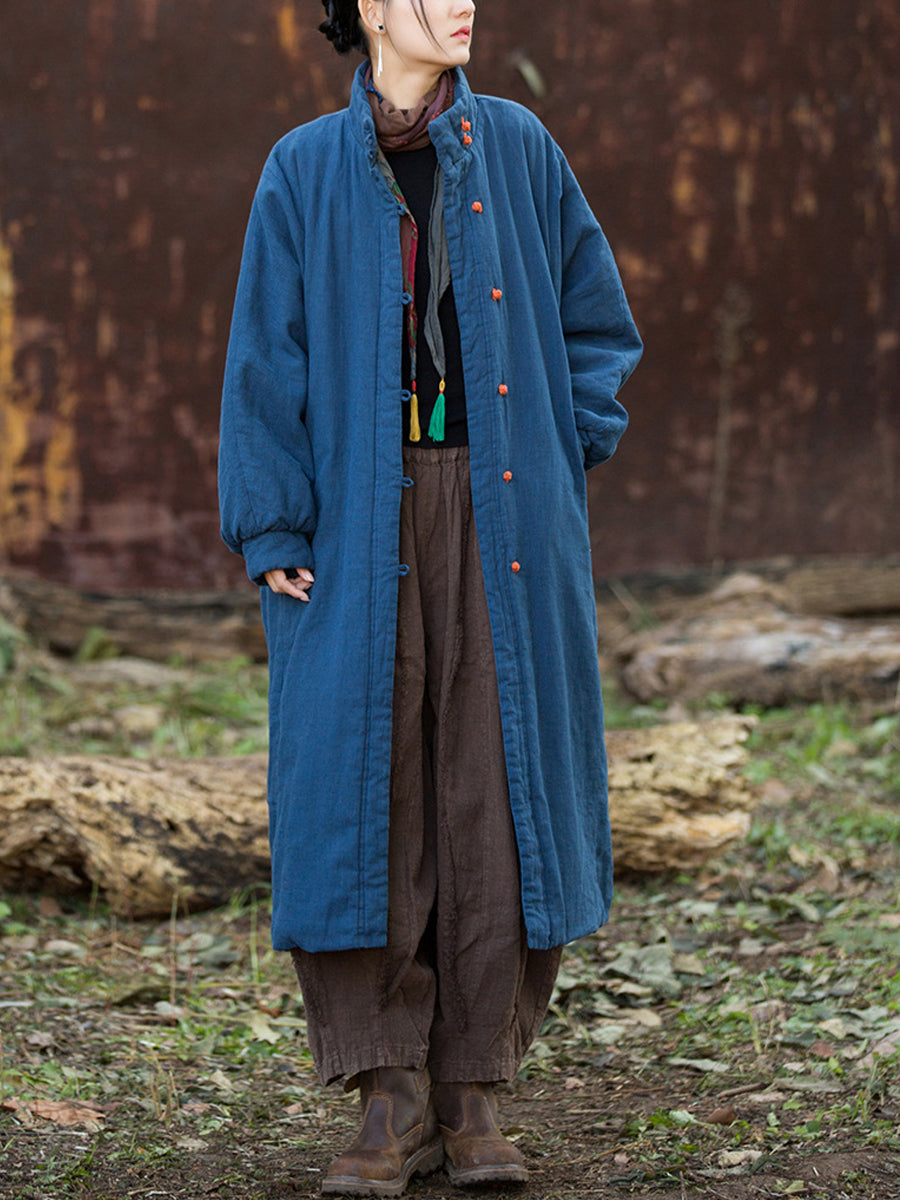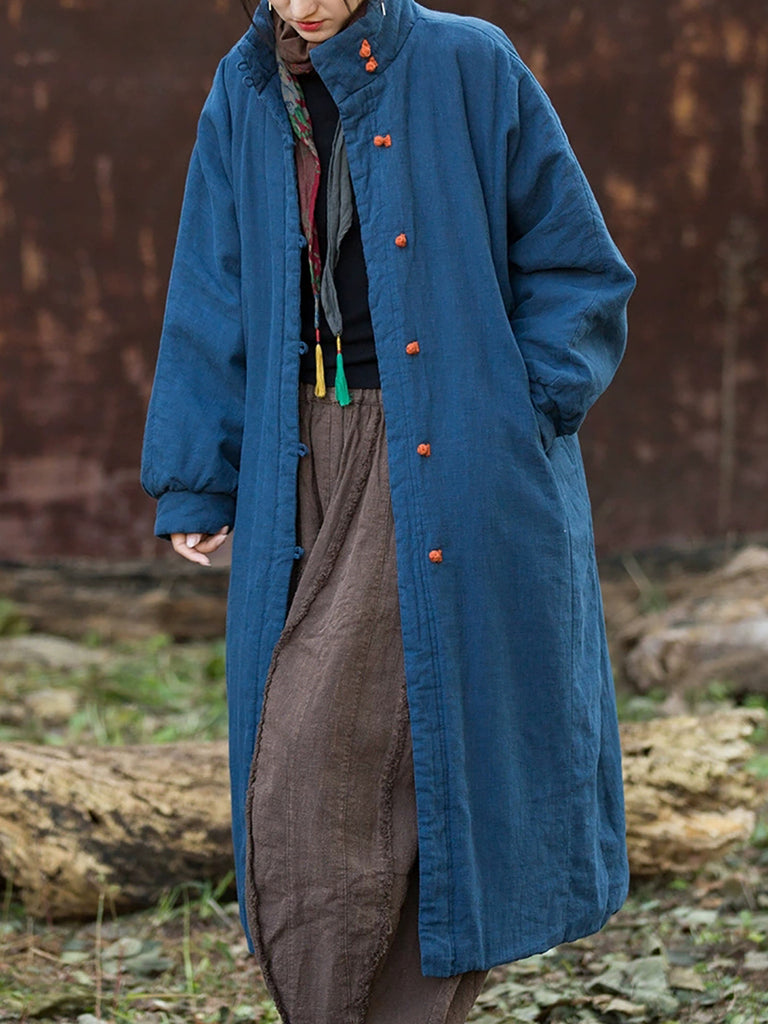 レディース 冬用 純色 スタンドカラー パッド入り オーバーコート