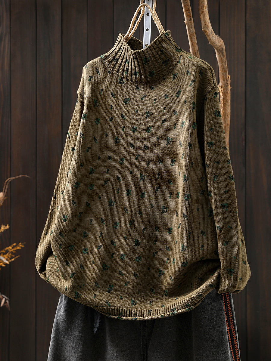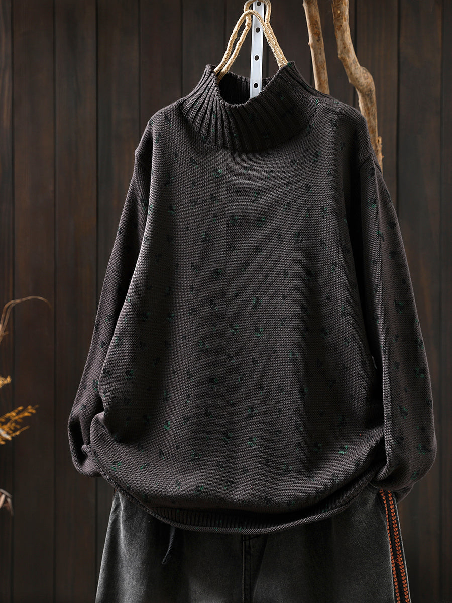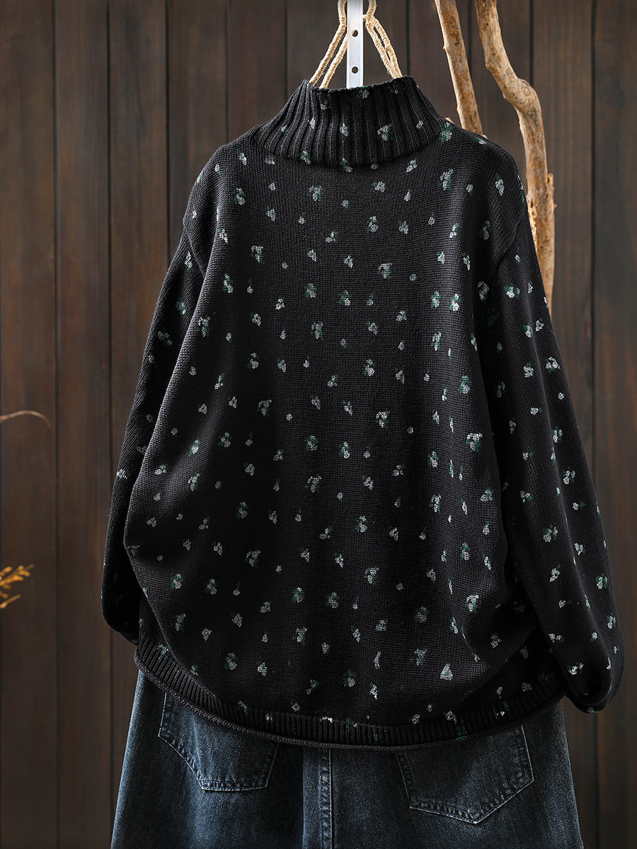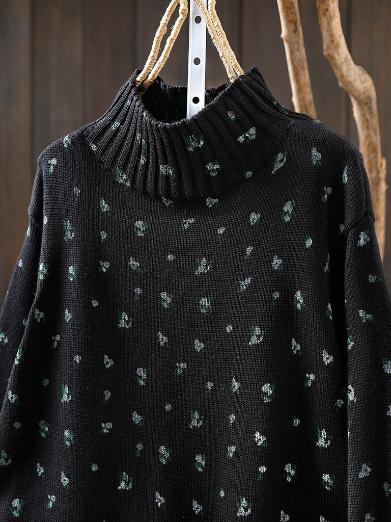 レディース 秋 アーティスティック 花柄 ハーフタートルネック セーター