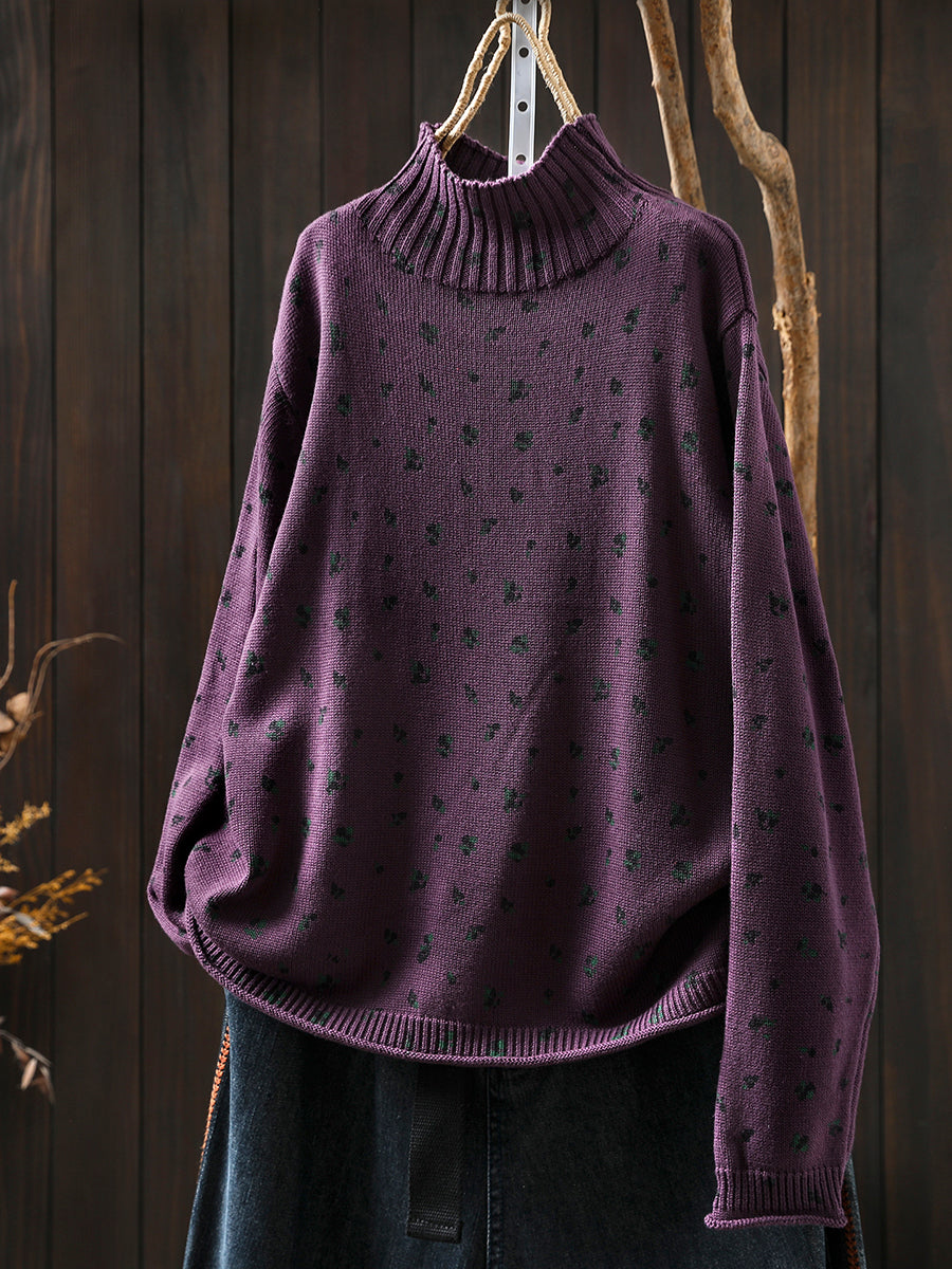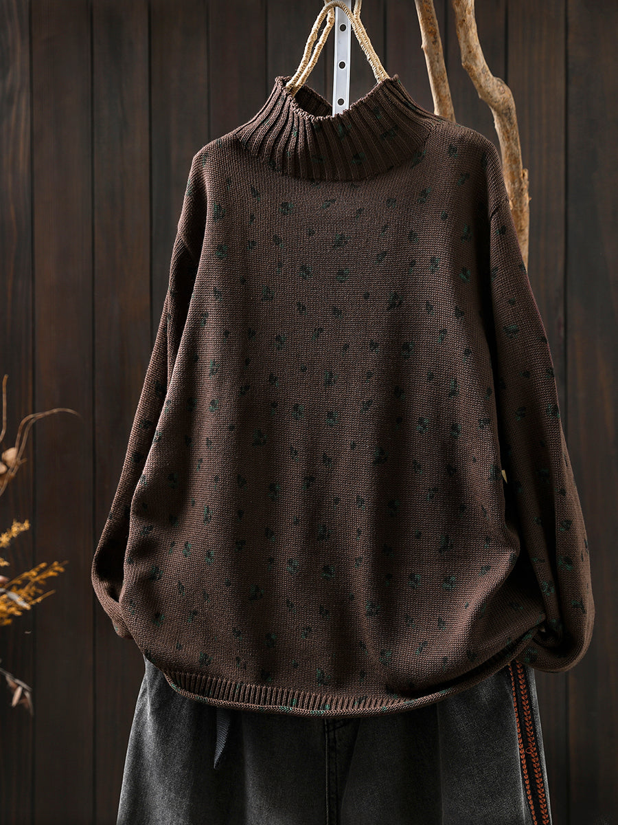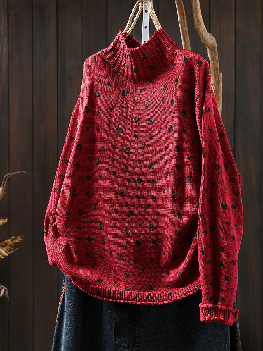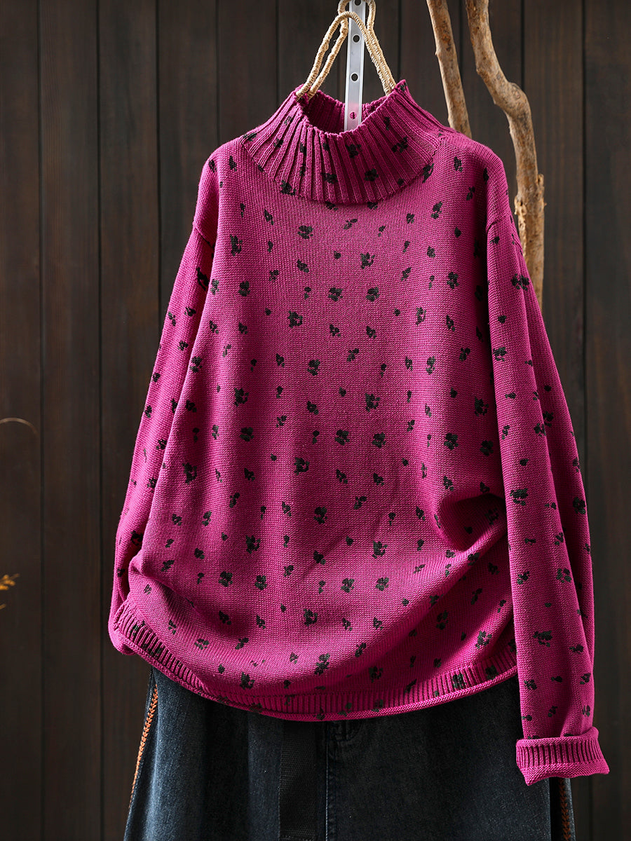 レディース 秋 アーティスティック 花柄 ハーフタートルネック セーター