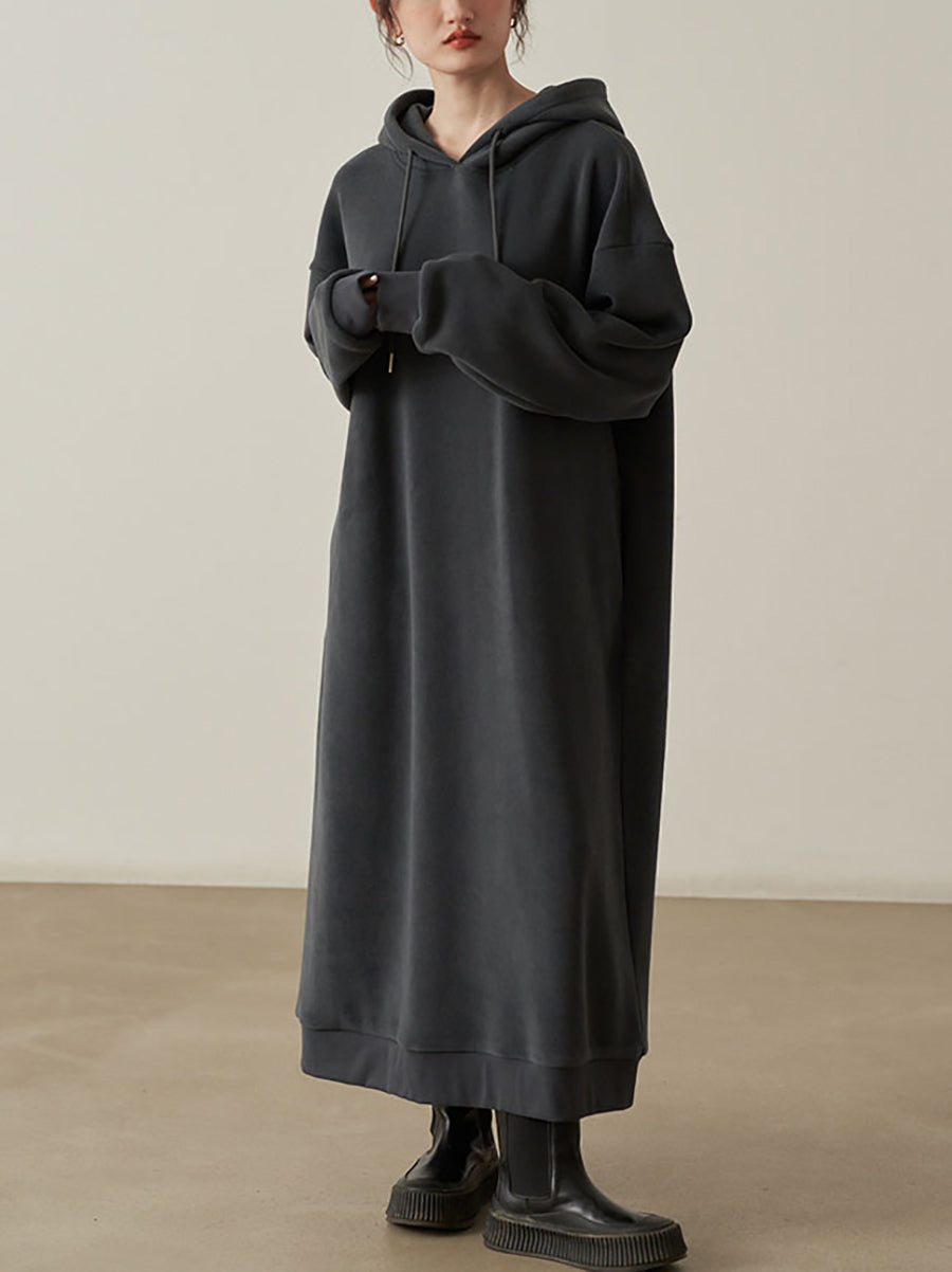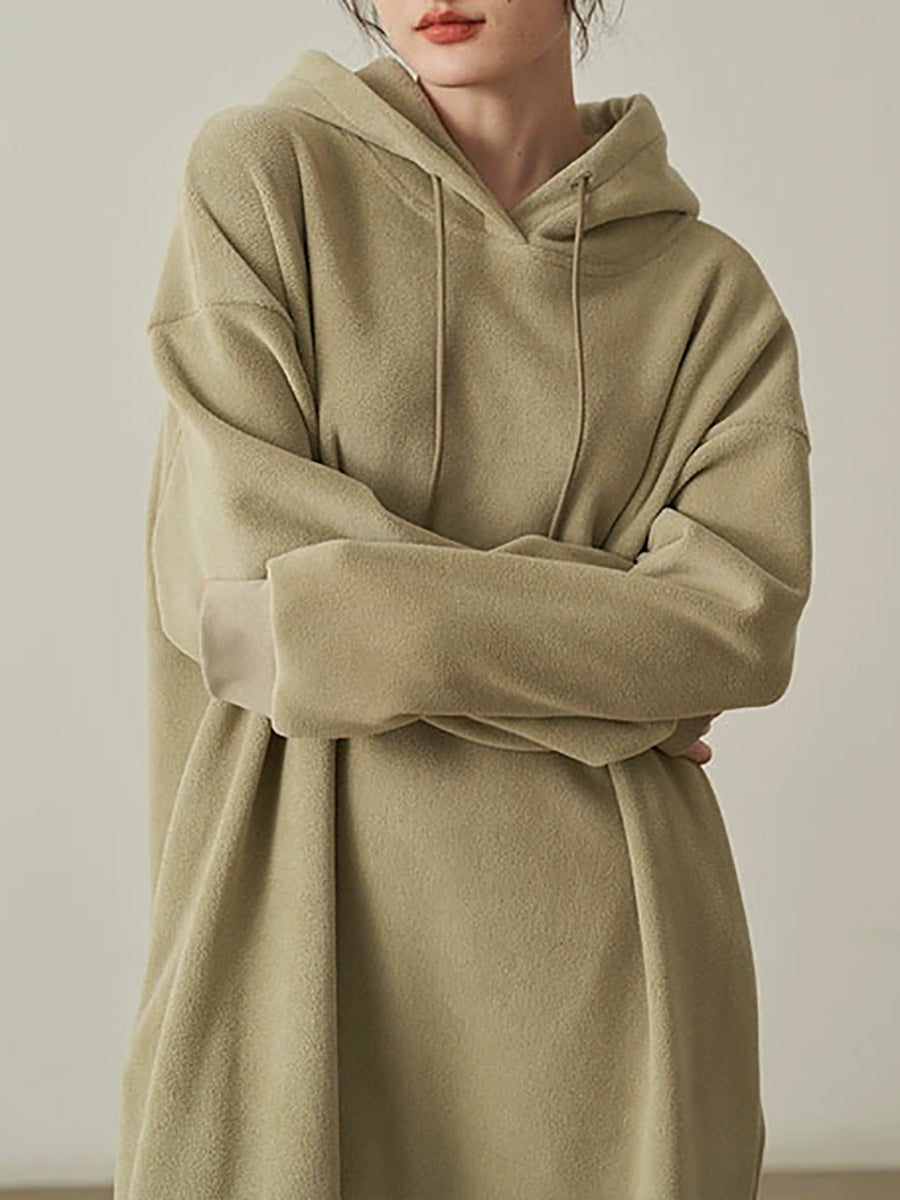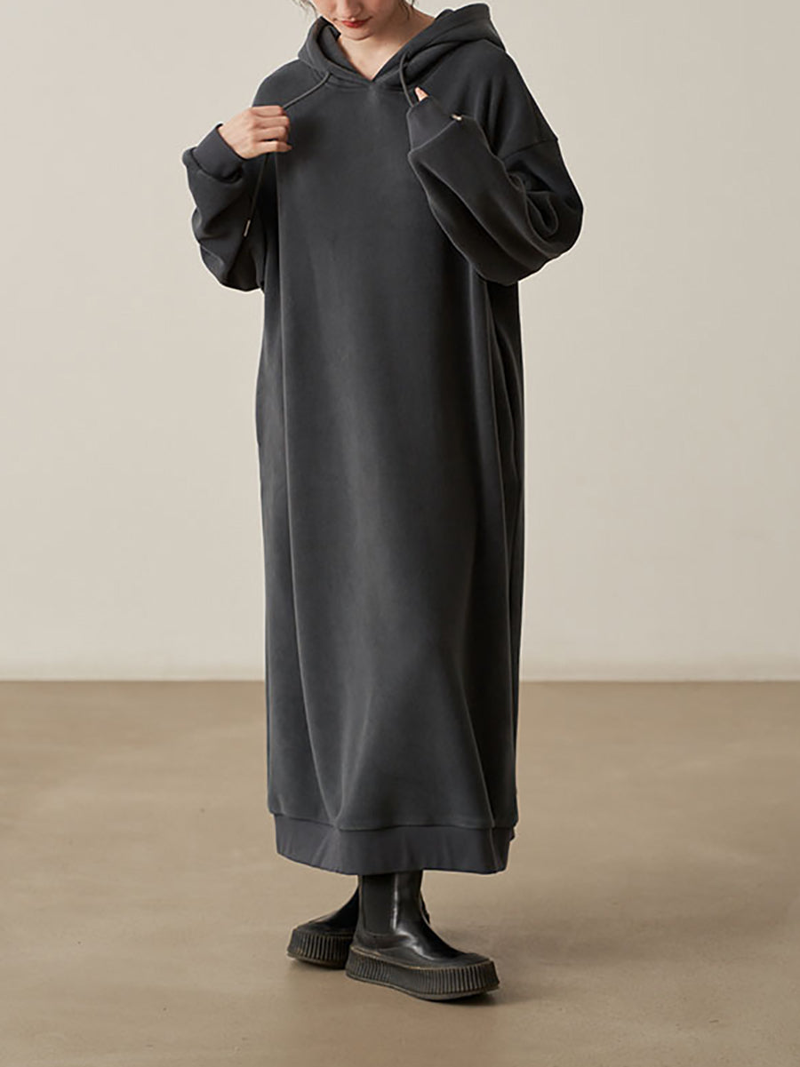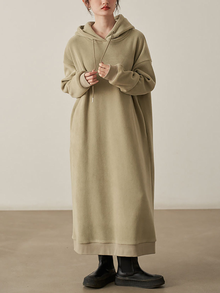 レディース 秋 ピュアカラー フリース フード付きドレス