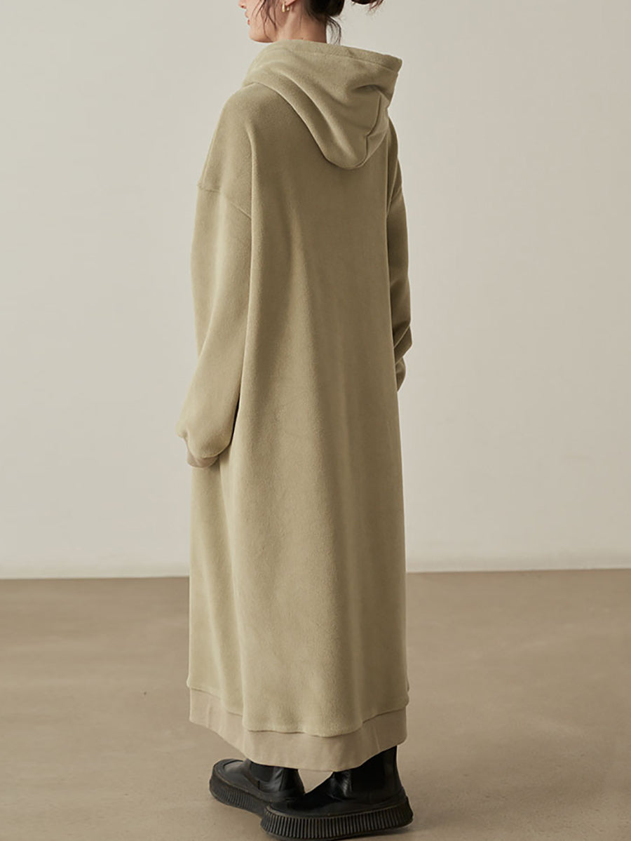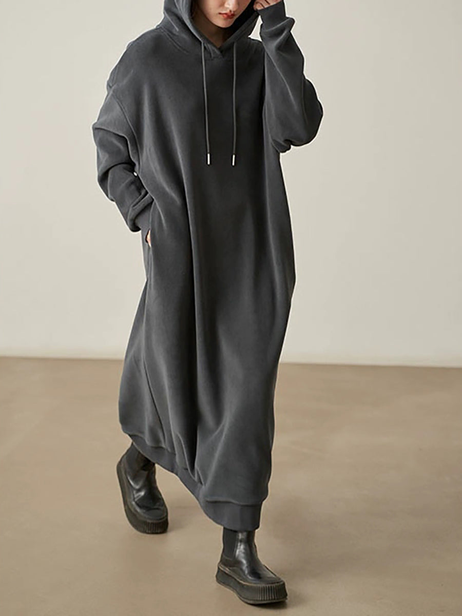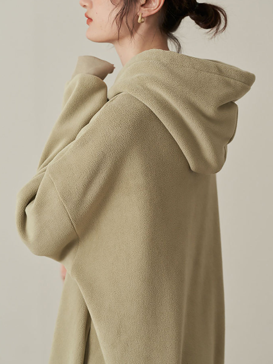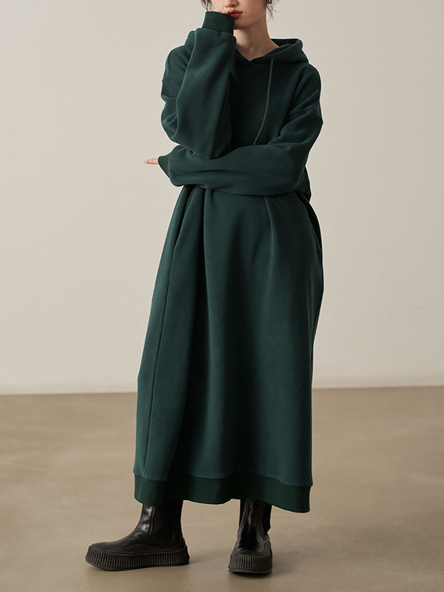 レディース 秋 ピュアカラー フリース フード付きドレス