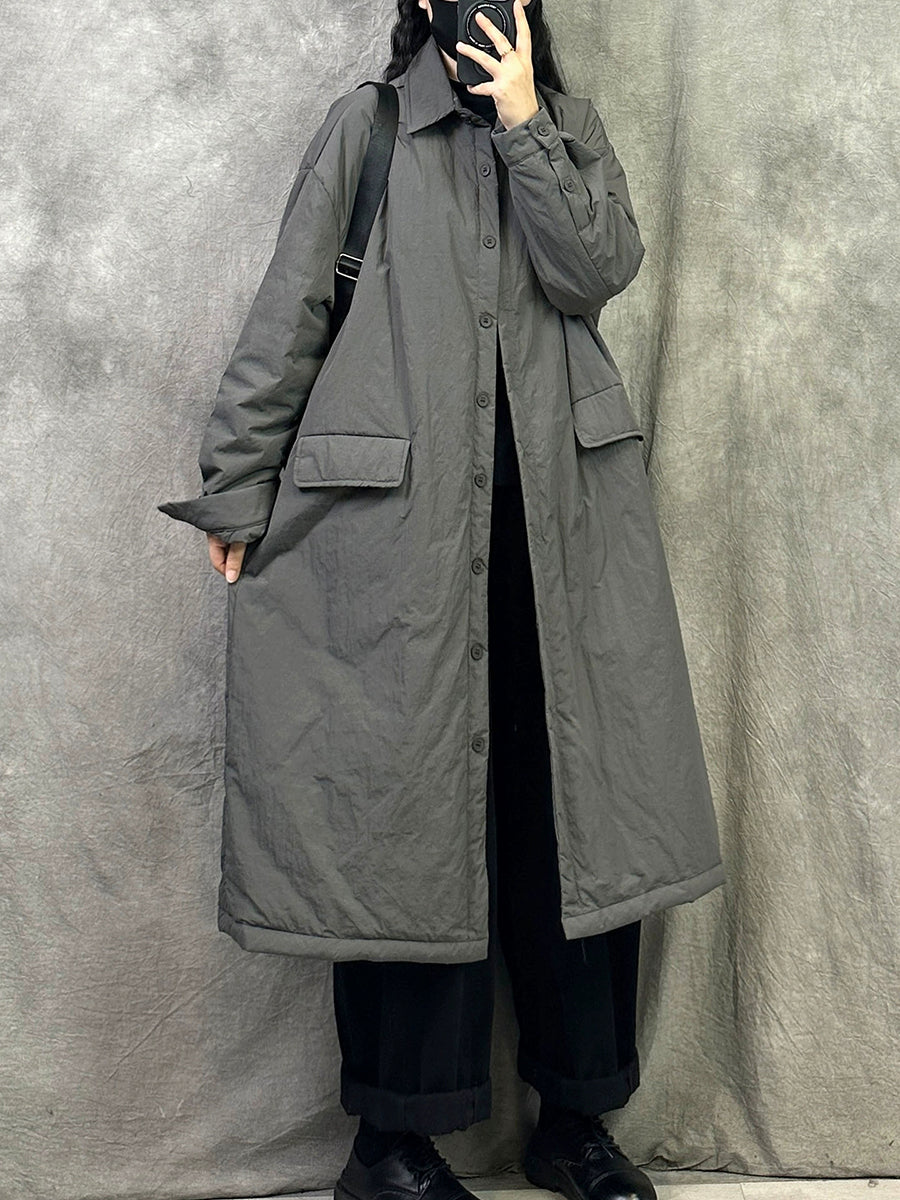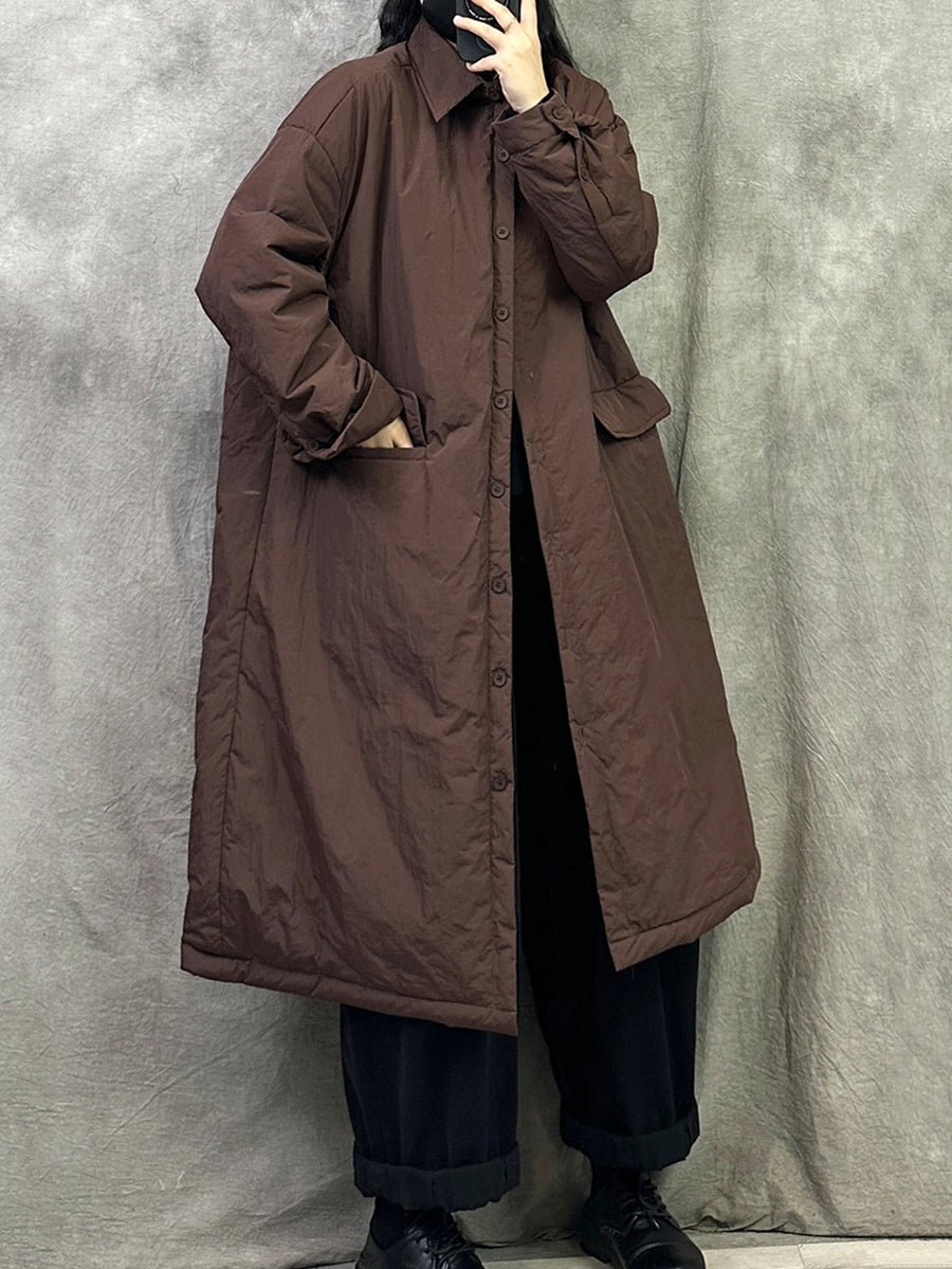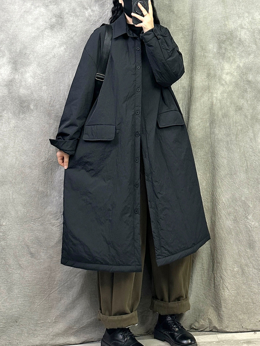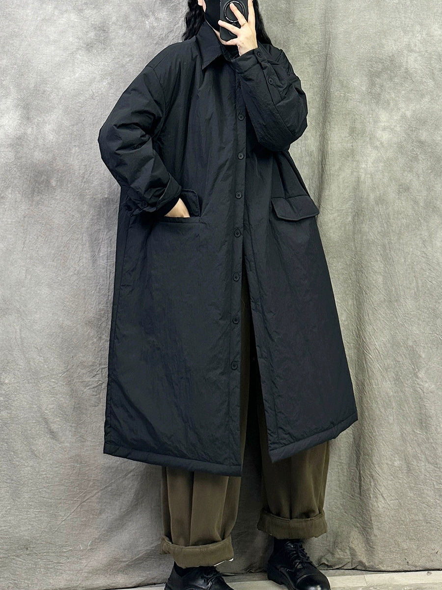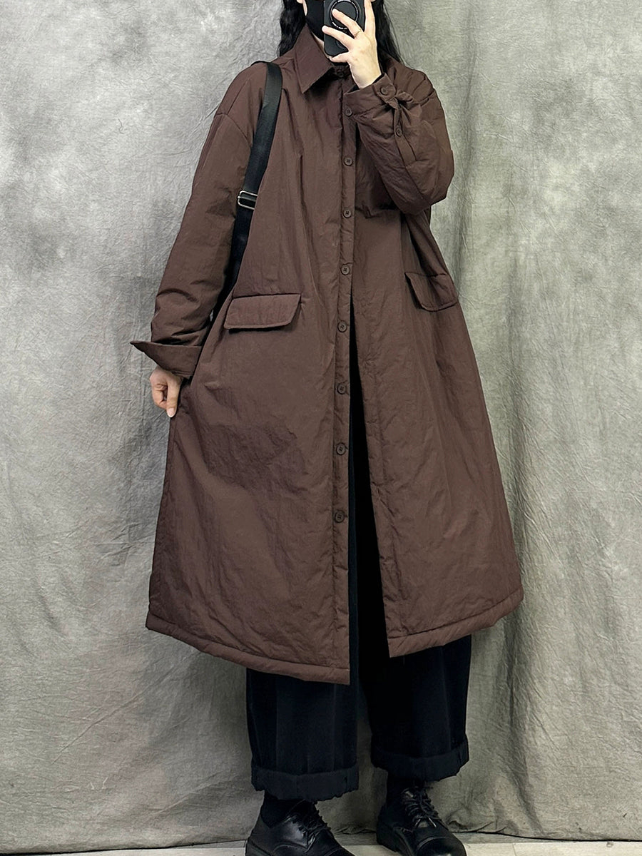 レディース 冬用 純色 ターンダウンカラー パッド入り オーバーコート