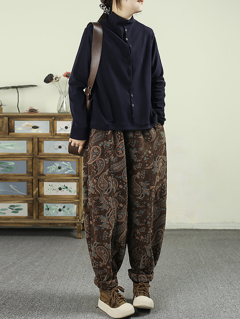 レディース 冬 レトロフラワー フリース裏地 ハーレムパンツ