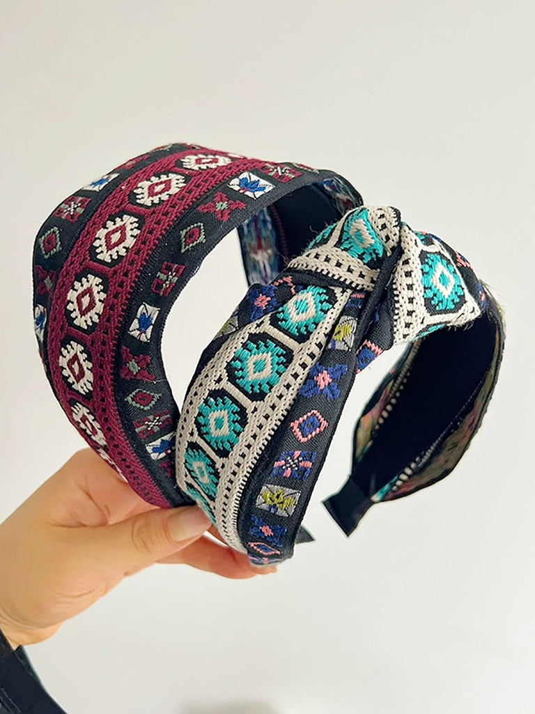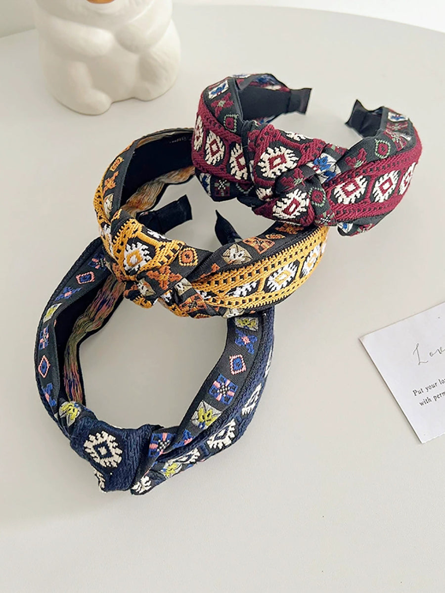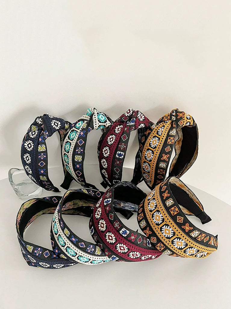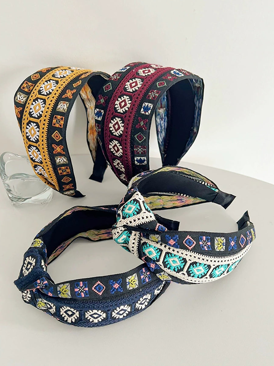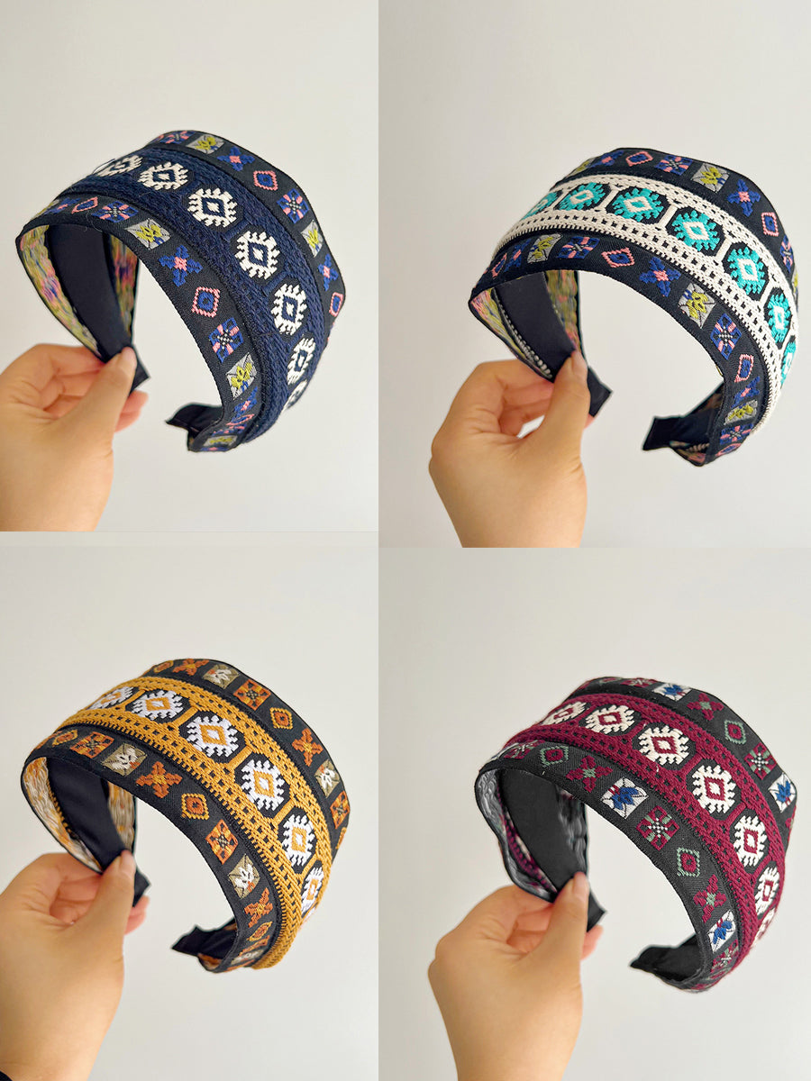 冬用アートフラワーニットワイドヘアバンド4点セット