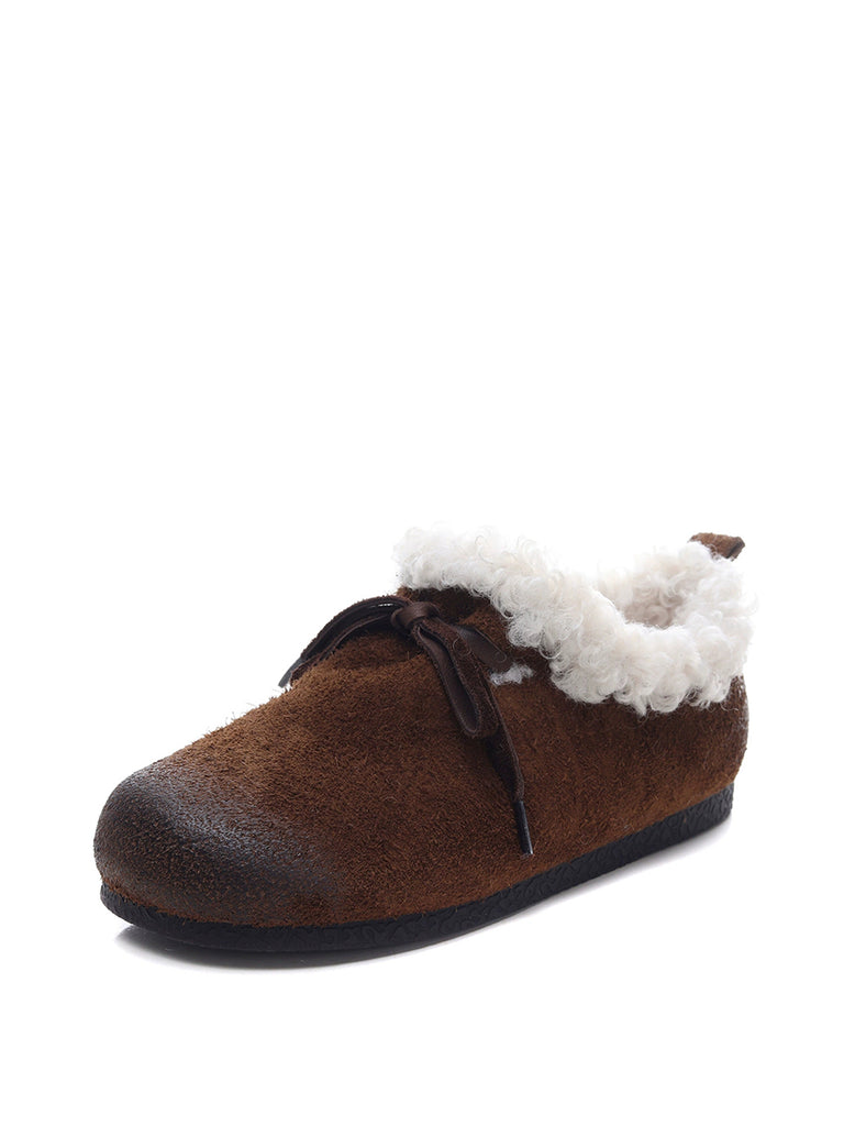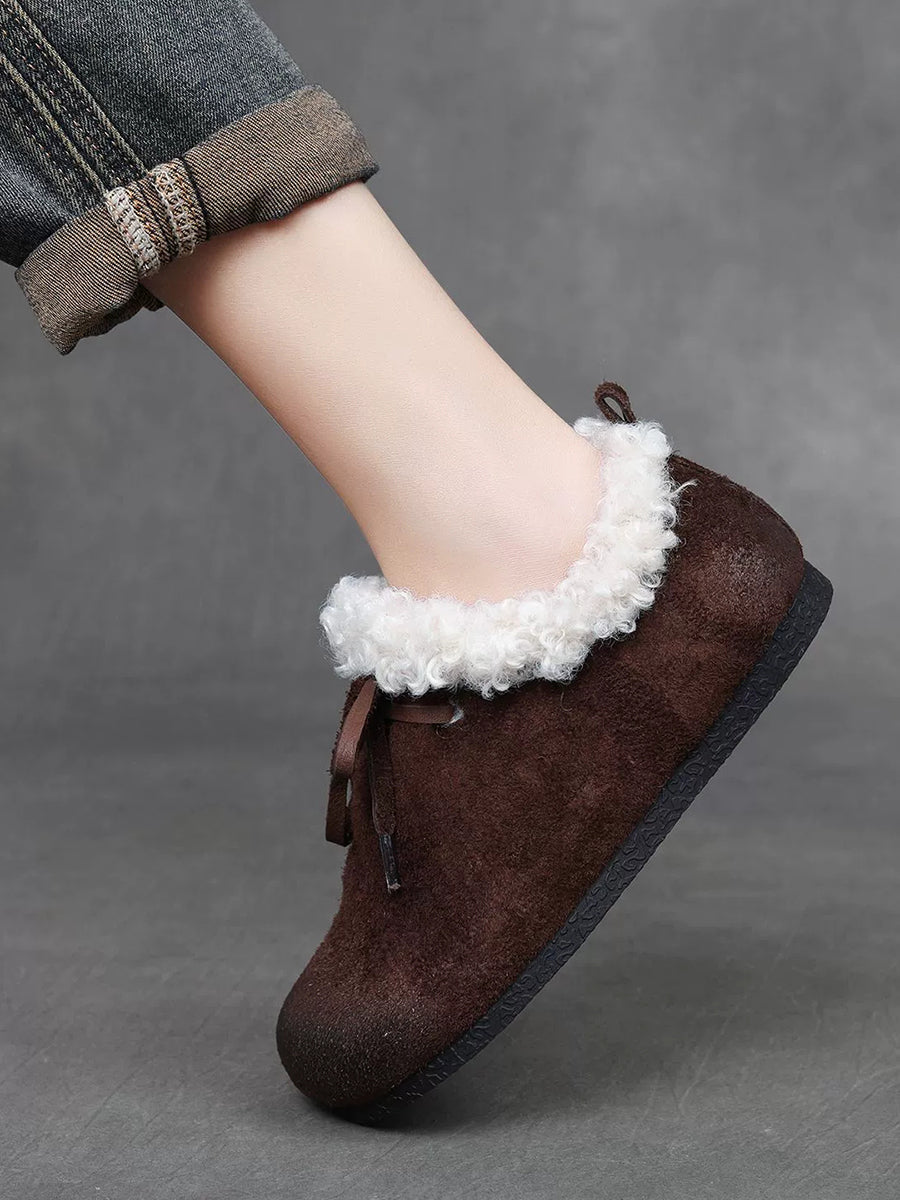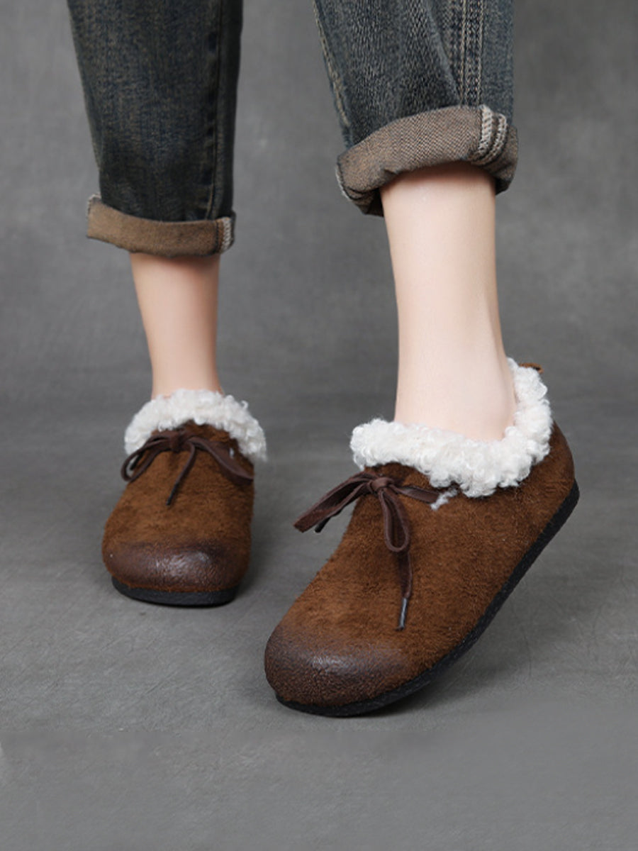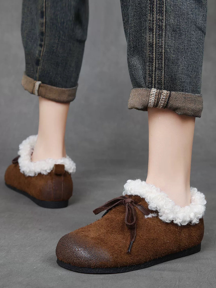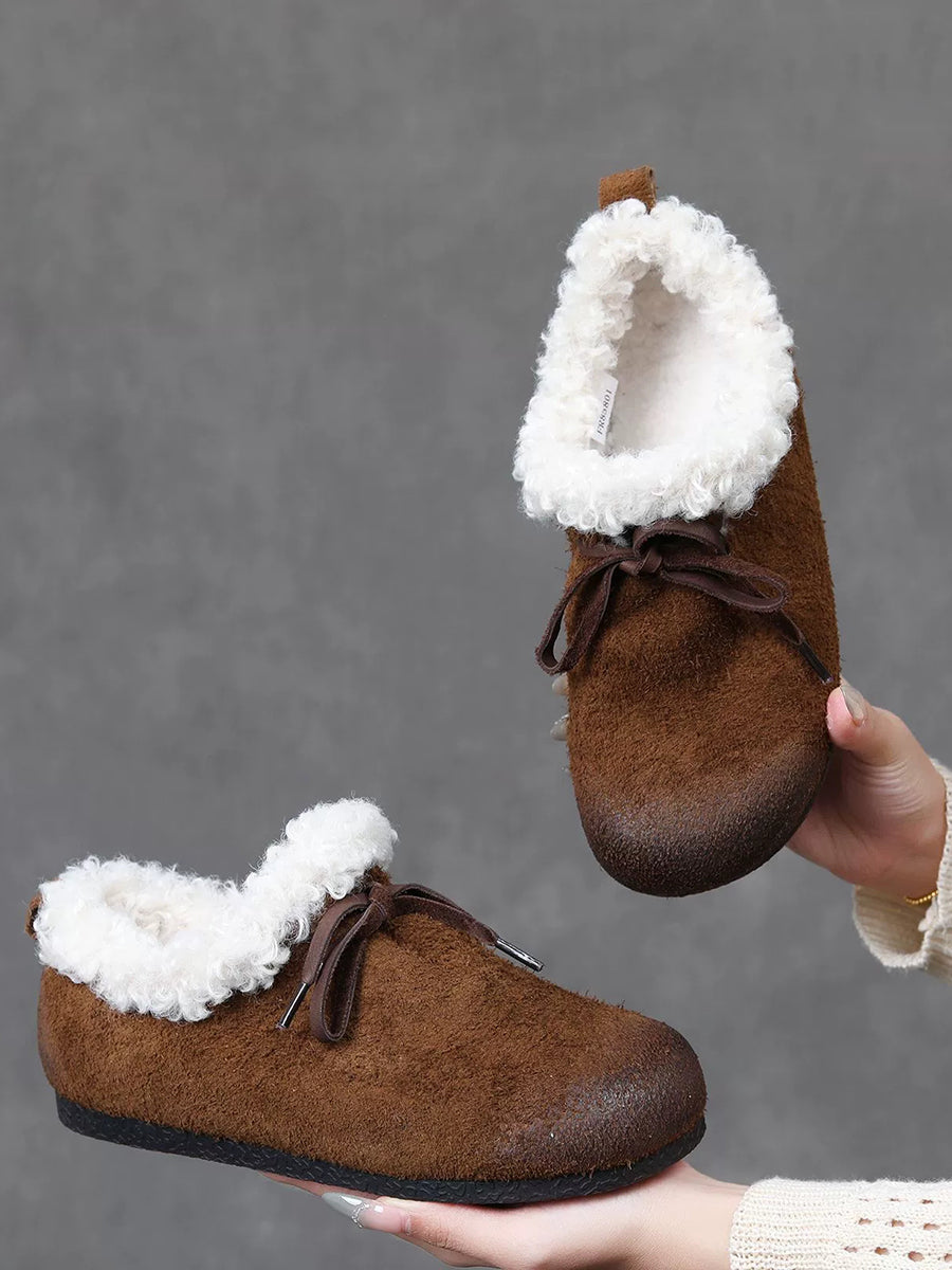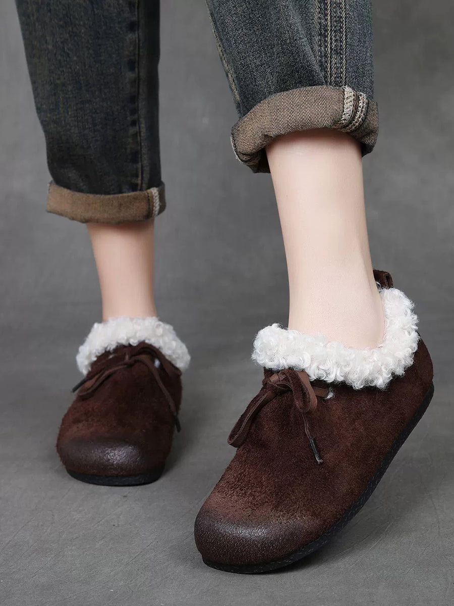 レディース ヴィンテージ 本革 フリース裏地 シューズ