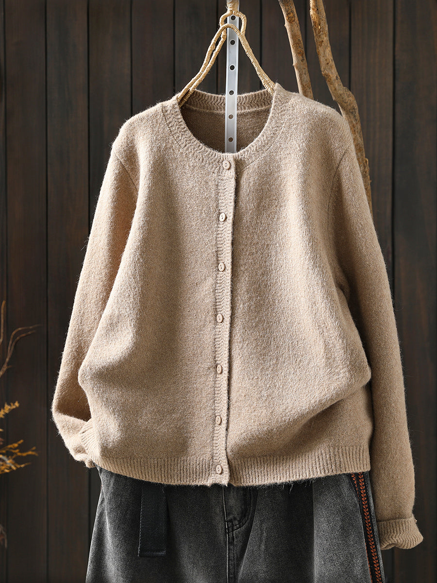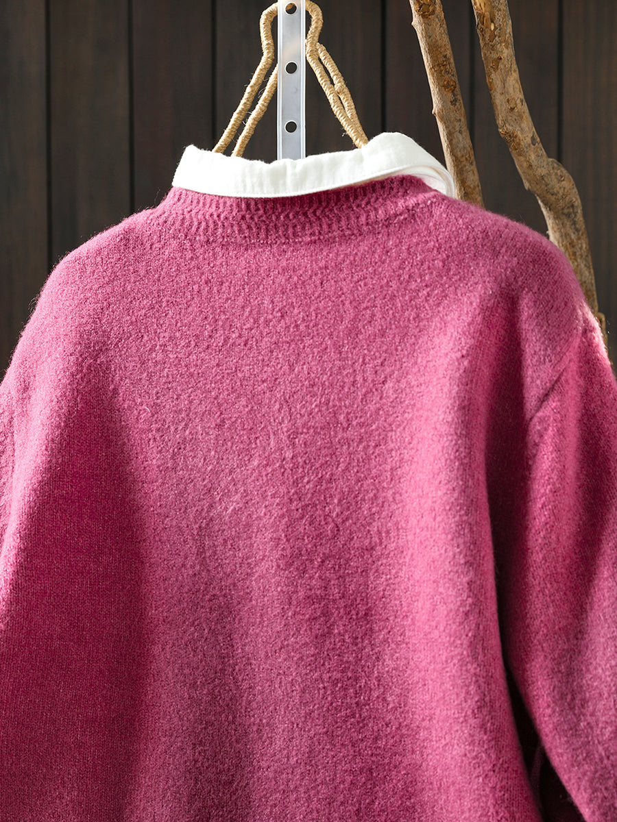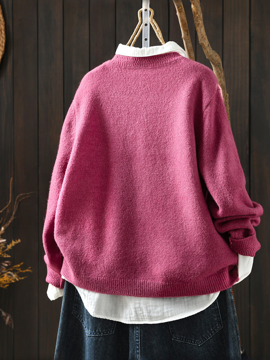 レディース 秋 アーティスティック ピュアカラー ニット Oネック セーター