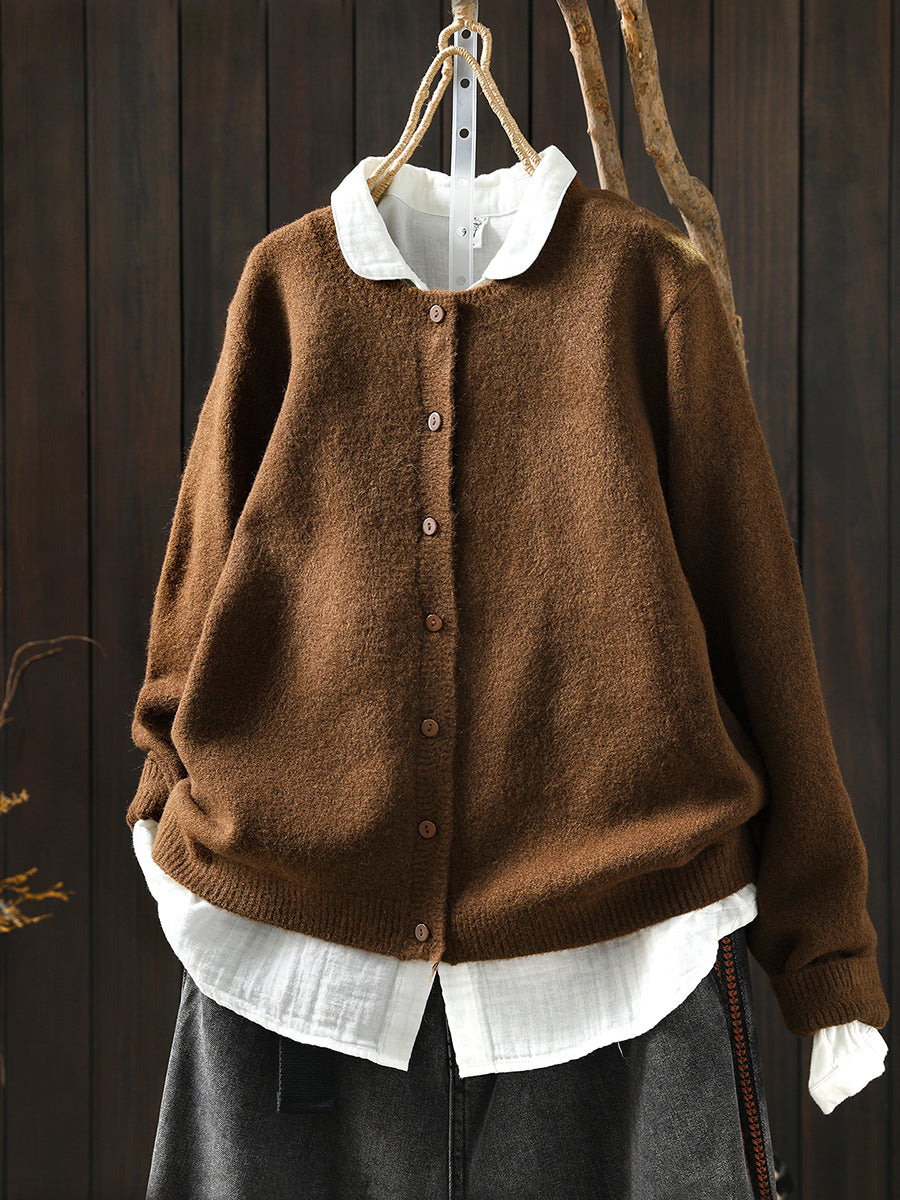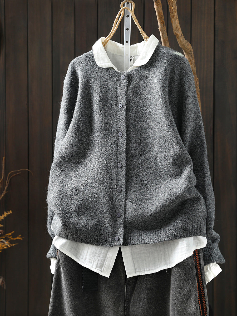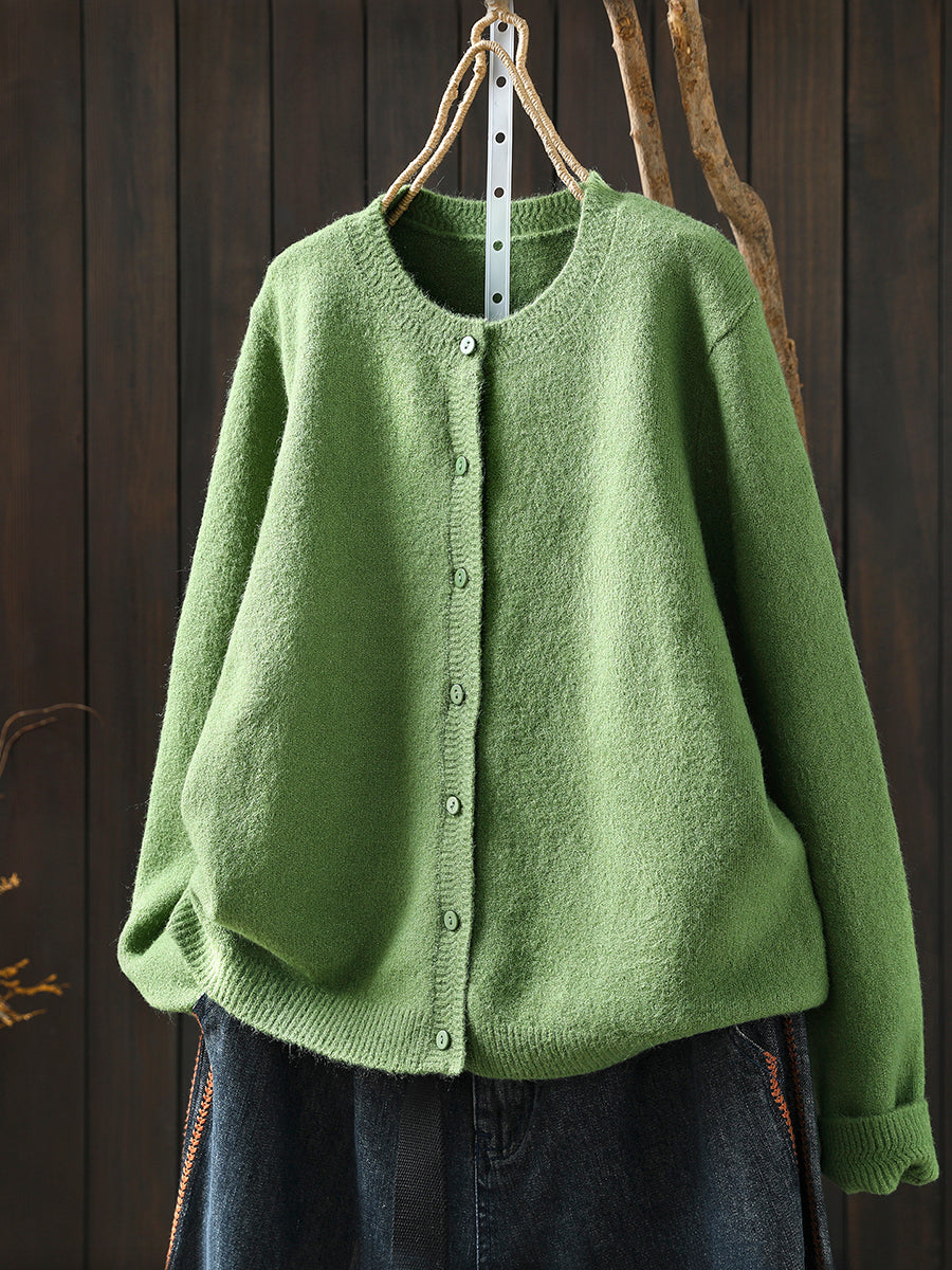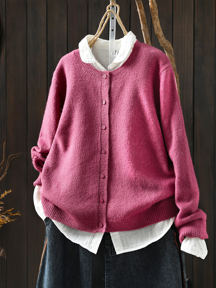 レディース 秋 アーティスティック ピュアカラー ニット Oネック セーター