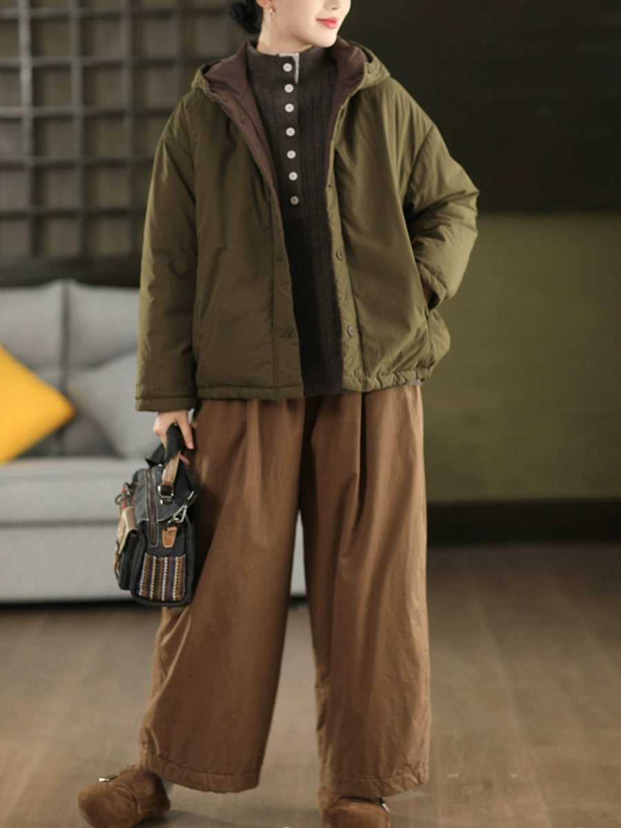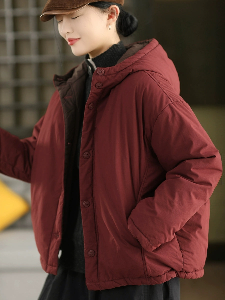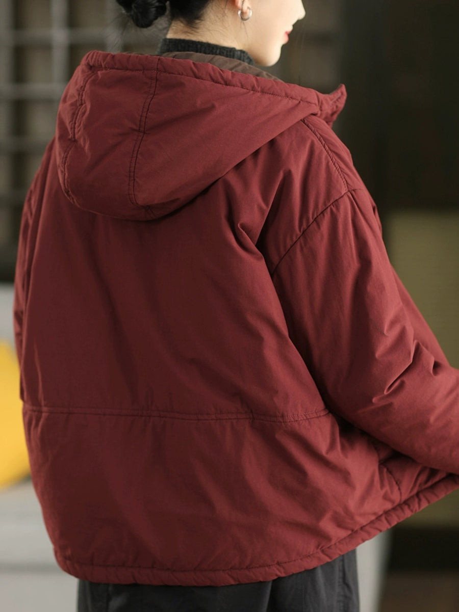 レディース 冬 レトロ ピュアカラー フード付き パッド入りコート