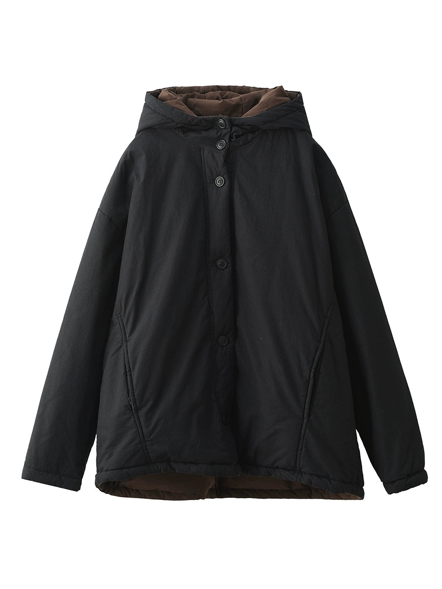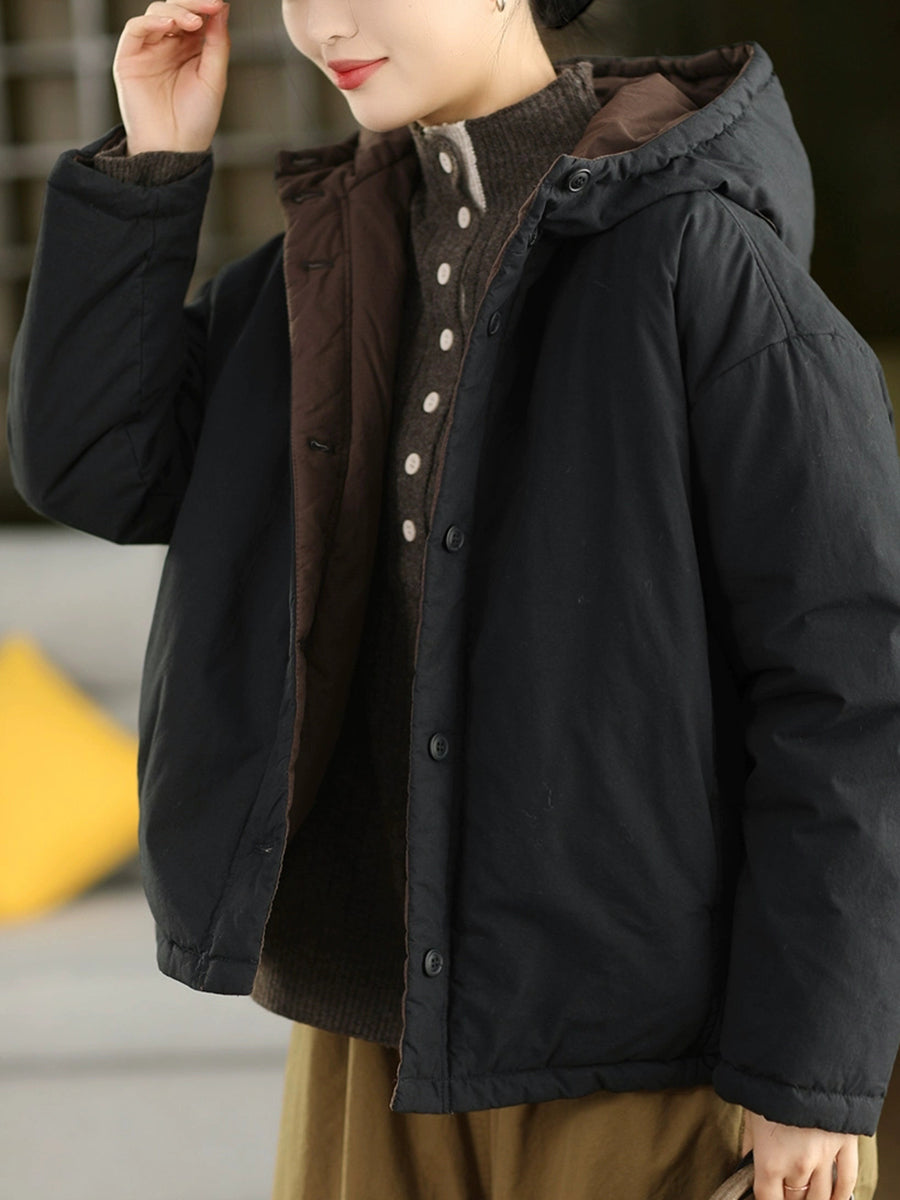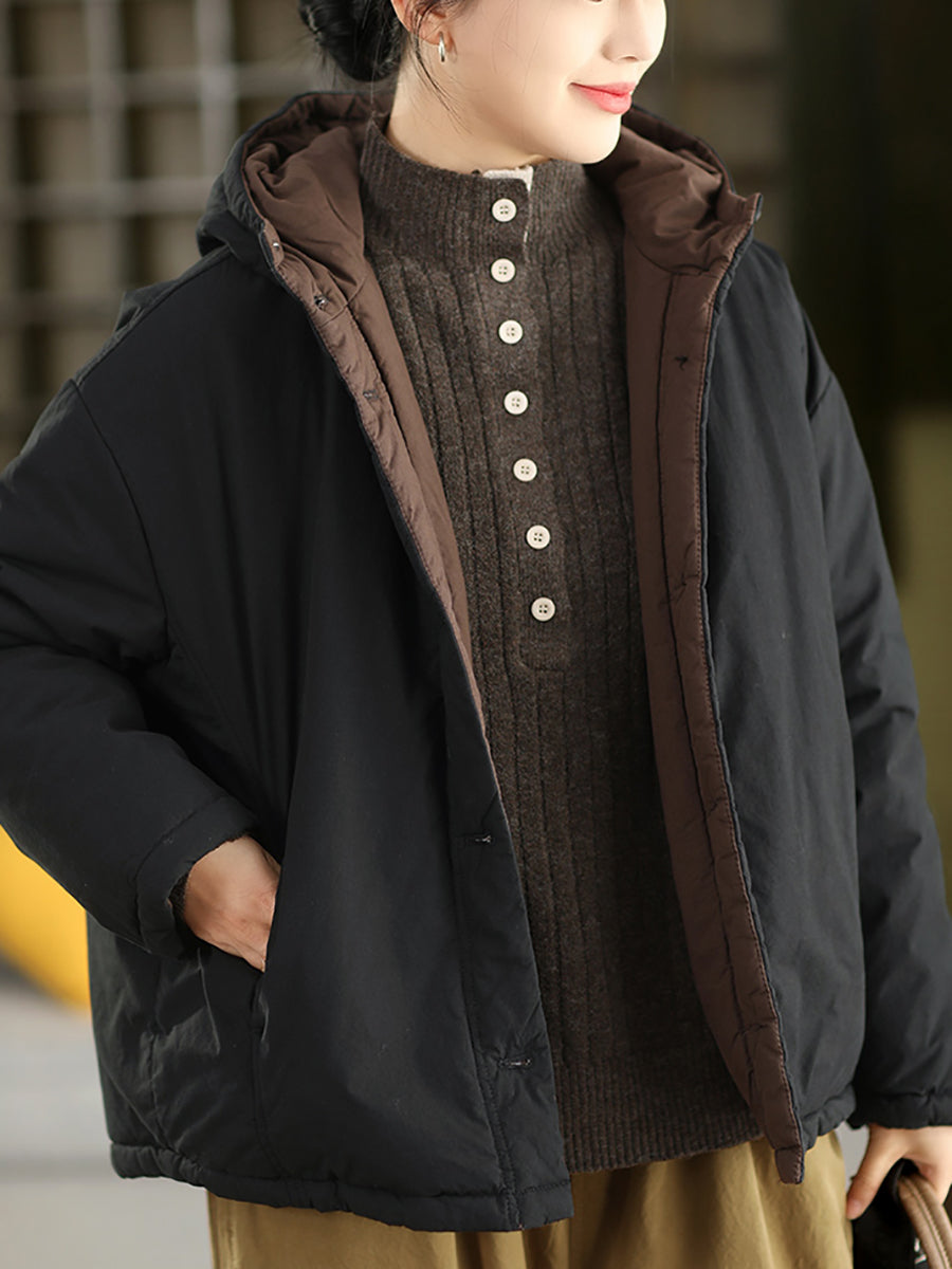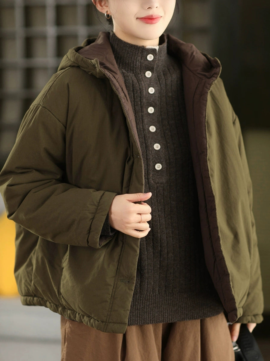 レディース 冬 レトロ ピュアカラー フード付き パッド入りコート