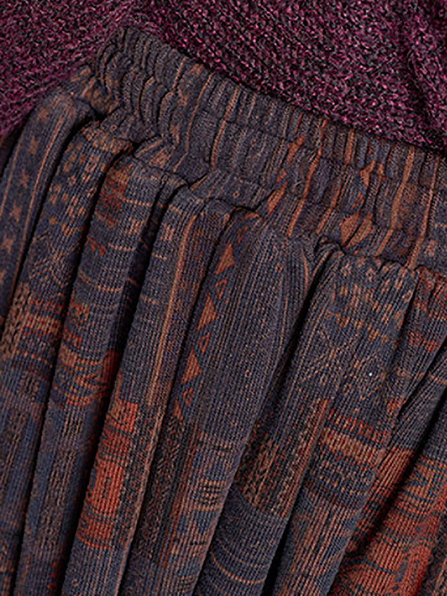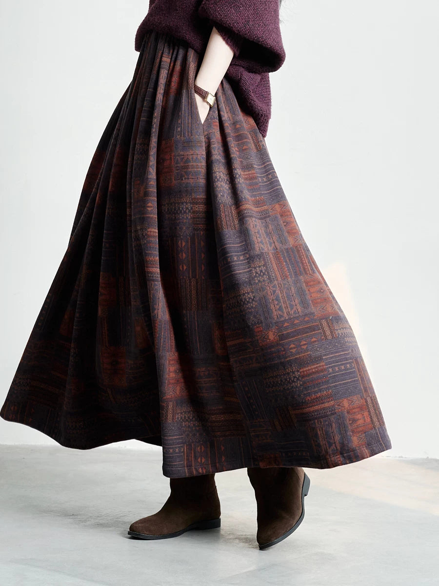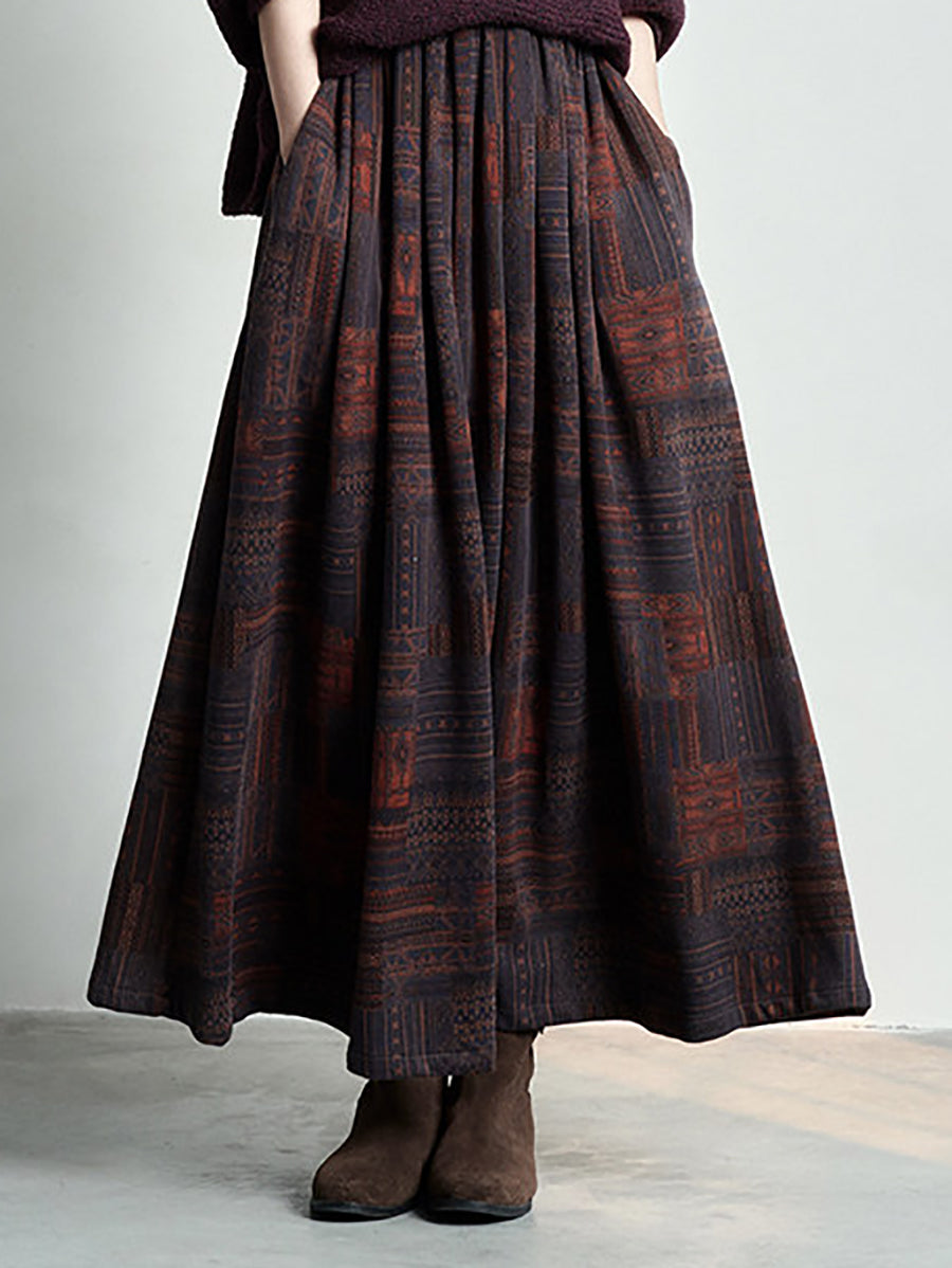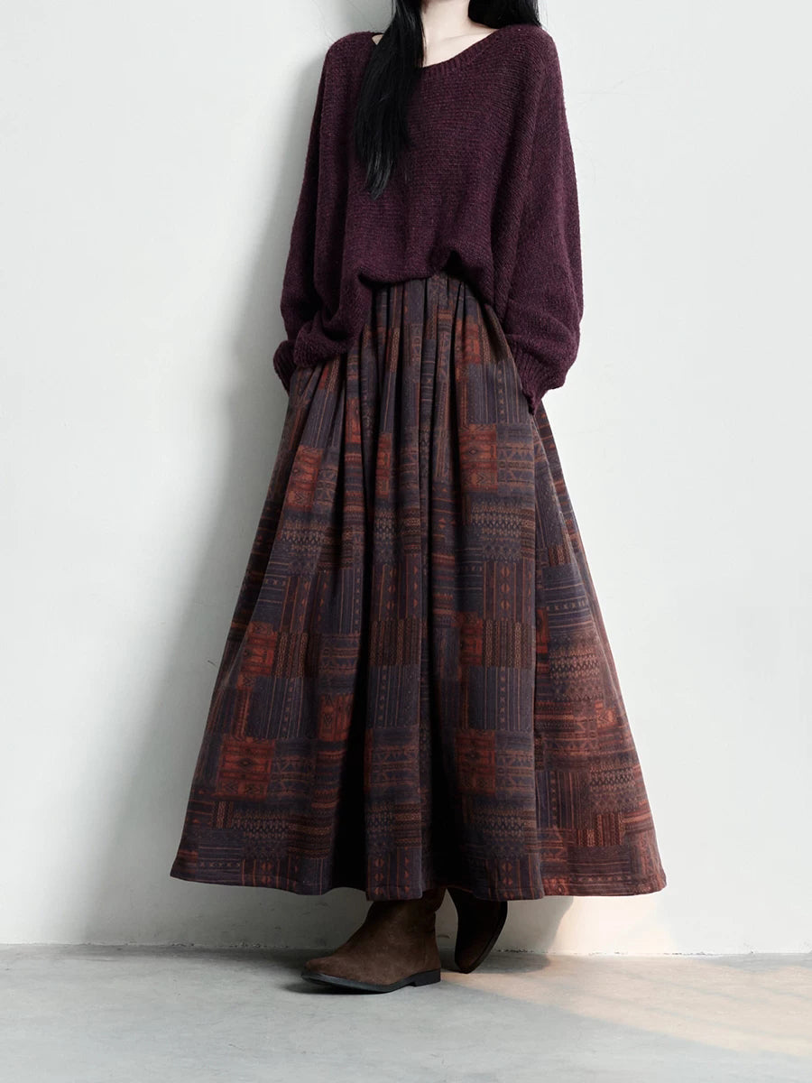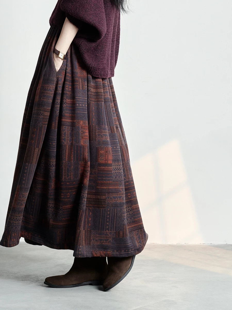 レディース ボヘミアン パッチワーク プリーツ Aシェイプ スカート