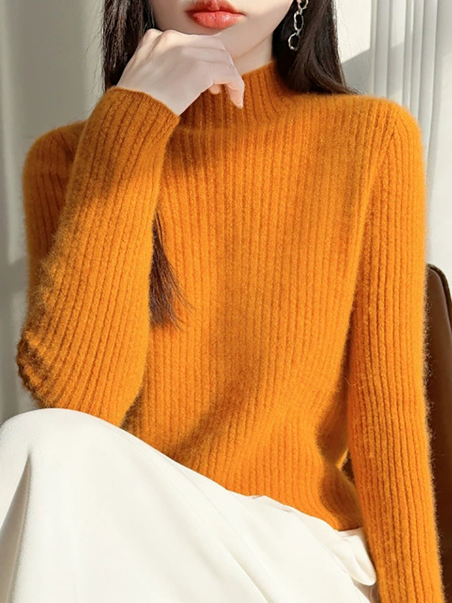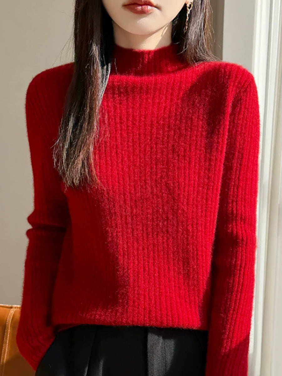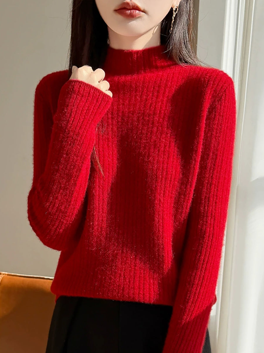 レディース 冬 アーティスティック ピュアカラー ウール ハーフタートルネック セーター