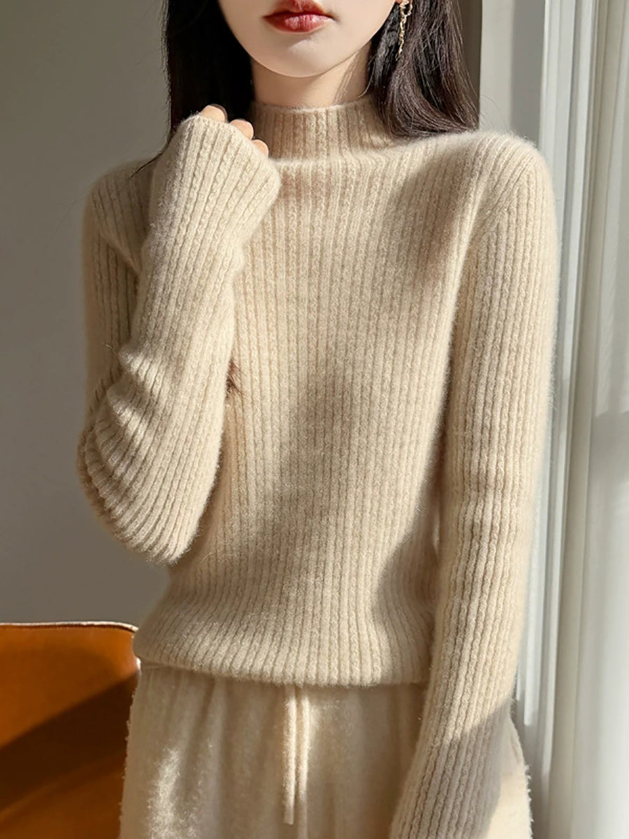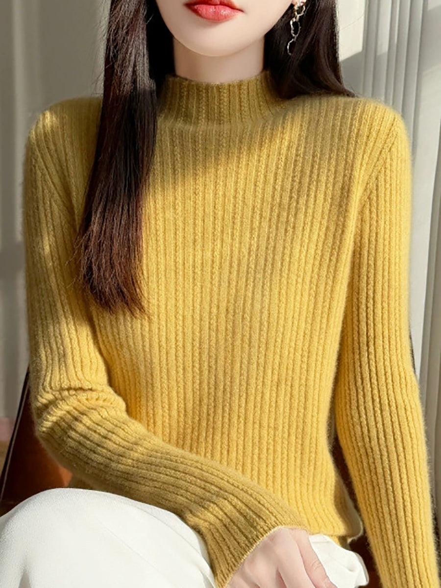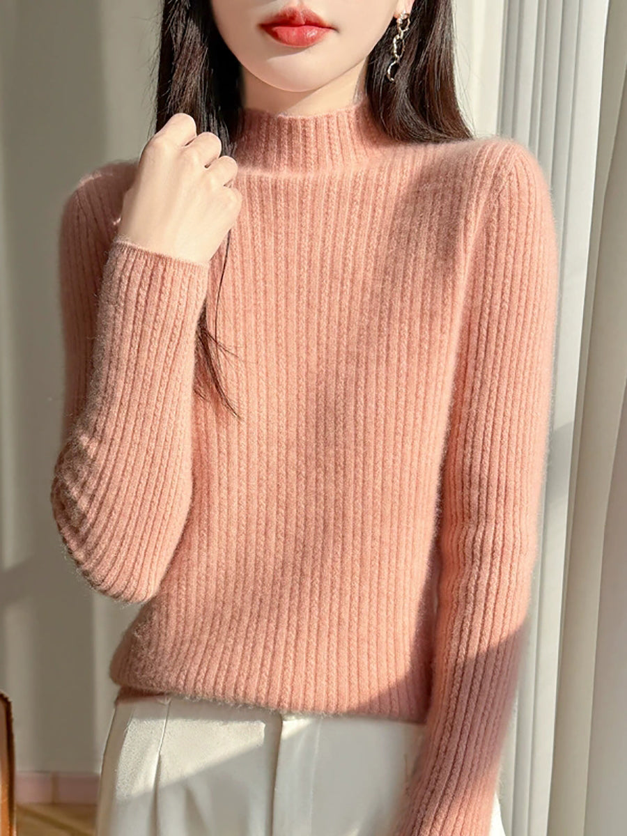 レディース 冬 アーティスティック ピュアカラー ウール ハーフタートルネック セーター