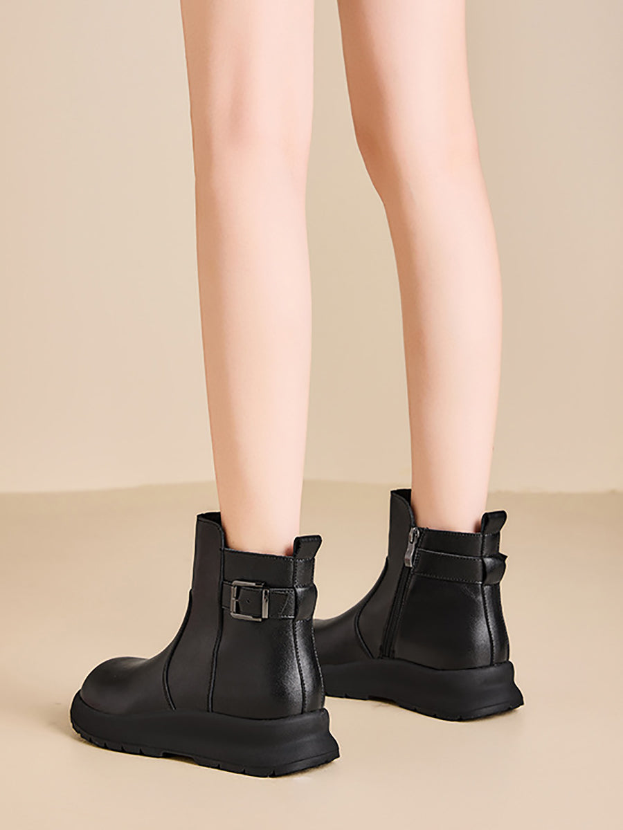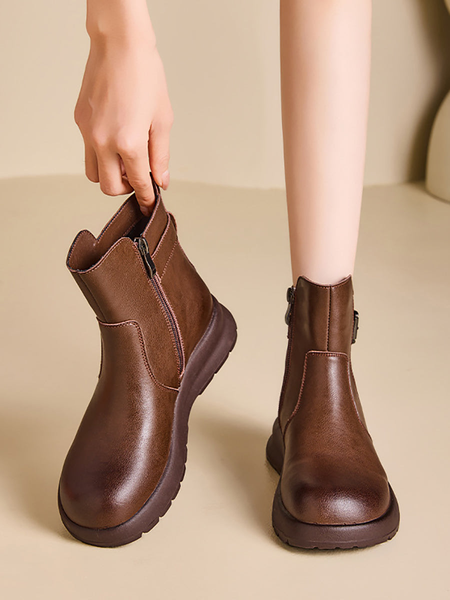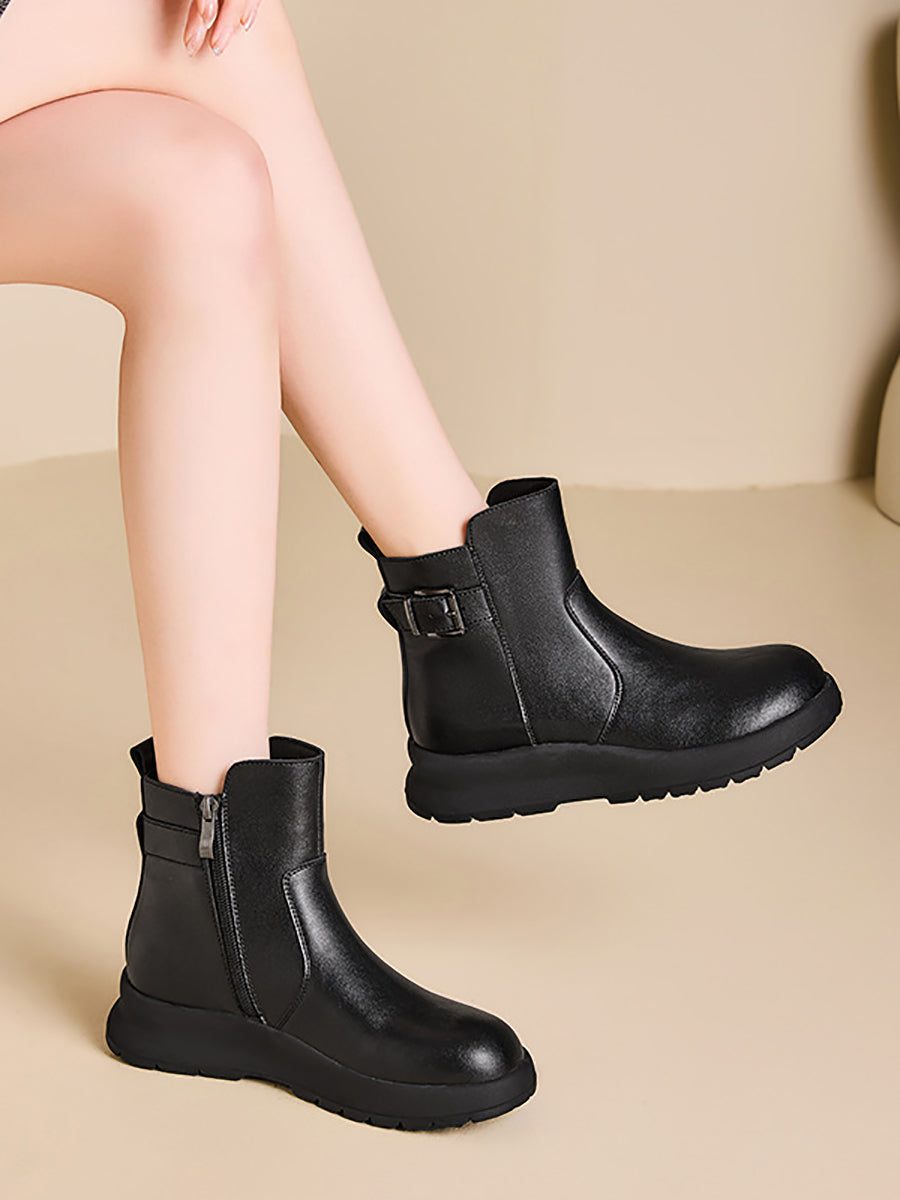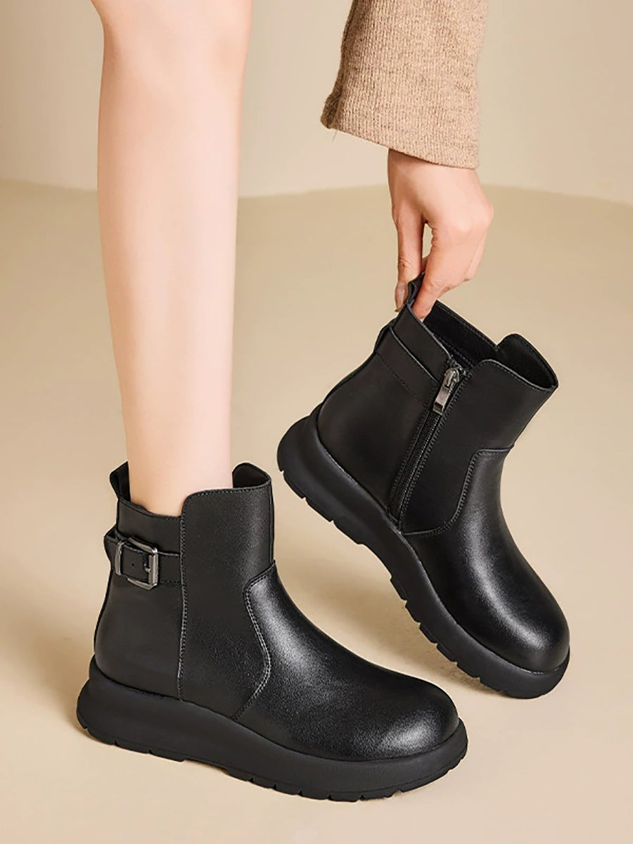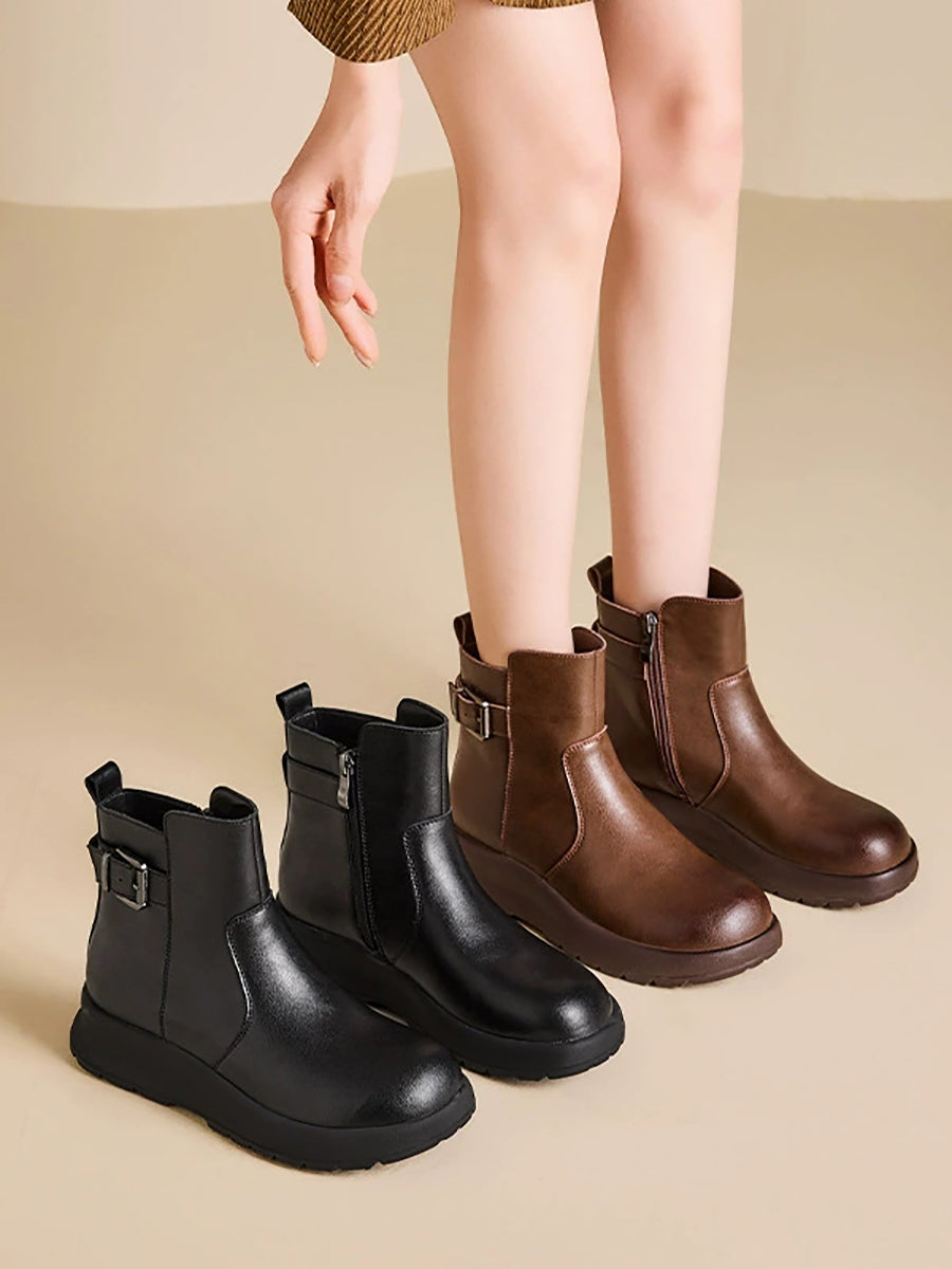 レディース 冬用 本革 プラットフォーム マーティンブーツ