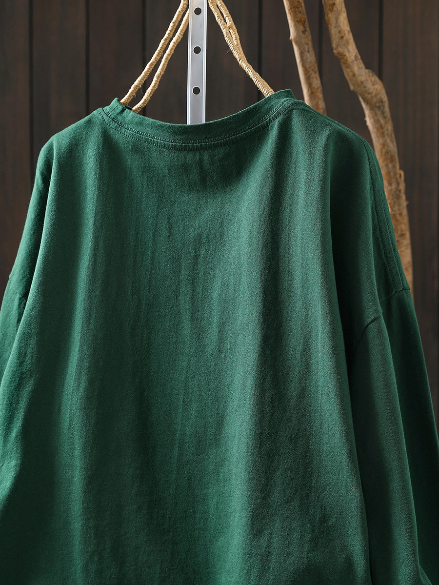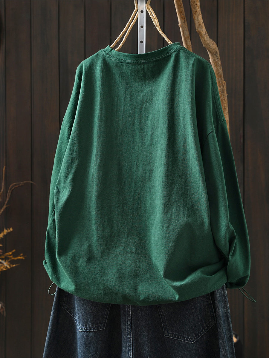 レディース 春 アーティスティックフラワー Oネック 100%コットンブラウス