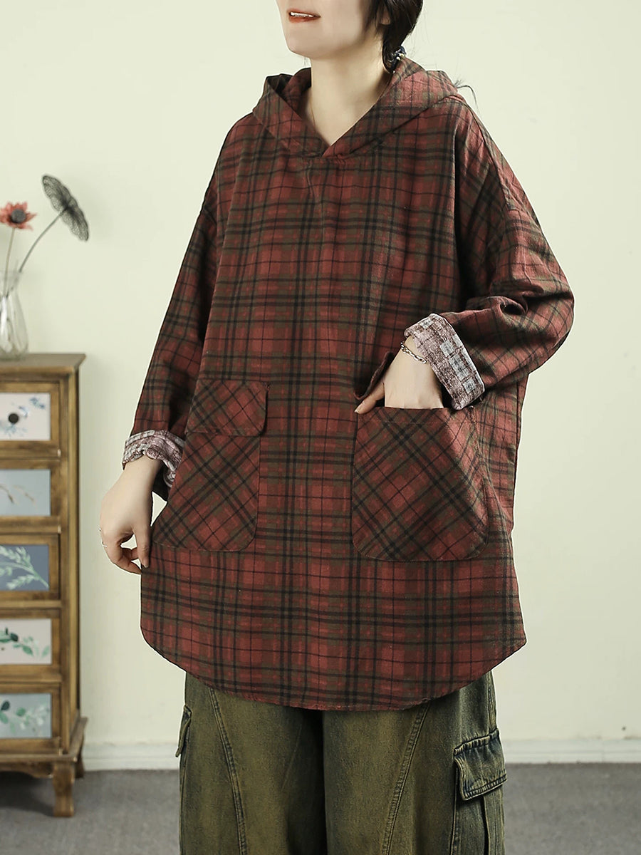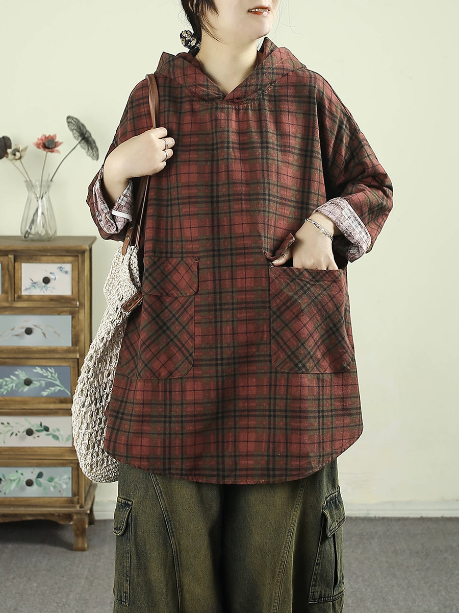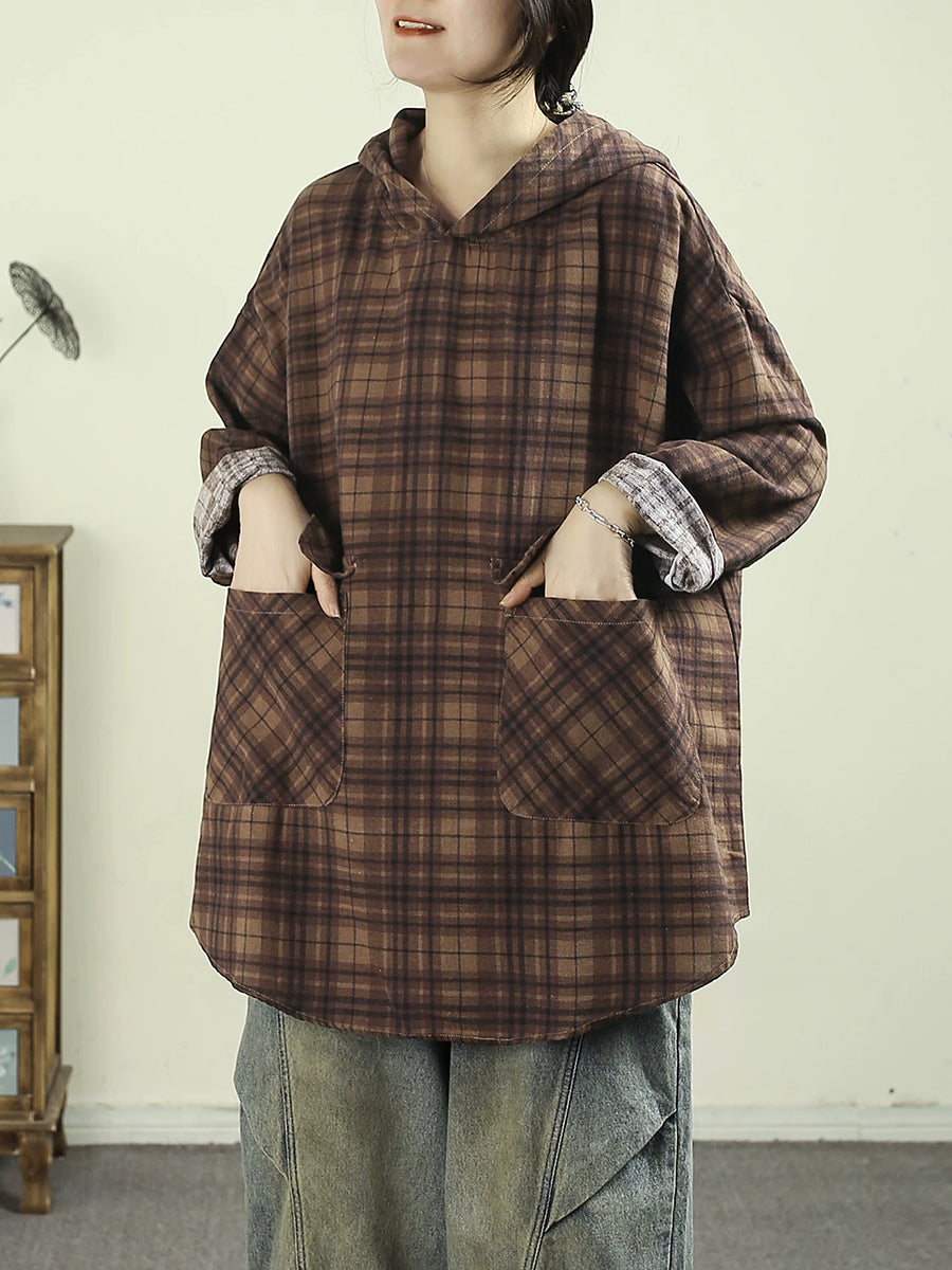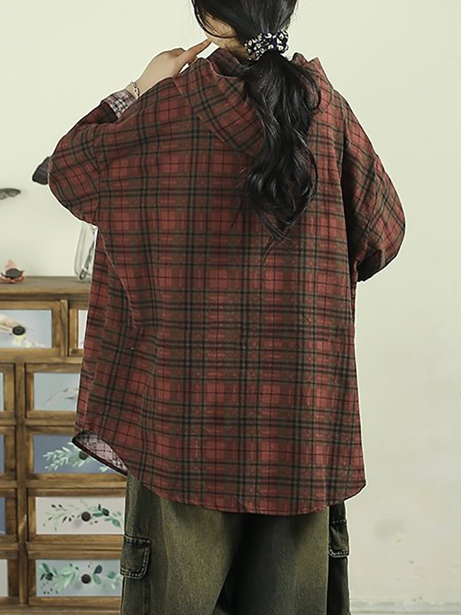 レディース アーティスティック スプリング チェック柄 コットン パーカー