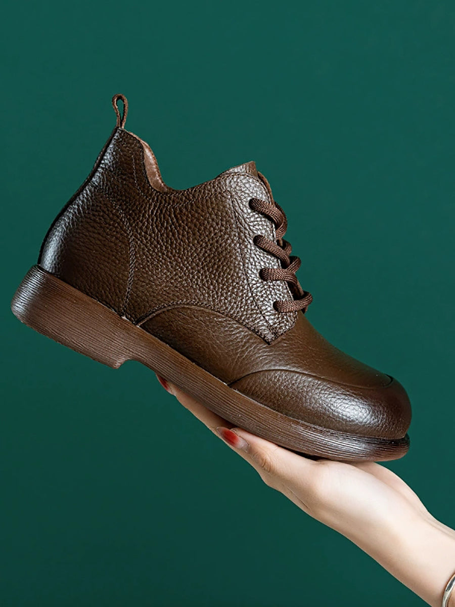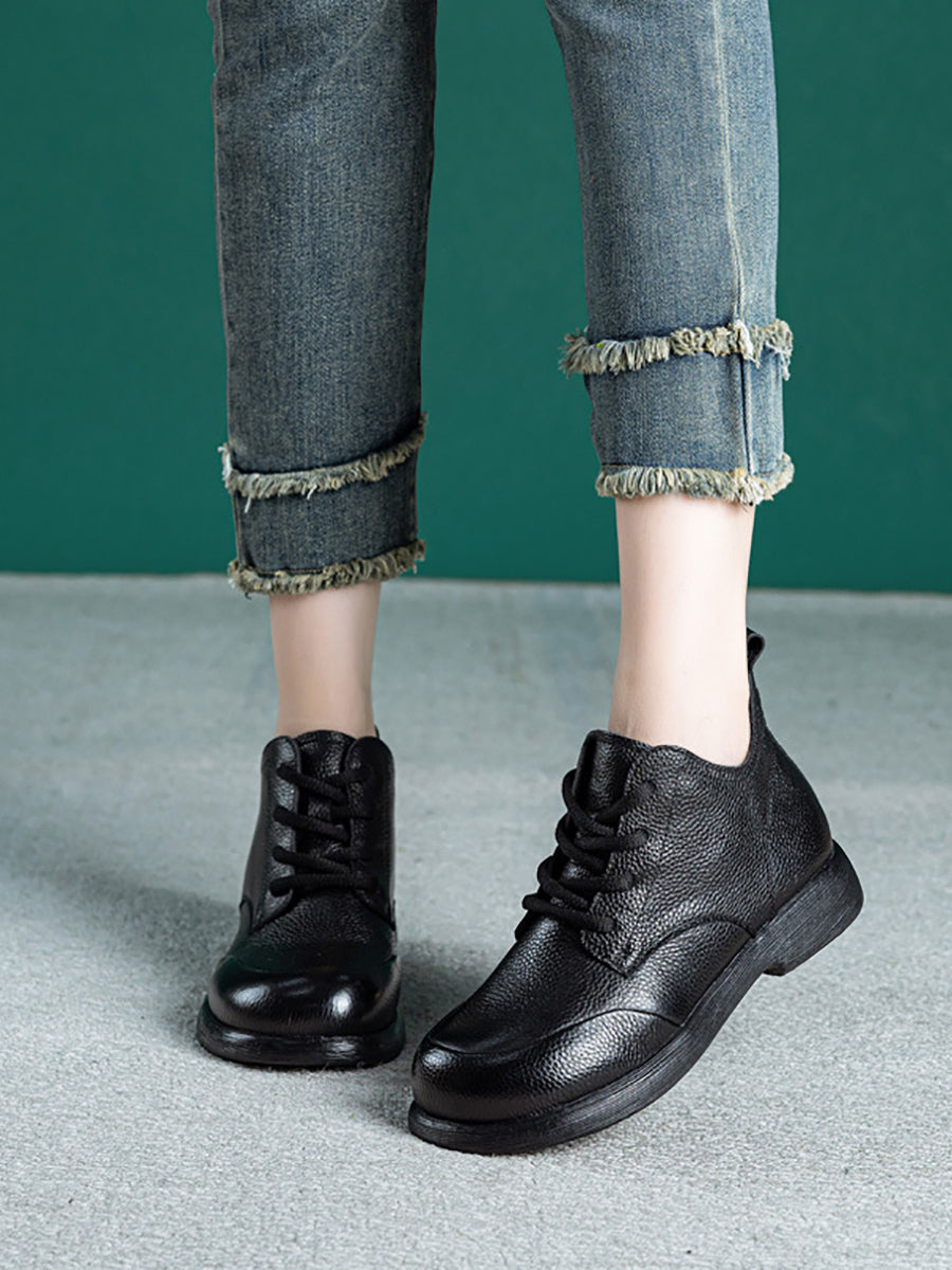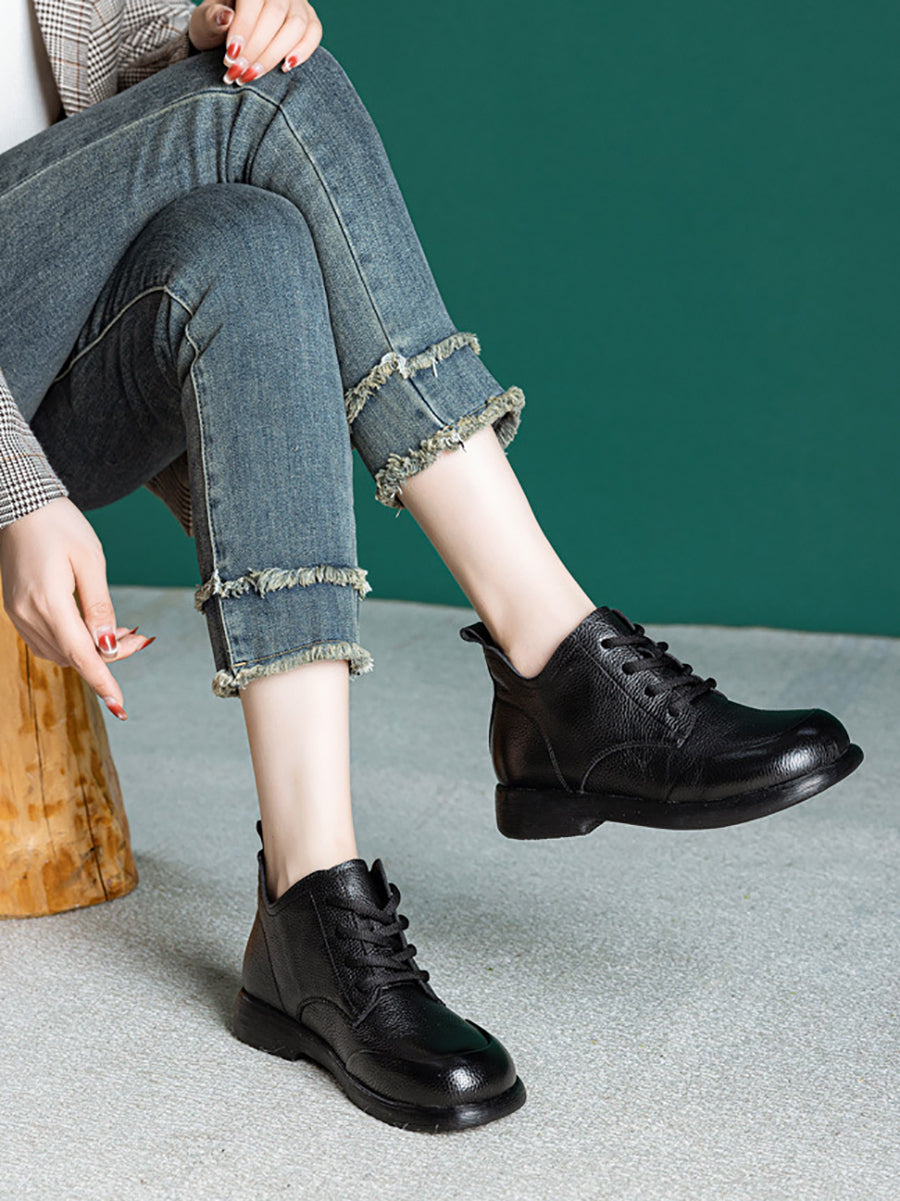 レディースカジュアルピュアカラー本革アンクルブーツ