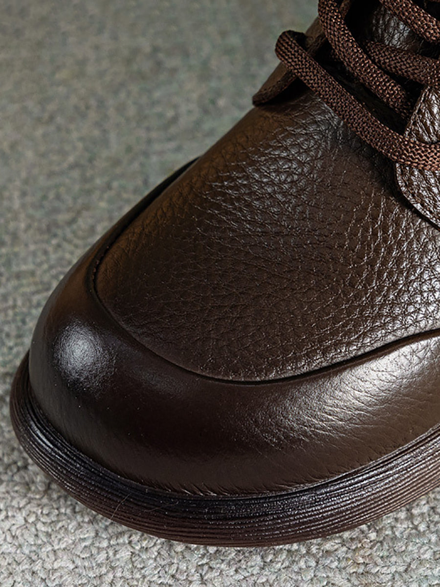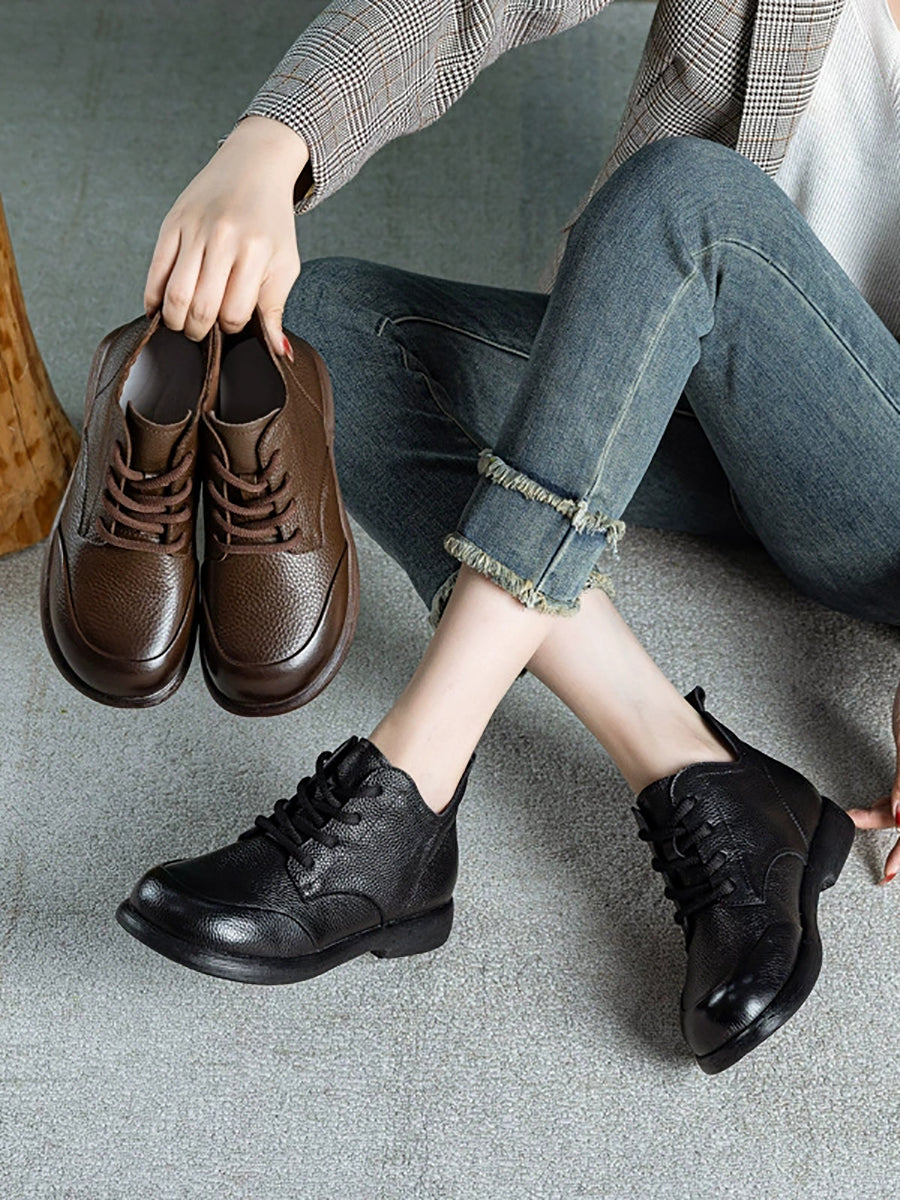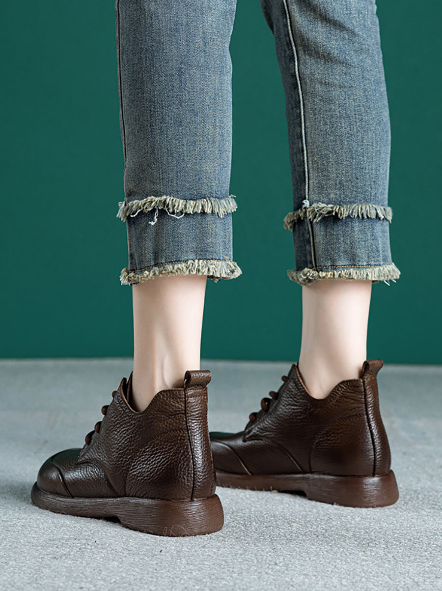 レディースカジュアルピュアカラー本革アンクルブーツ