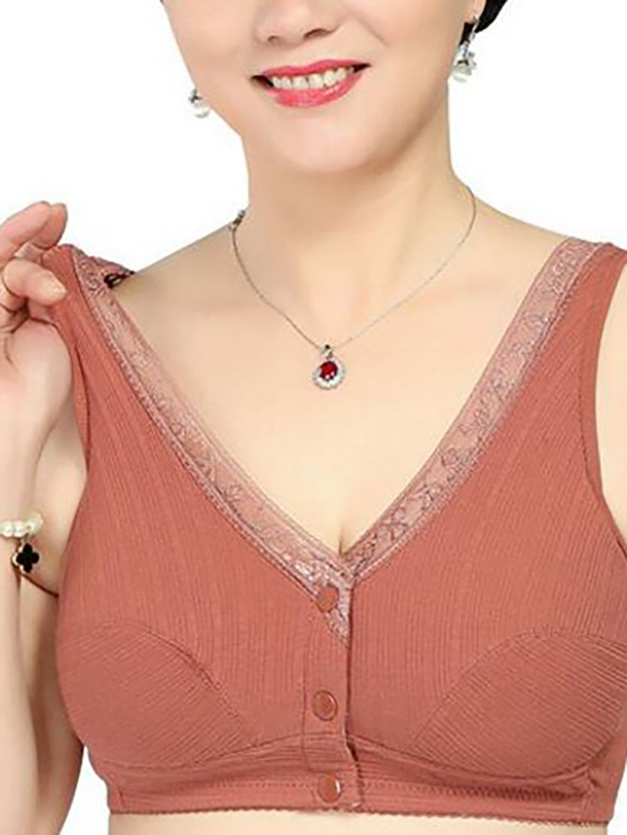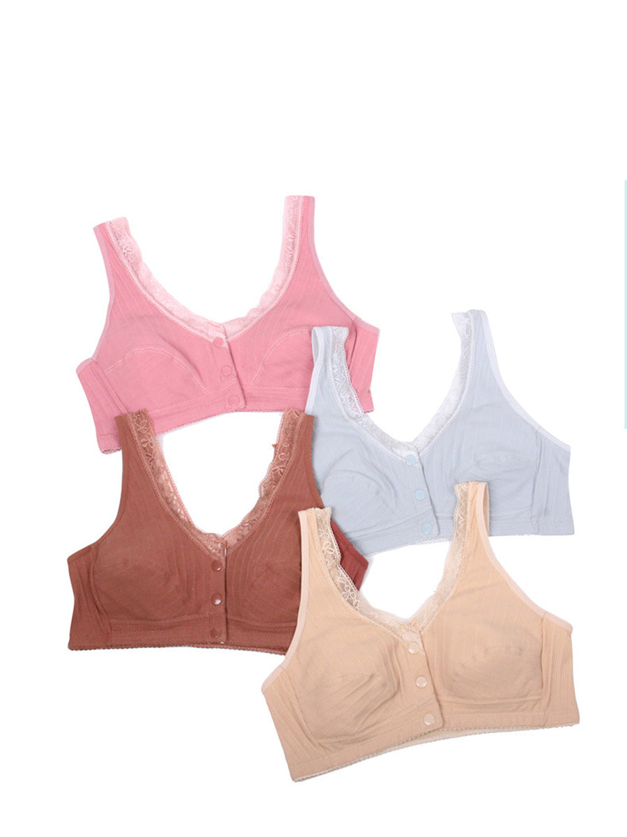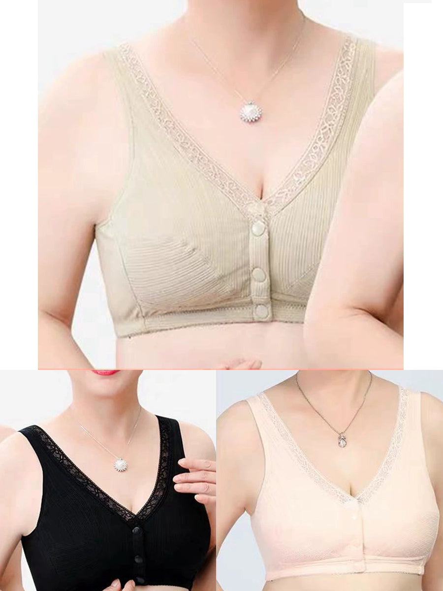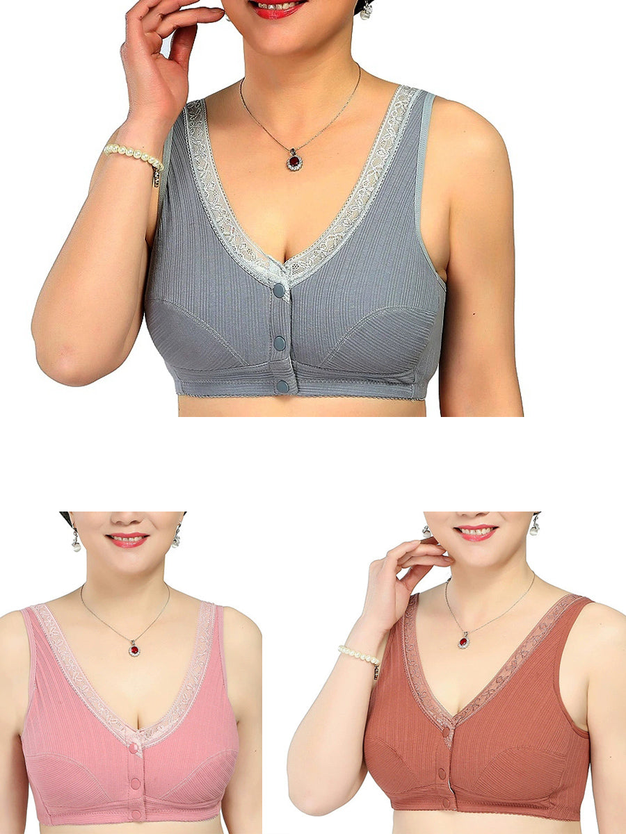 3ピース レディース カジュアル ピュアカラー フロントボタン ワイヤレスブラ
